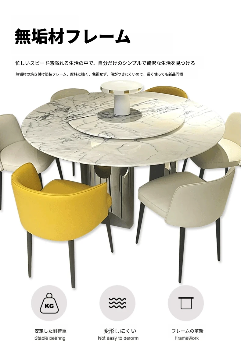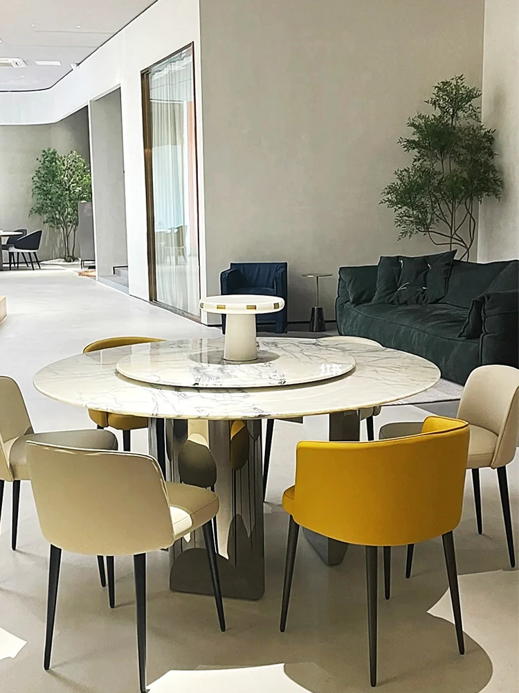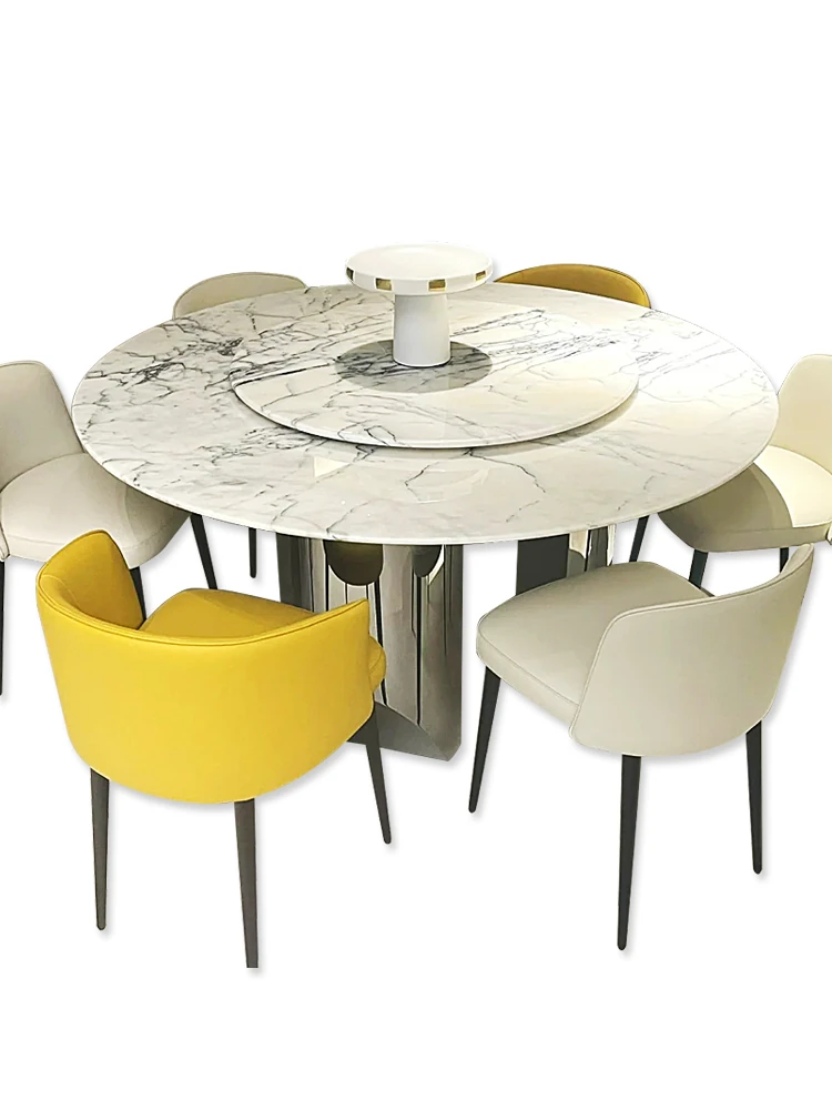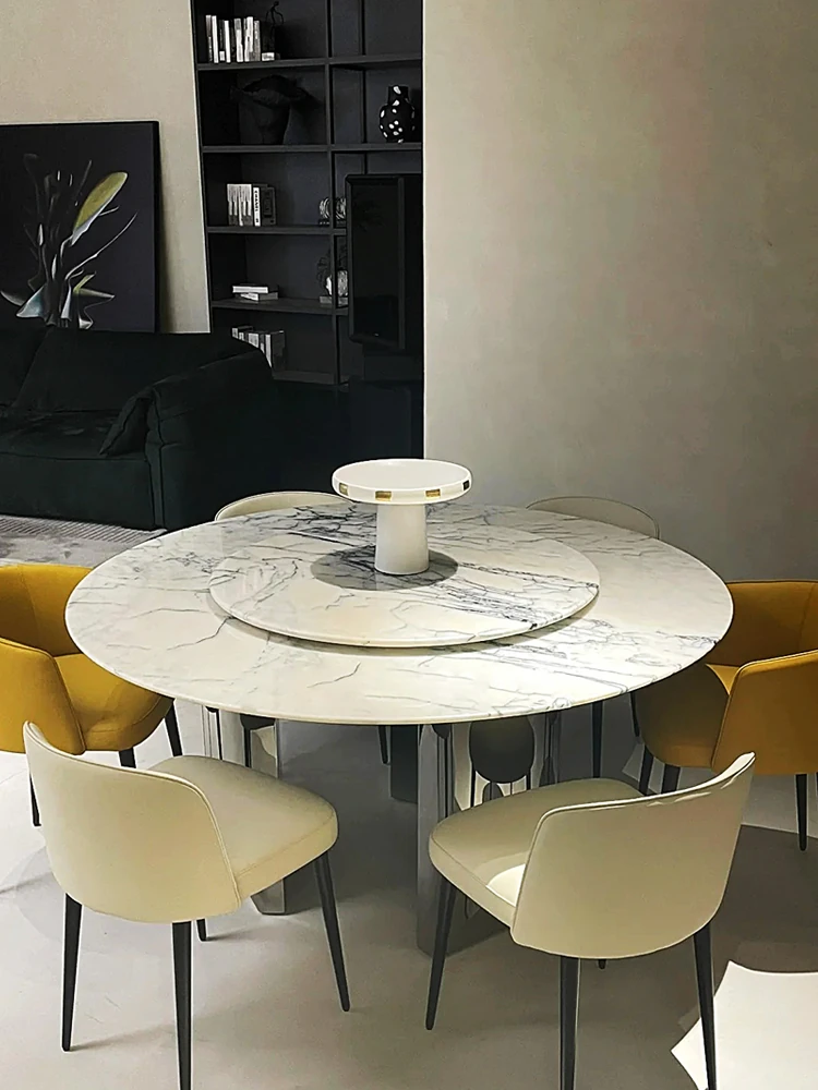 高級感溢れる天然大理石の円形ダイニングテーブル - 香雪梅デザインの贅沢な別荘用テーブル、家族団らんに最適な上質な一品。