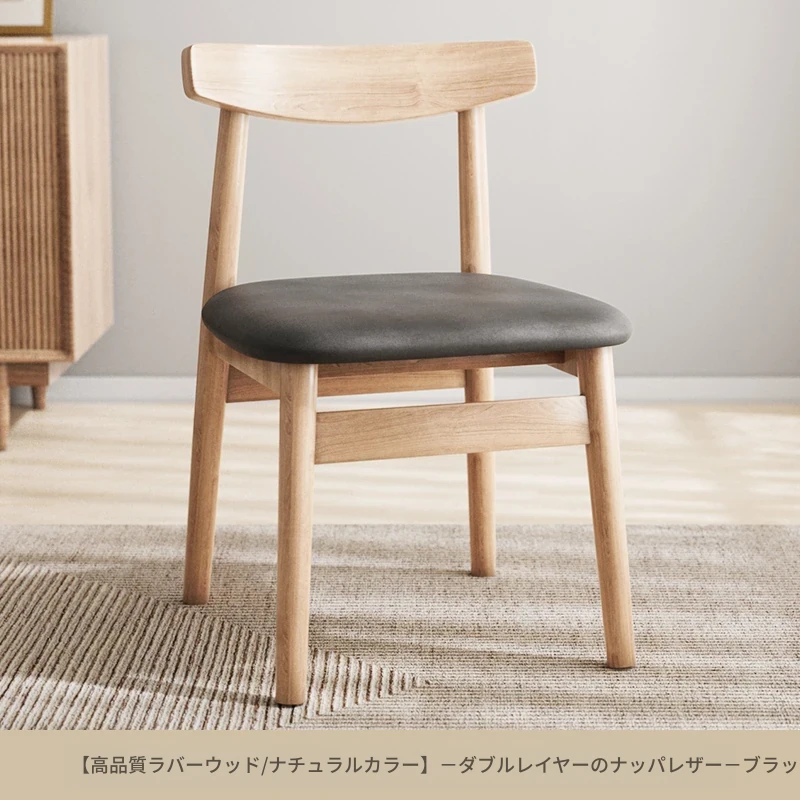 高品質ラバーウッドナチュラルカラー-二重層ナッパレザー-ブラック