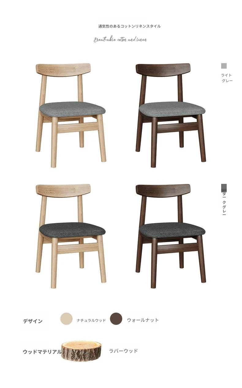 高品質ラバーウッドナチュラルカラー-通気性コットンリネン-深灰色