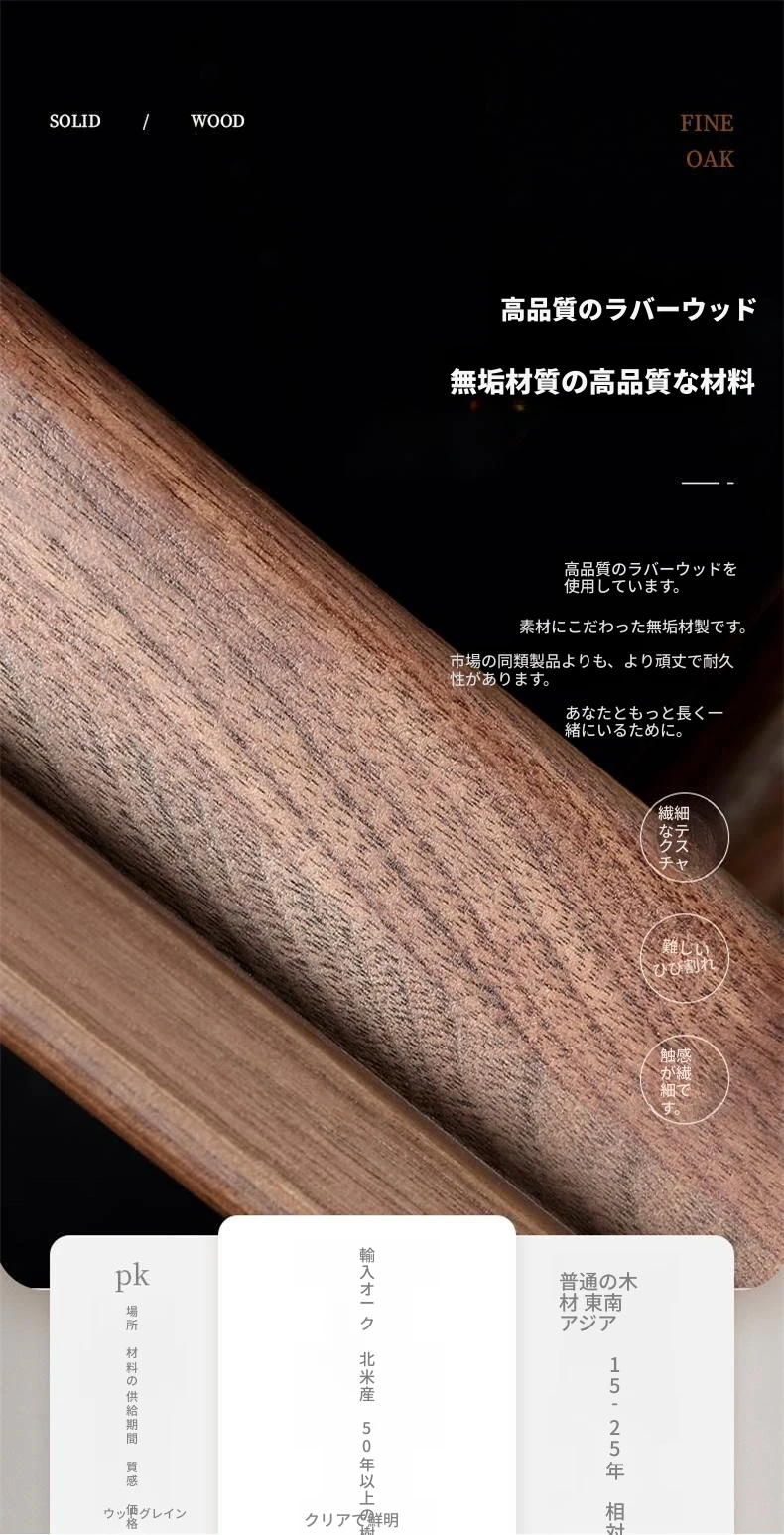 【高品質ラバーウッド/ナチュラルカラー】-純粋な無垢材タイプ