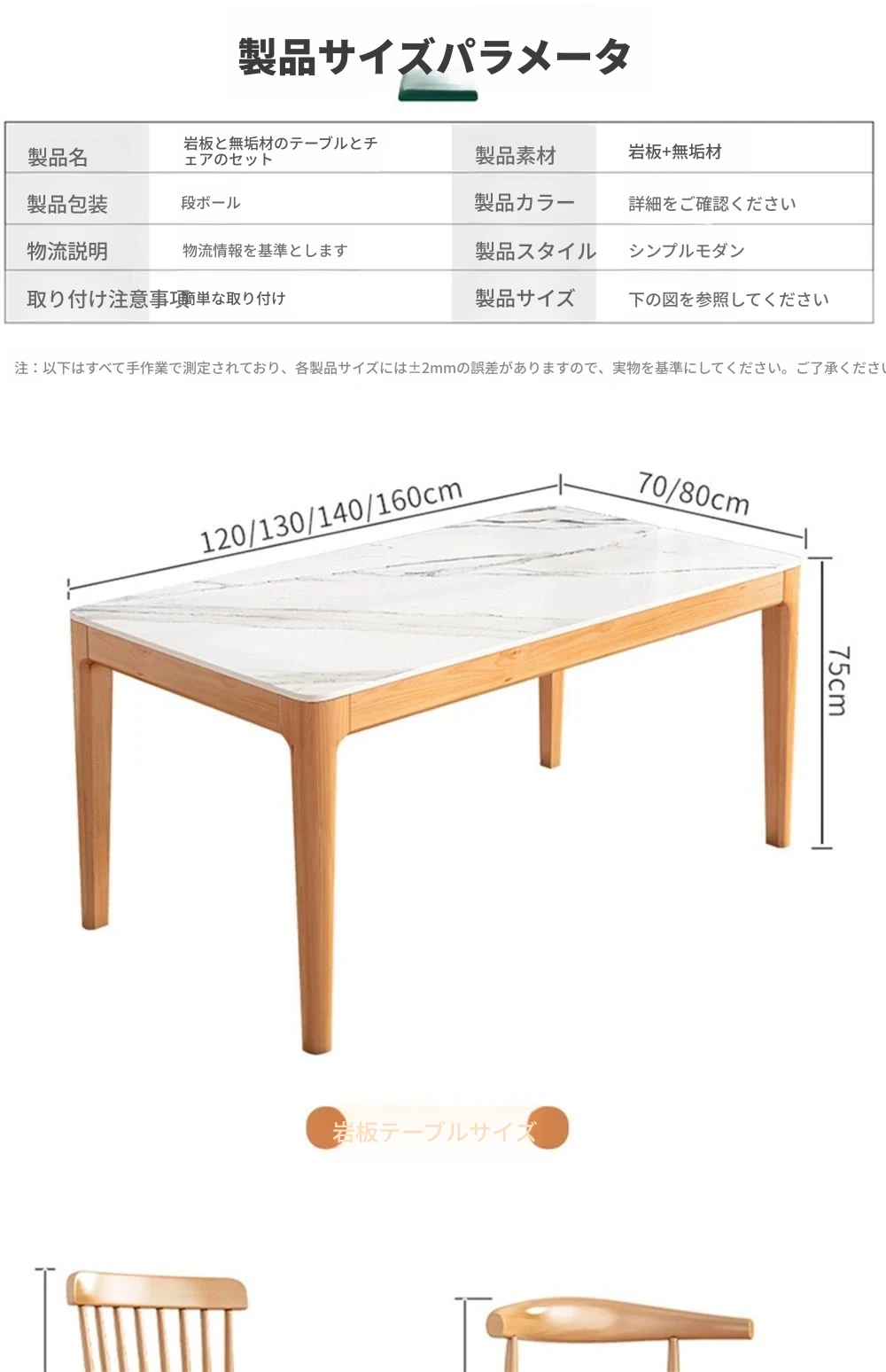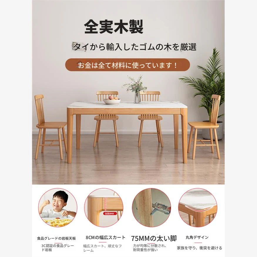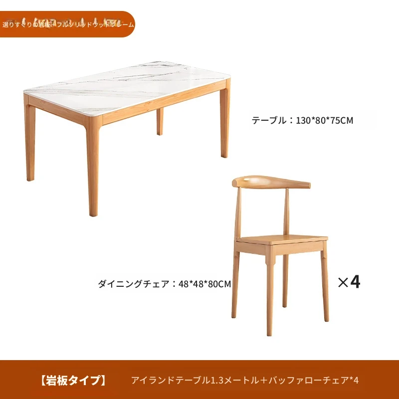 島台ダイニングテーブル1.3メートル+角椅子*4【輸入岩板】 原木色