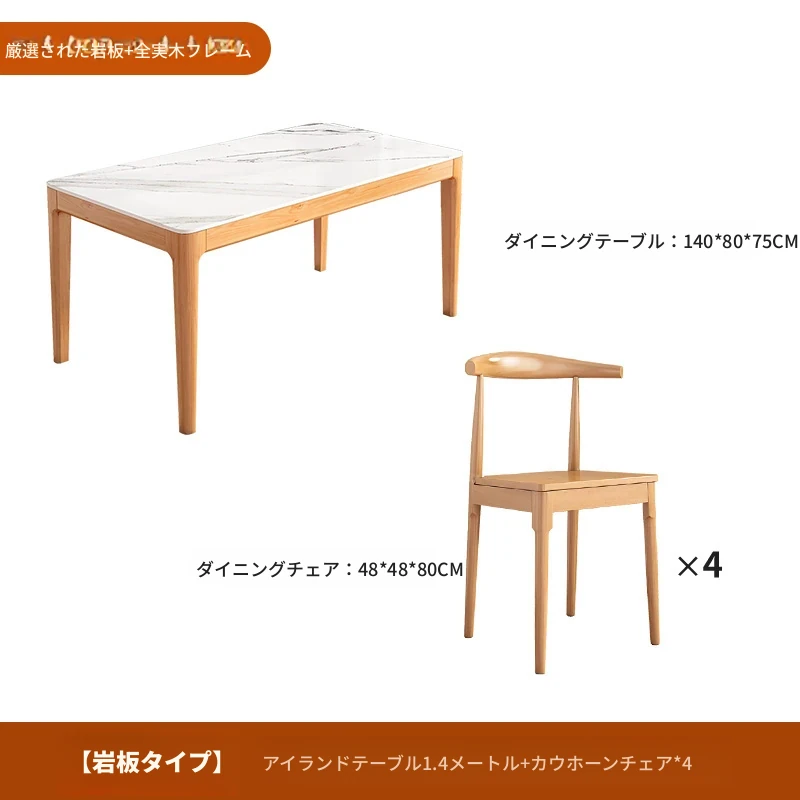 島台ダイニングテーブル1.4メートル+角椅子*4【輸入岩板】 原木色