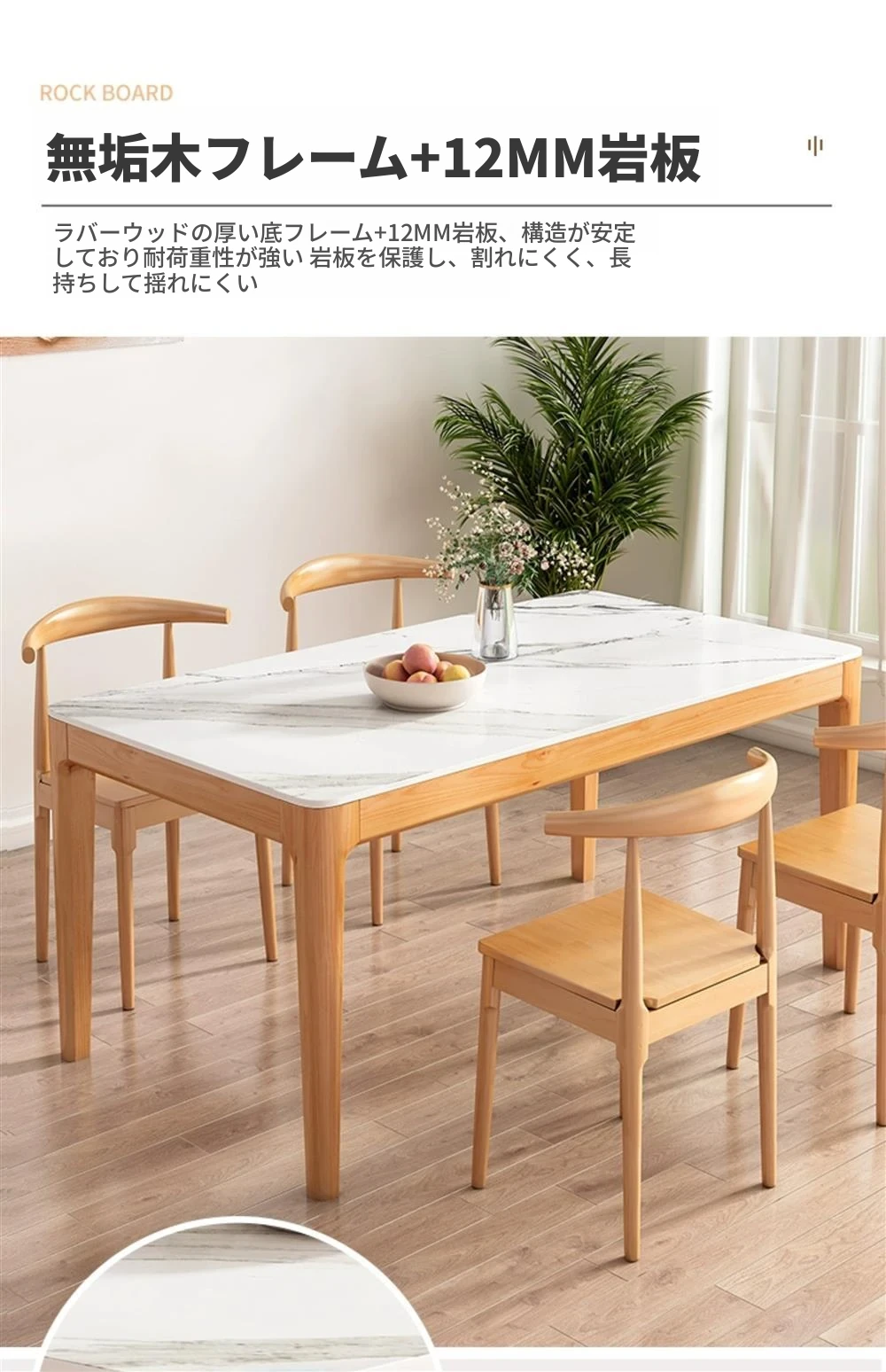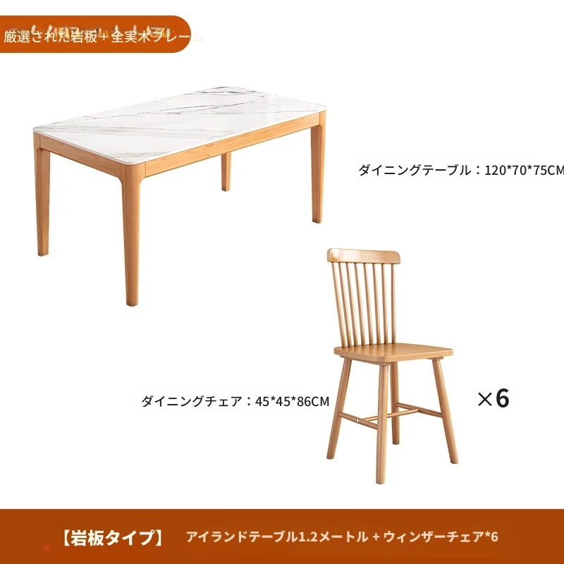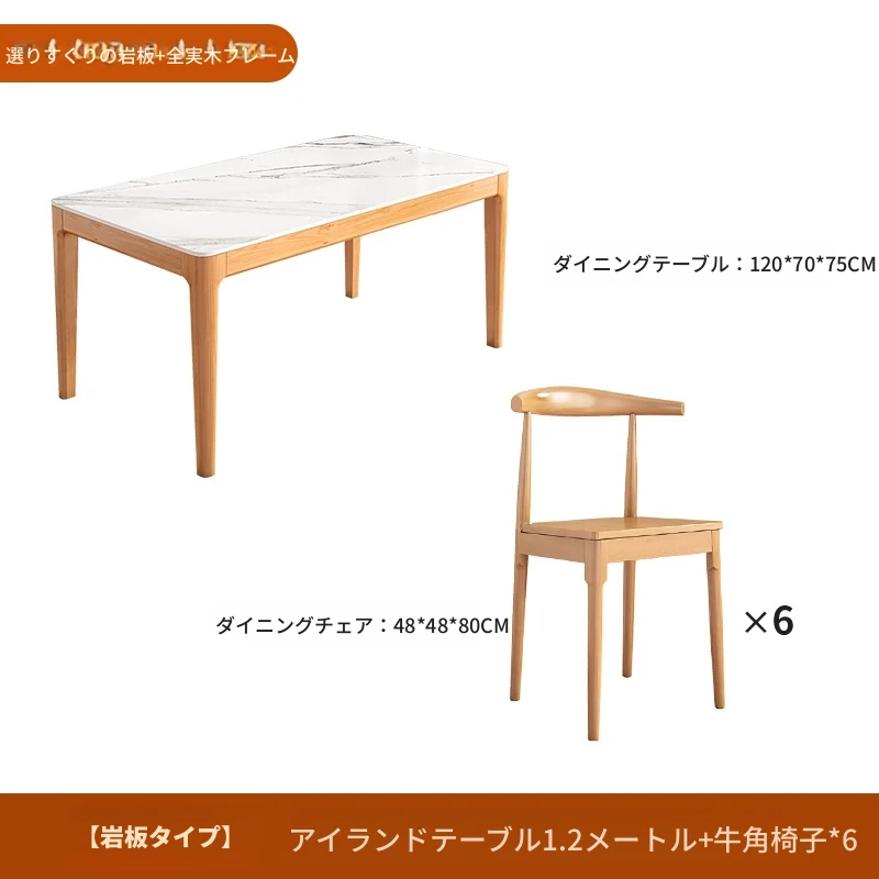 島台ダイニングテーブル1.2メートル+角椅子*6【輸入岩板】 原木色