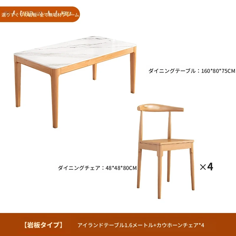 島台ダイニングテーブル1.6メートル+角椅子*4【輸入岩板】 原木色