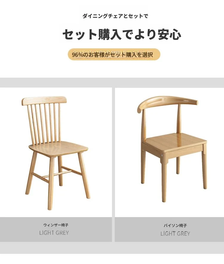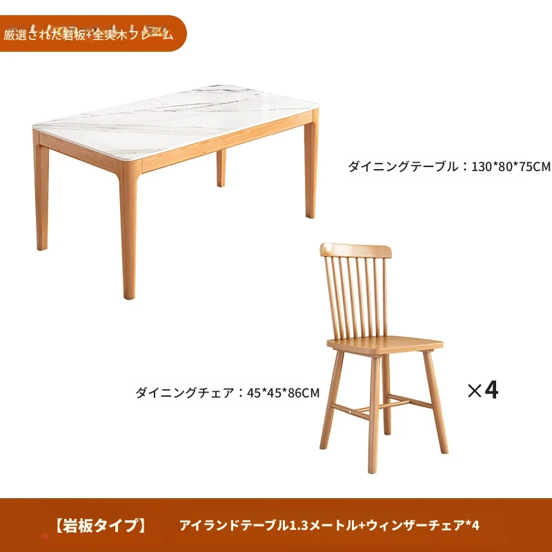 島台ダイニングテーブル1.3メートル+ウィンザーチェア*4【輸入岩板】 原木色