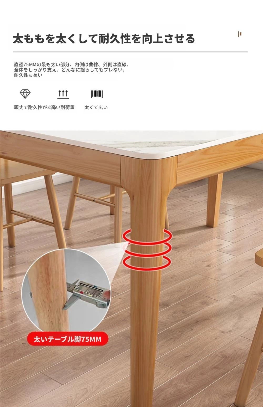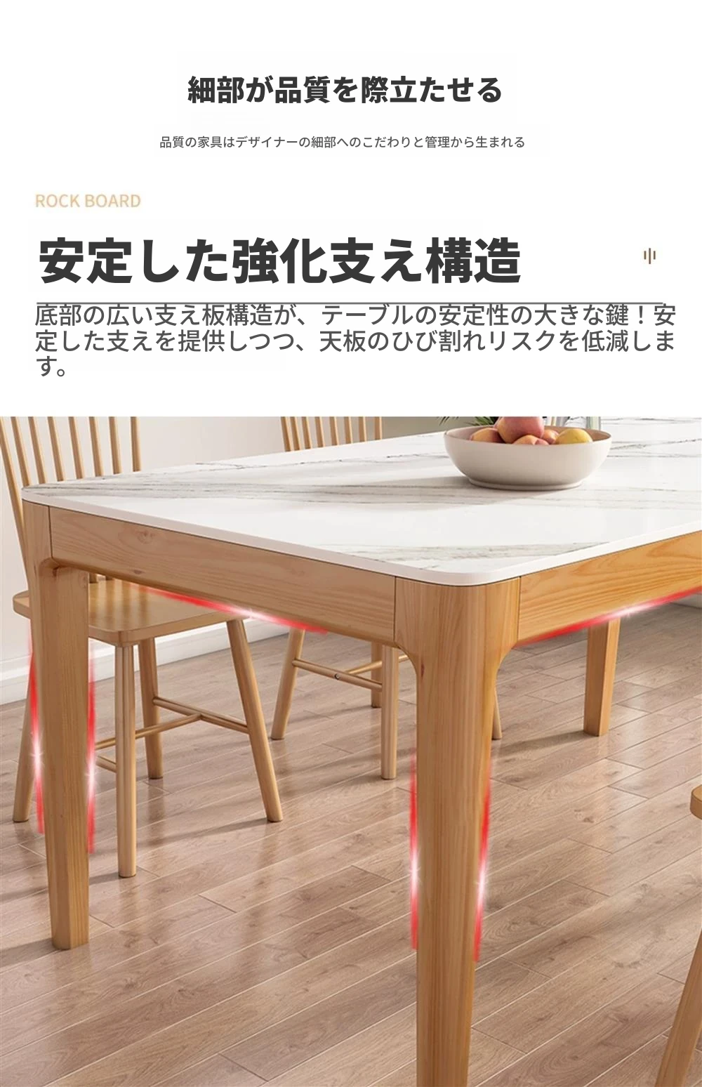島台ダイニングテーブル1.3メートル+角椅子*6【輸入岩板】 原木色