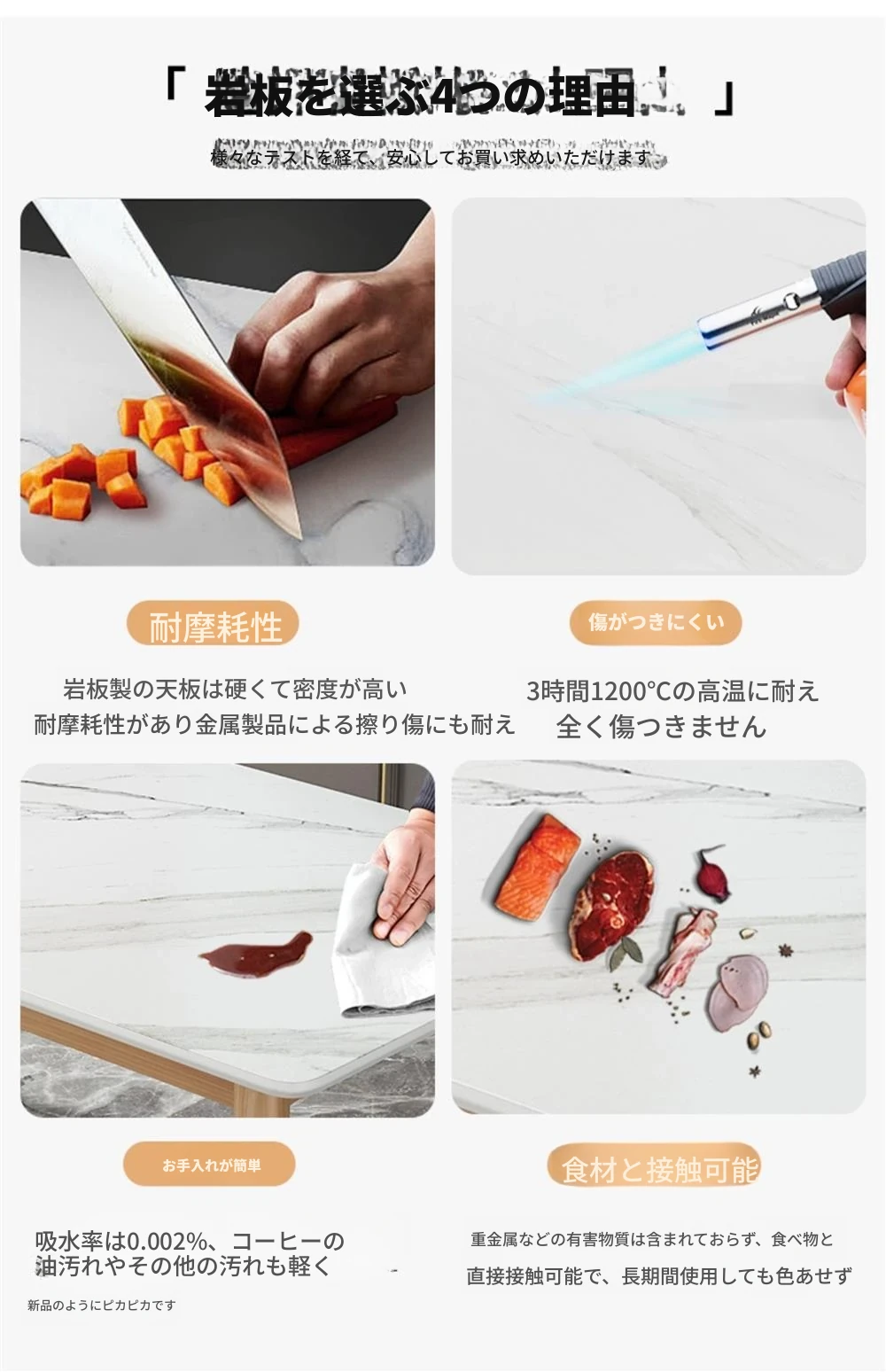 島台ダイニングテーブル1.2メートル+角椅子*4【輸入岩板】 原木色