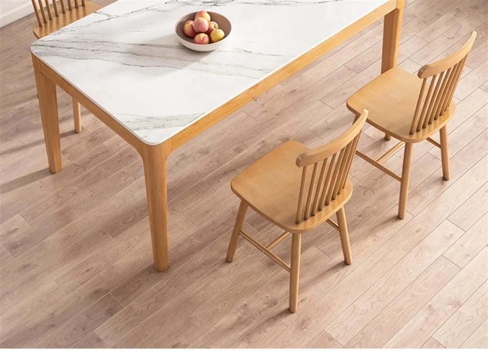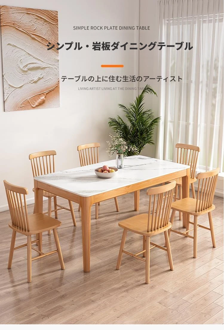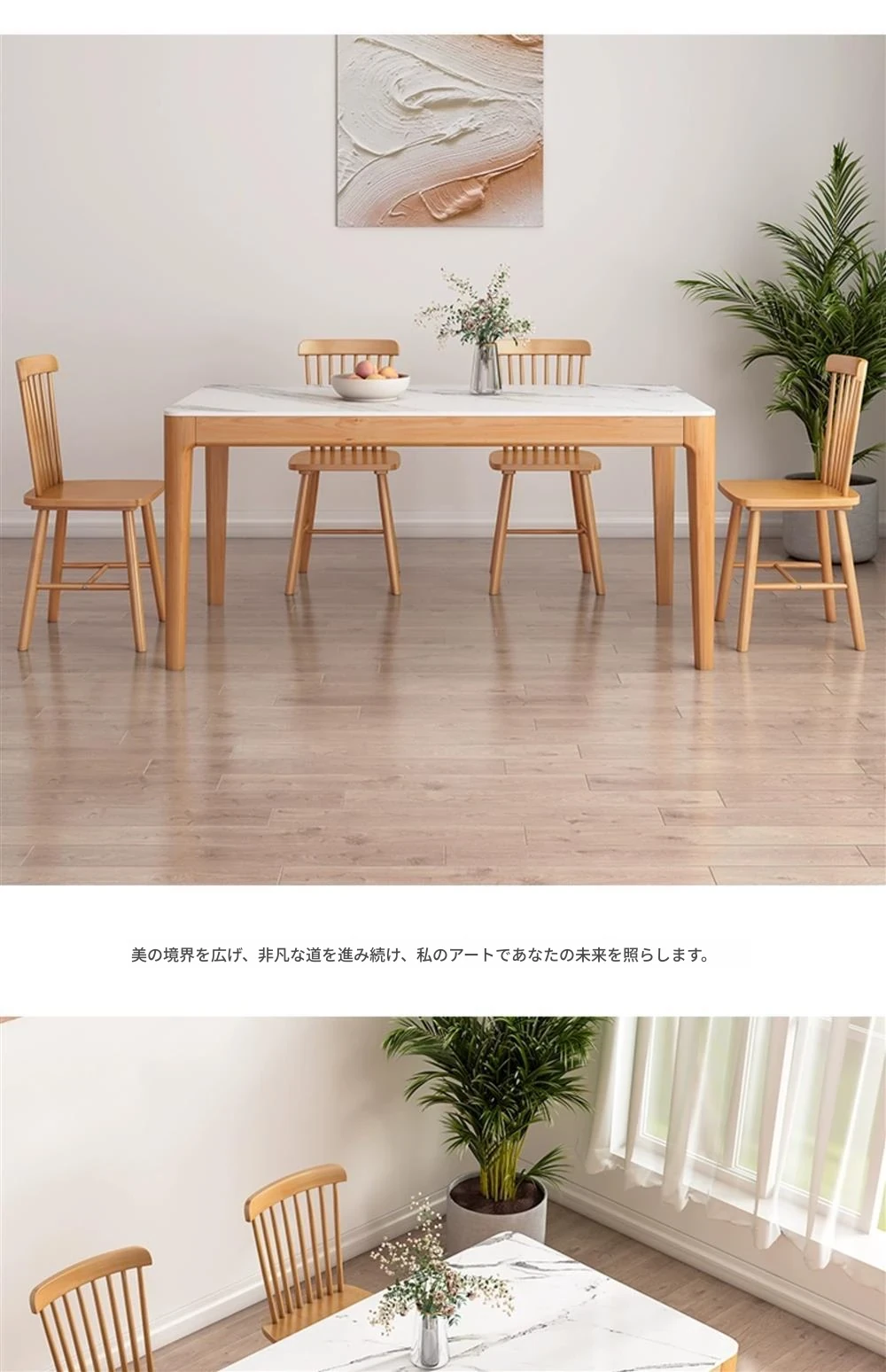 【香港送料無料】天然木製の岩板ダイニングテーブル|小型住宅に最適な和風長方形テーブル|家族と過ごす温かい食卓を演出!