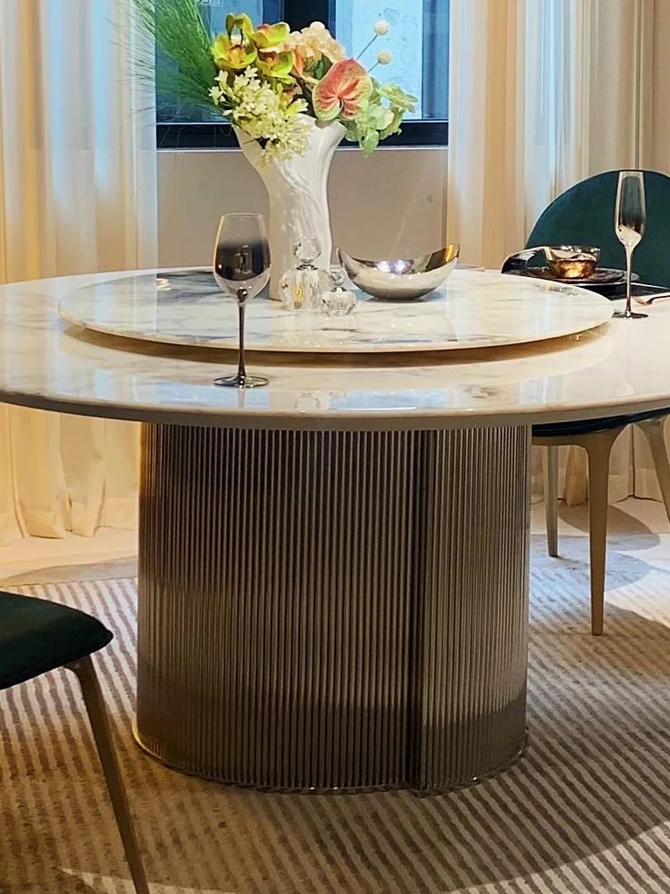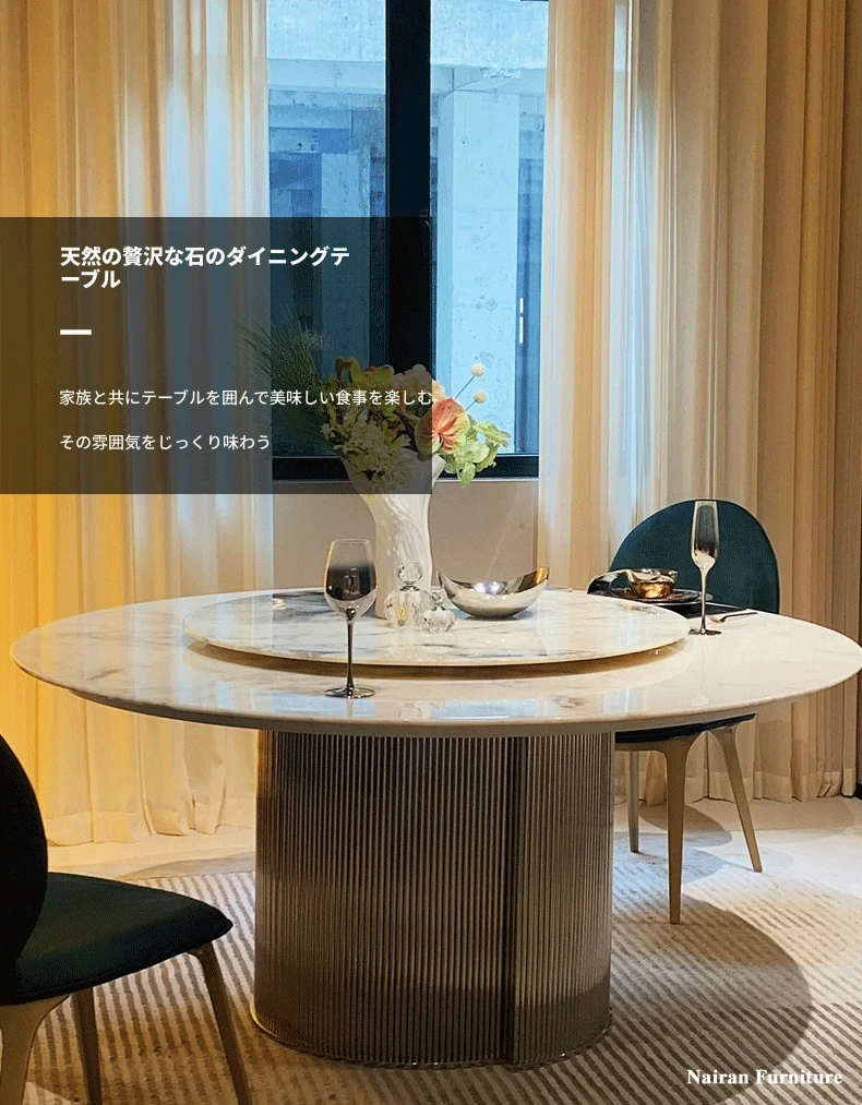 輸入版FENDIホワイトナチュラルラグジュアリーストーン円形ダイニングテーブル|モダンミニマルデザイン|高級ヴィラや広々としたフラットに最適な大理石の食卓|イタリアンスタイルの優雅さをお楽しみください