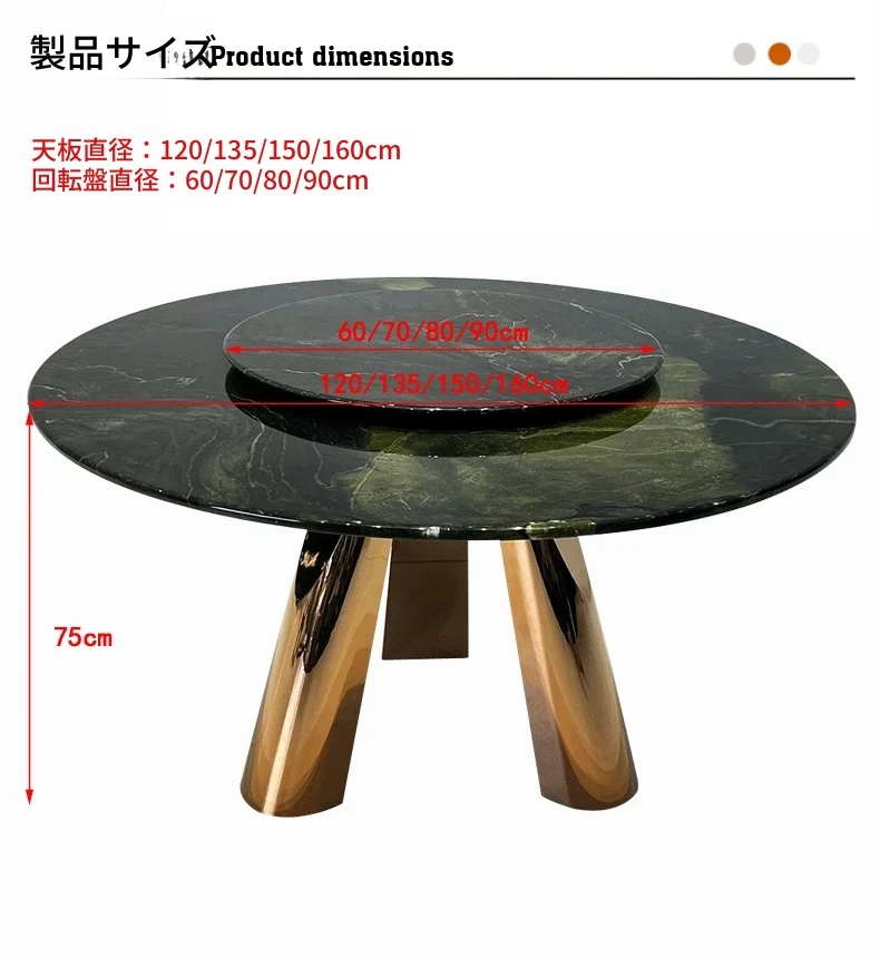 1.35メートル円卓+70CMターンテーブル【輸入豪華石アボカドグリーン】 【偽造品の場合は10倍返金】