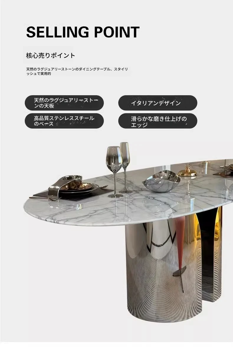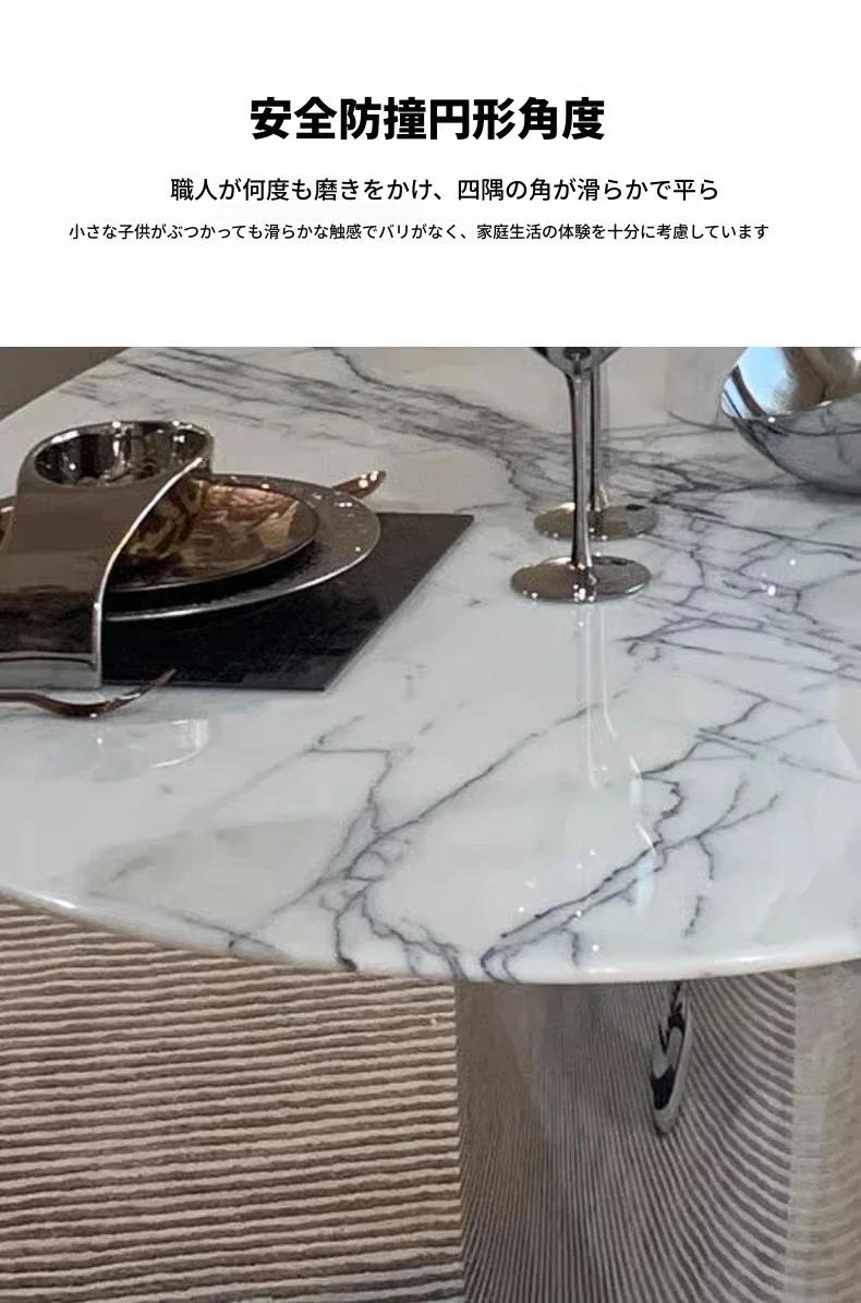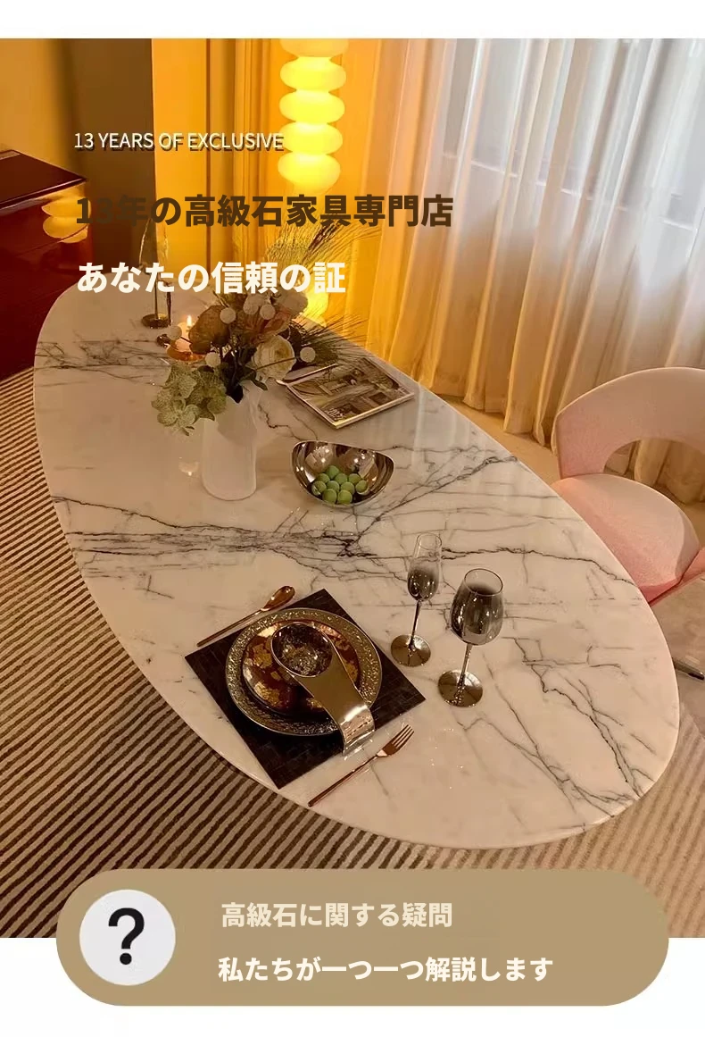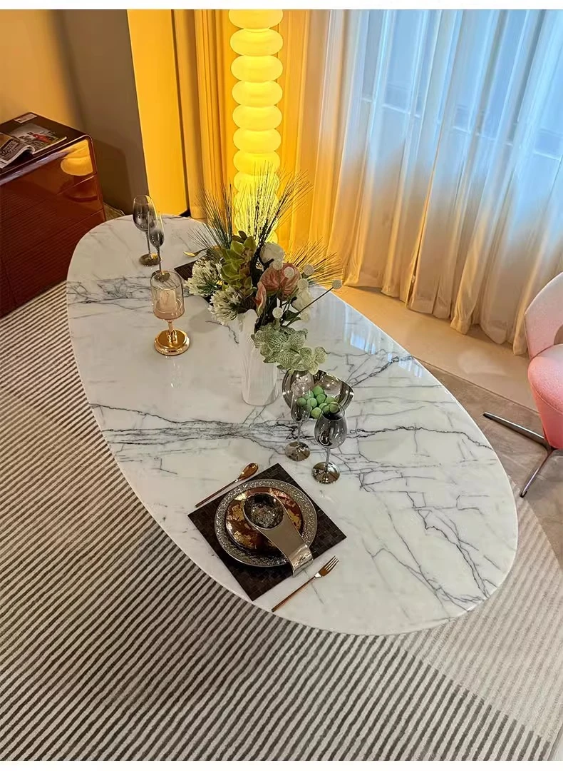 輸入天然高級石材の香雪梅大理石ダイニングテーブル - イタリアンミニマリズムの極み、別荘や家庭に最適なエレガントな楕円形テーブル!
