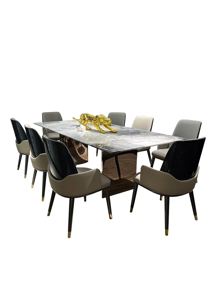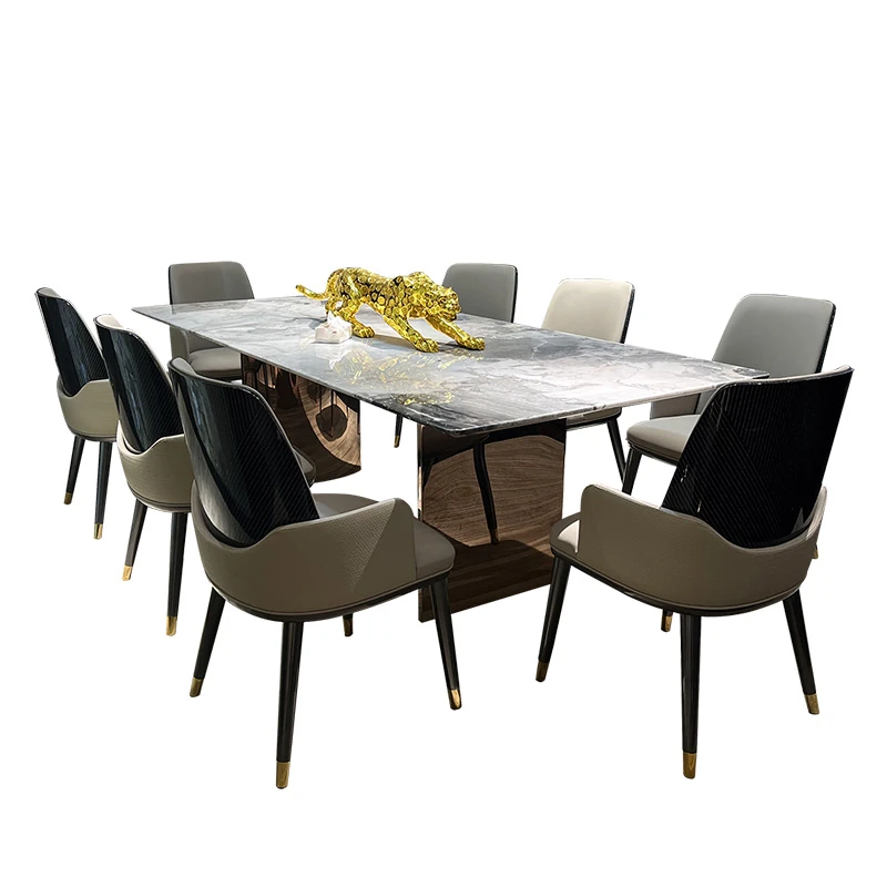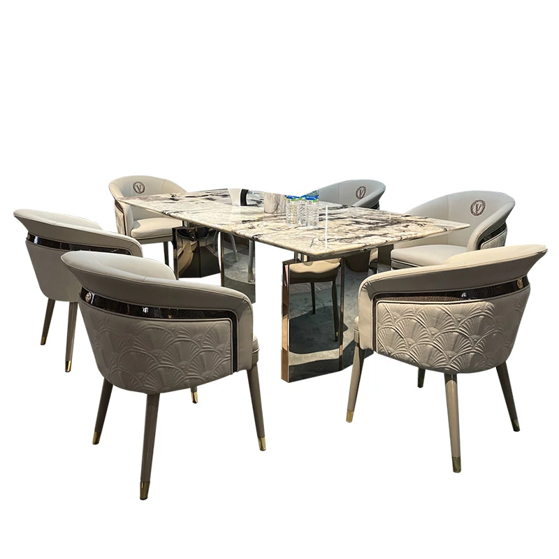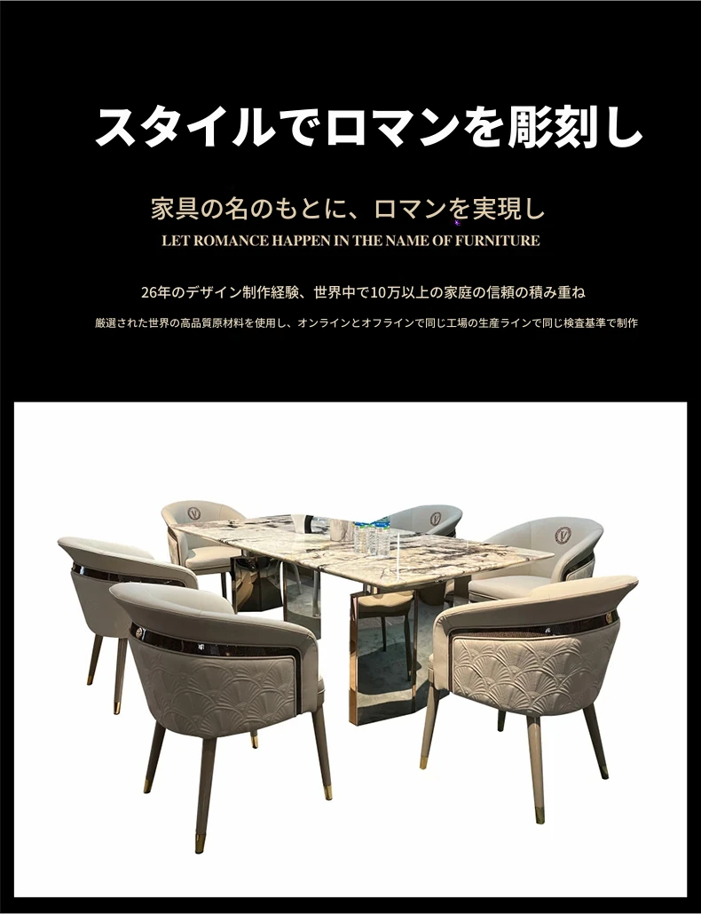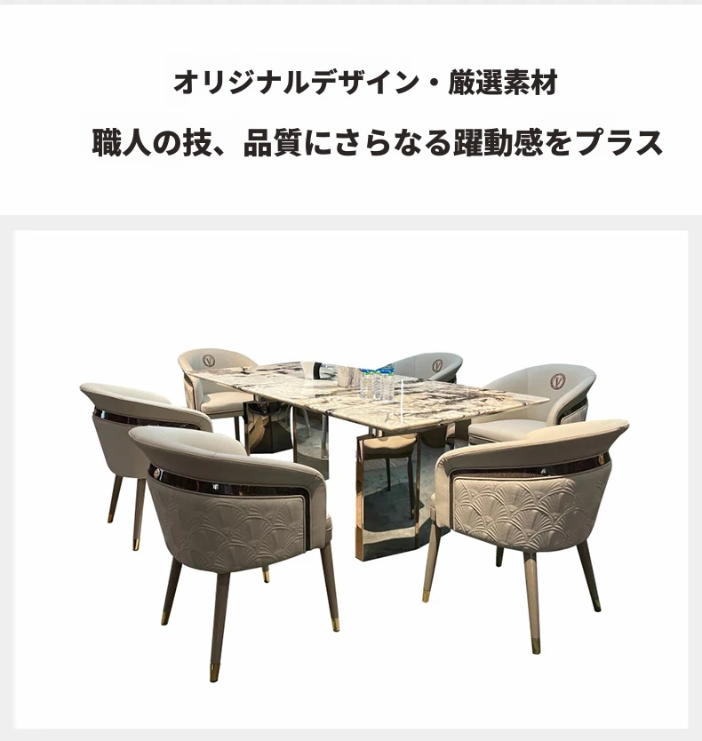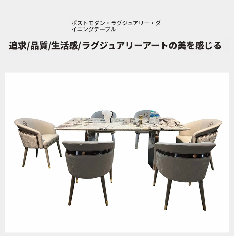 イタリアンラグジュアリー天然大理石ダイニングテーブル&チェアセット - シンプルでモダンな高級家具、円形テーブルと長方形テーブルの両方を取り揃えています。おしゃれな食卓で特別なひとときを演出!