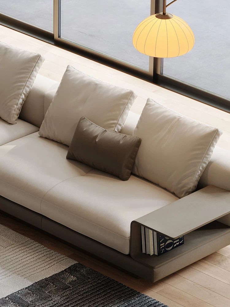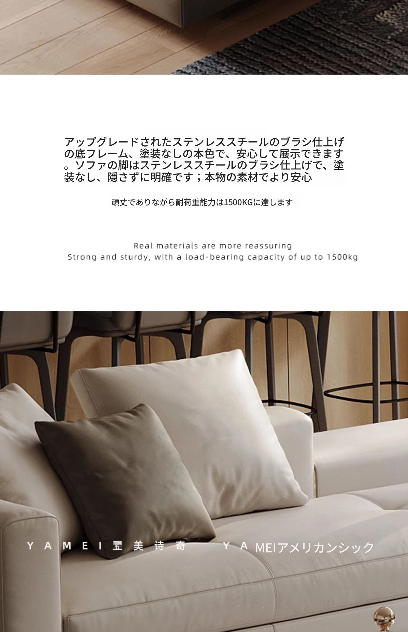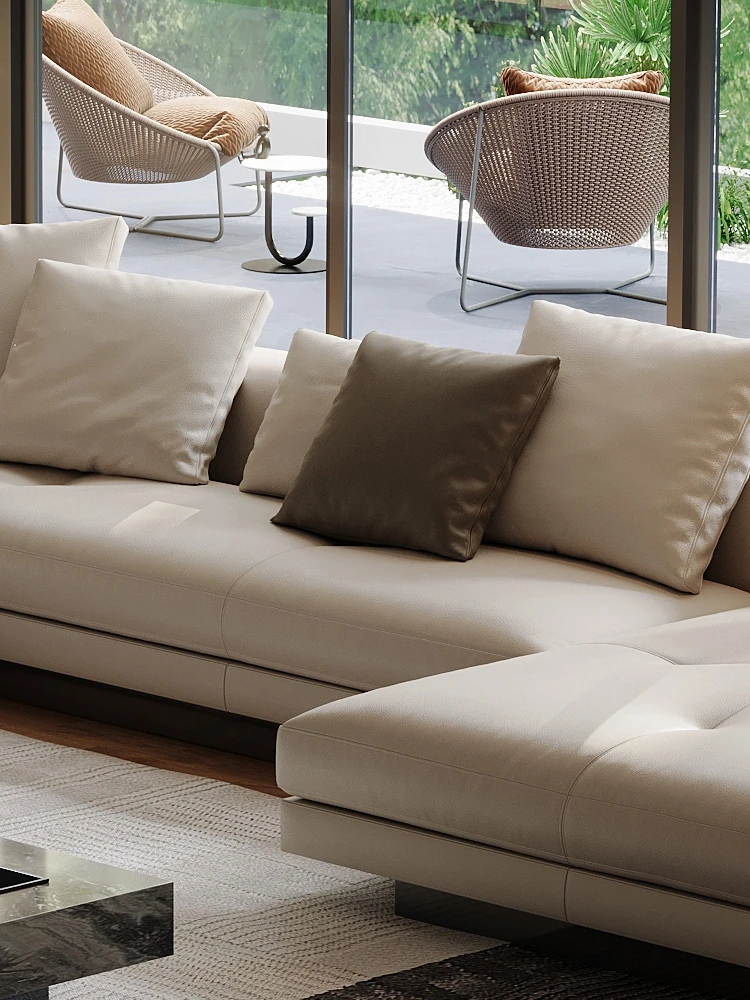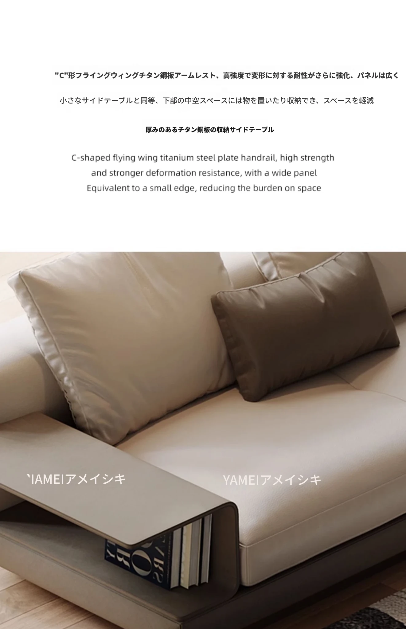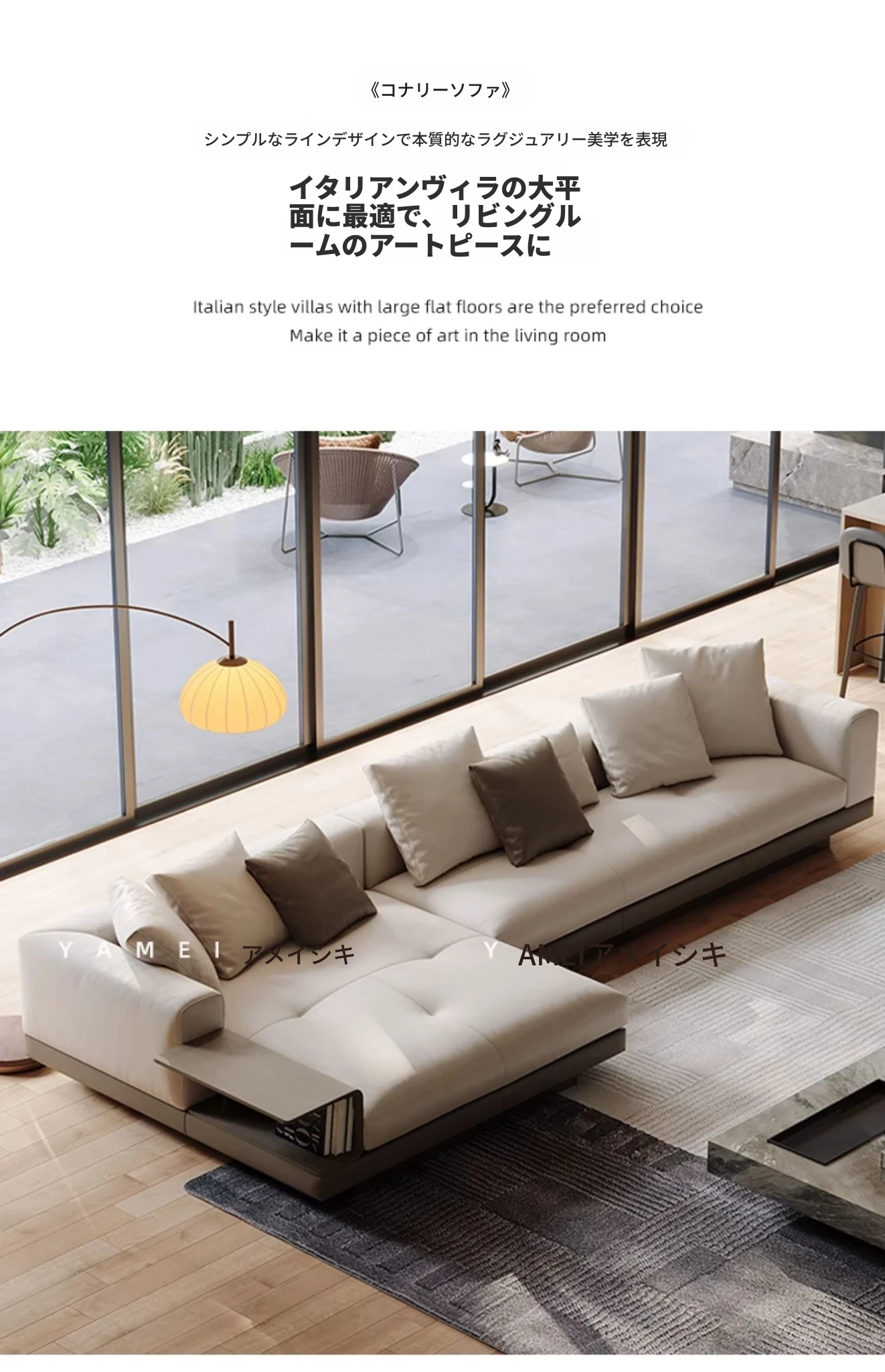 イタリアンミニマリズムのコンナリーソファー - ヴィラや広々としたリビングに最適な全青皮デザイン!デザイナーによる真皮ソファで、洗練された空間を演出します。