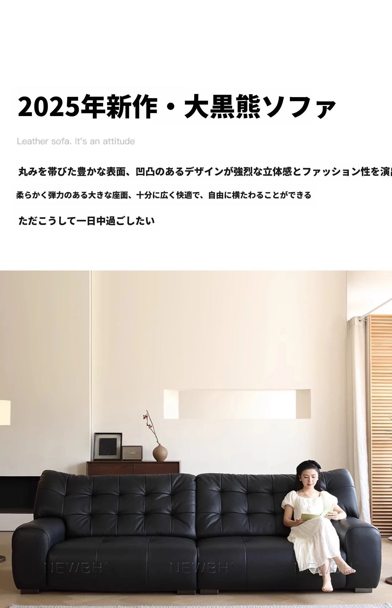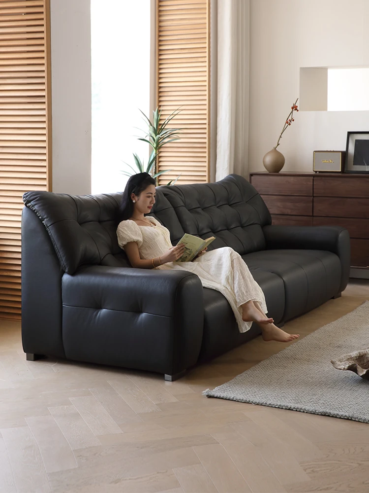 イタリアンミニマルデザインのブラックベア本革ソファ|モダンでシンプルなリビングにぴったり!ヴィンテージスタイルの直線的なデザインが魅力の本革ソファ。あなたの空間を格上げする一品です!