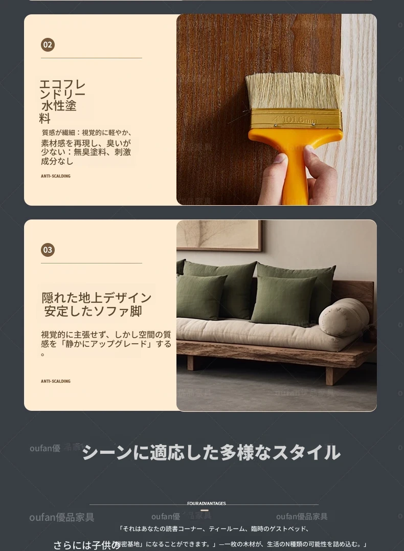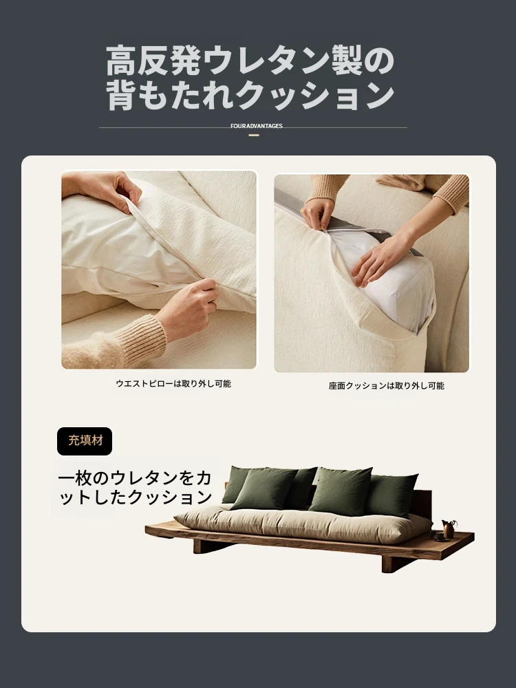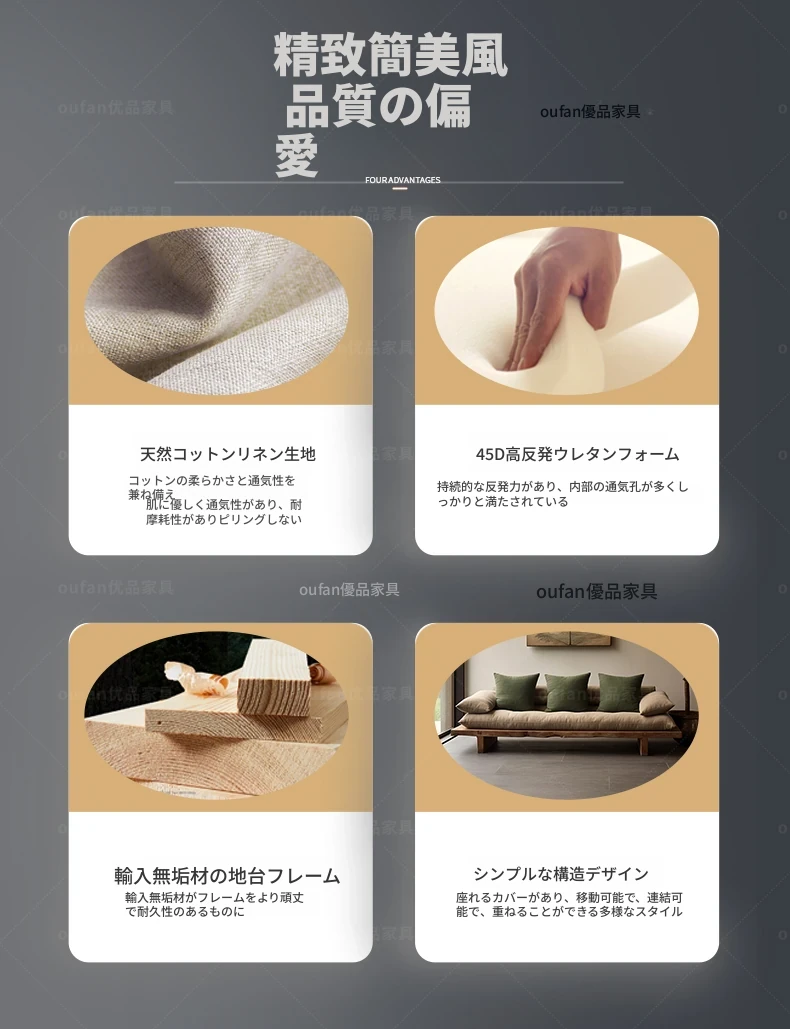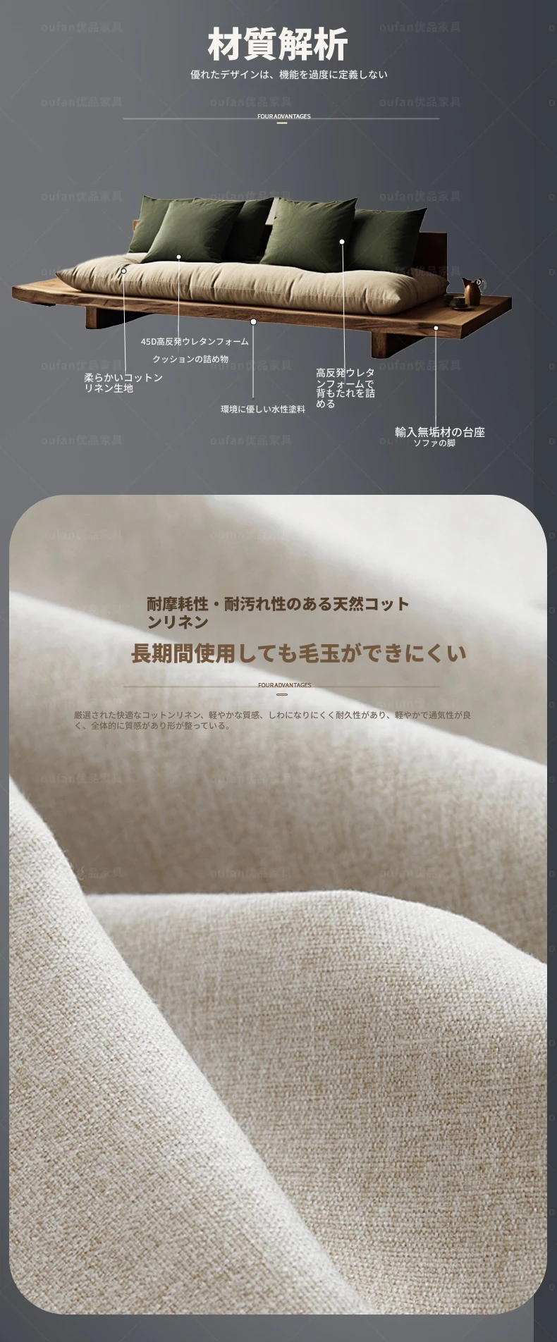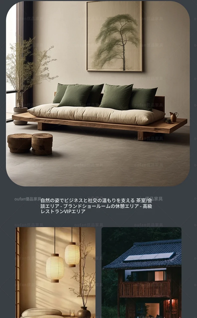 和の趣を感じる侘寂風実木ソファ - シンプルでおしゃれな原木デザイン!小型のリビングや民宿にぴったりの2人掛け・3人掛けソファ。空間を優雅に彩る、心安らぐひとときを提供します。