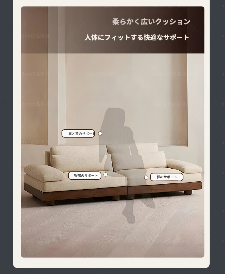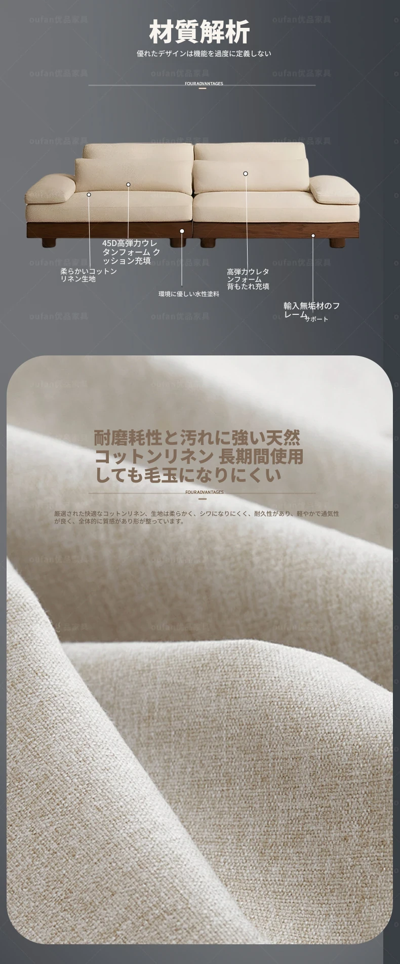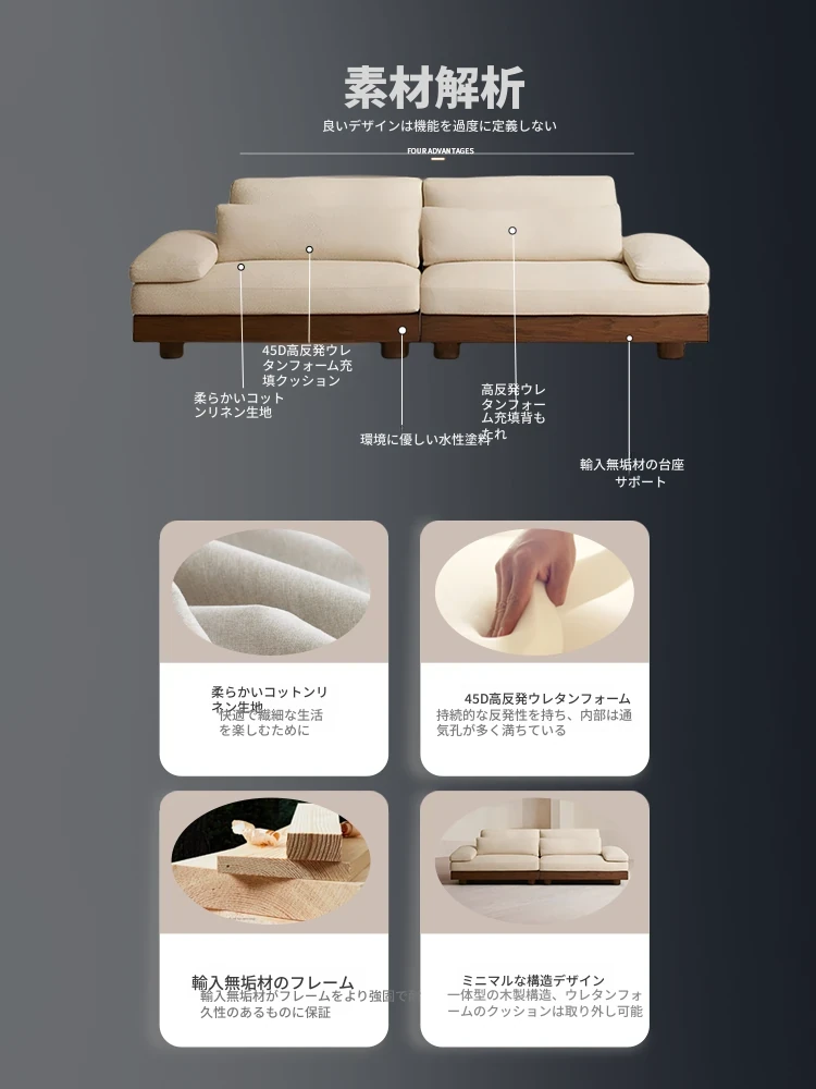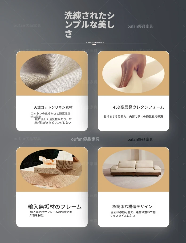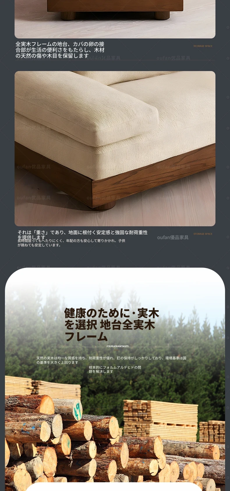 中古侘寂風の無垢材フロアソファ、布製で心地よい!小型リビングや和室にぴったり。民宿や休息スペースに最適なデザイン。あなたの空間に和の美を添えます!