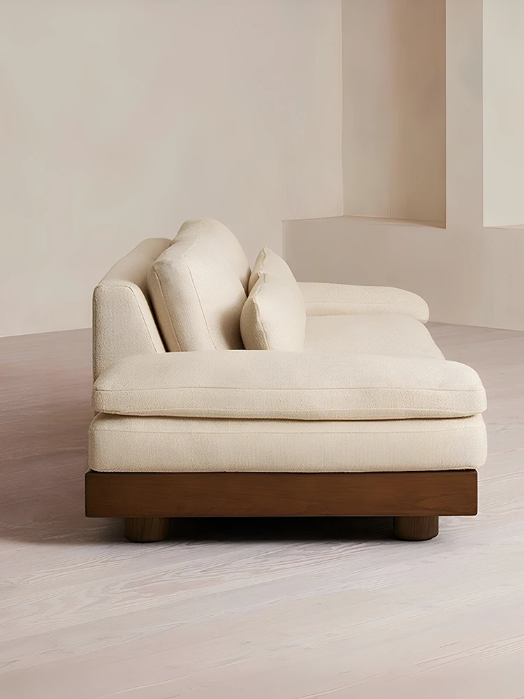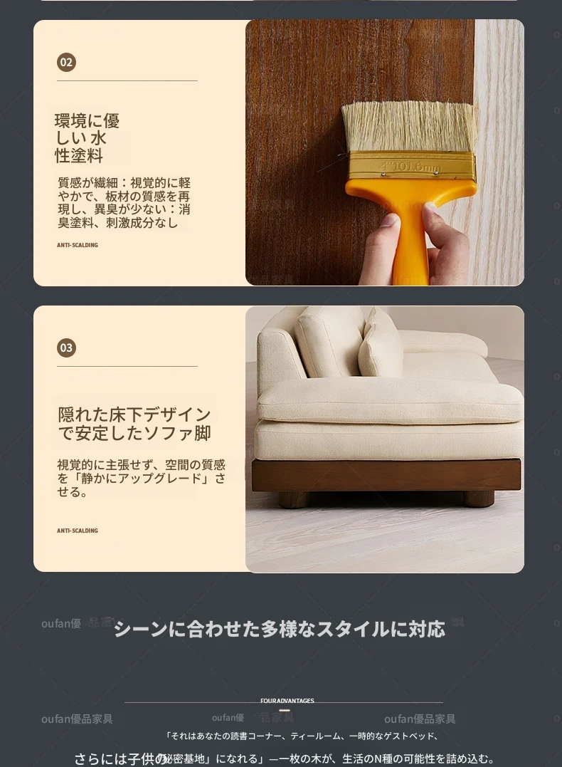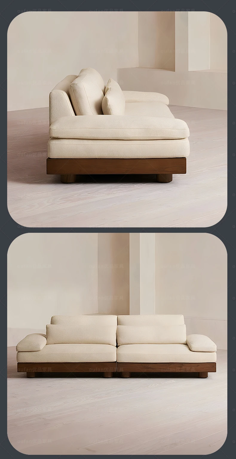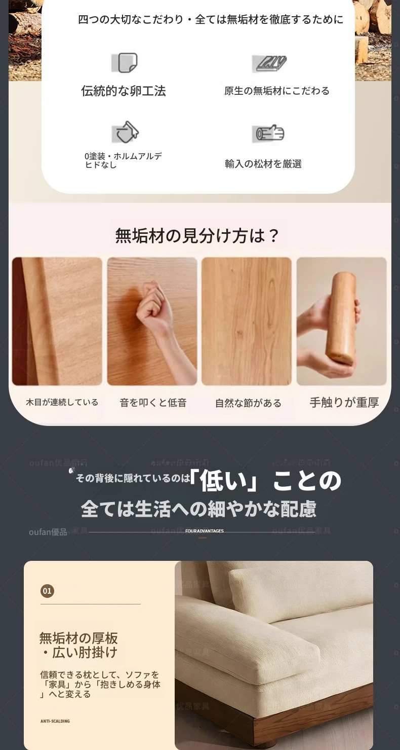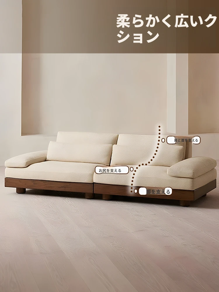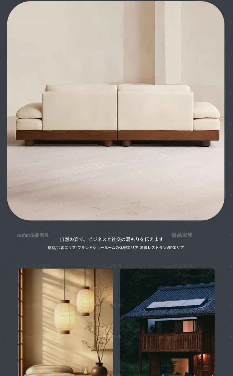 中古侘寂風の無垢材フロアソファ、布製で心地よい!小型リビングや和室にぴったり。民宿や休息スペースに最適なデザイン。あなたの空間に和の美を添えます!