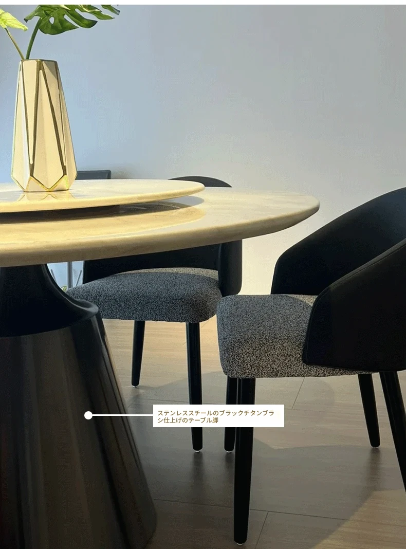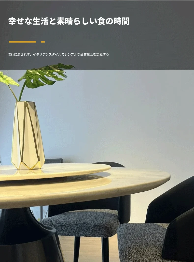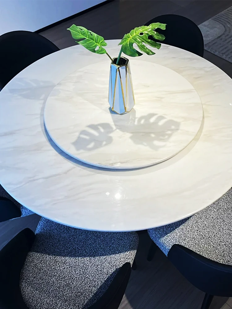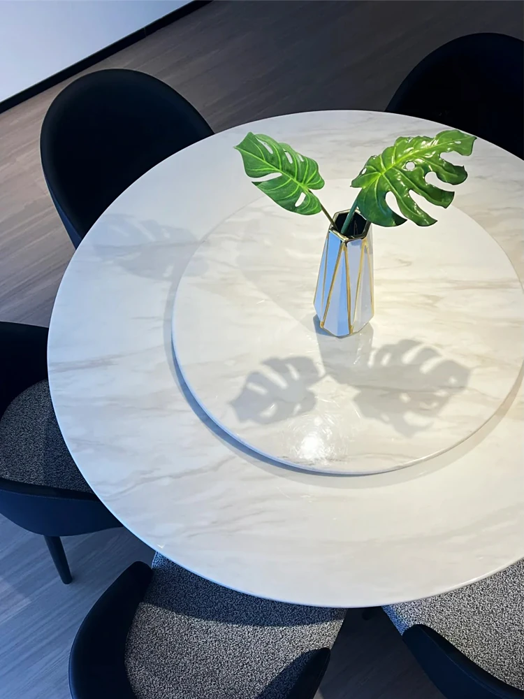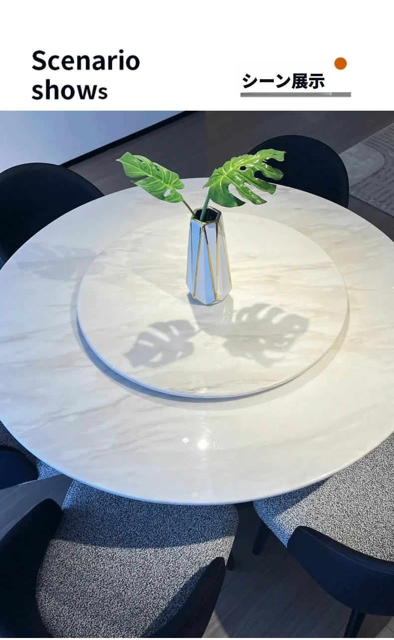 輸入爵士ホワイト高級石製イタリアンラグジュアリーサークルダイニングテーブル - 天然大理石、回転プレート付き、高級ヴィラに最適な一品!