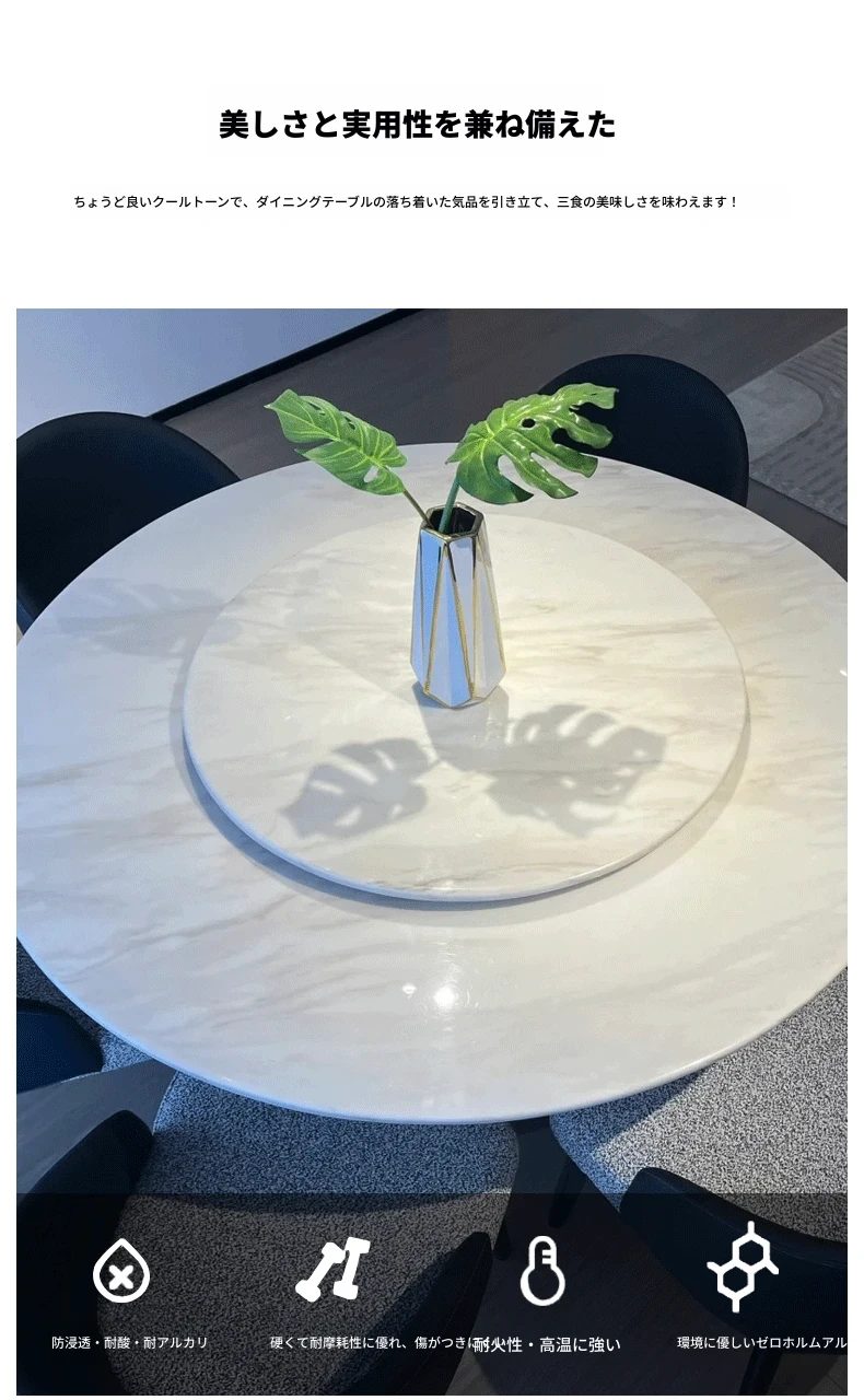 1.5メートル円卓+80CMターンテーブル+10椅子/天然ラグジュアリー石ジャズホワイト 【偽物は10倍返し】