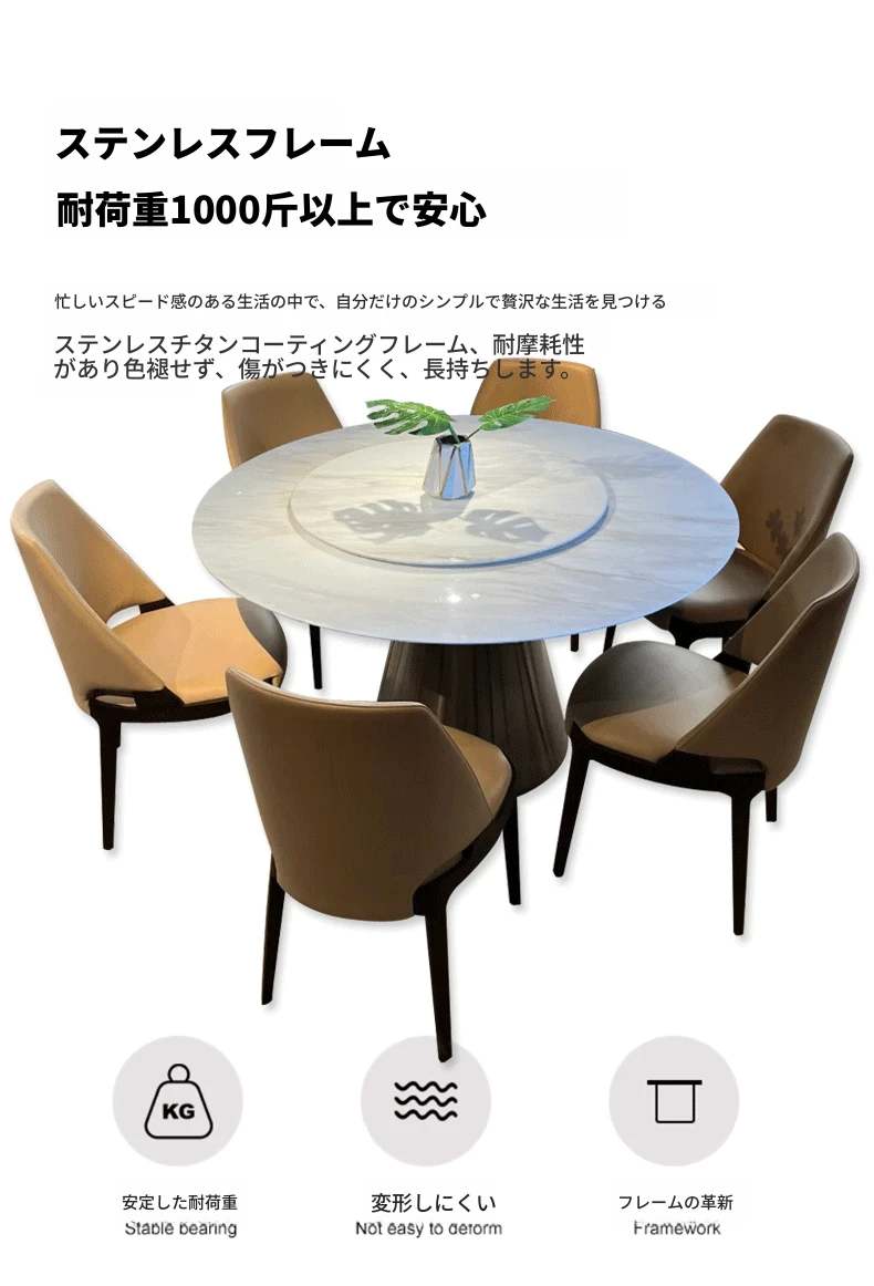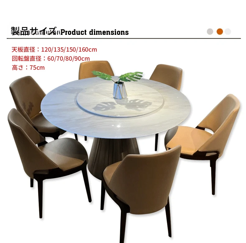 1.5メートル円卓+80CMターンテーブル+8椅子/天然ラグジュアリー石ジャズホワイト 【偽物は10倍返し】