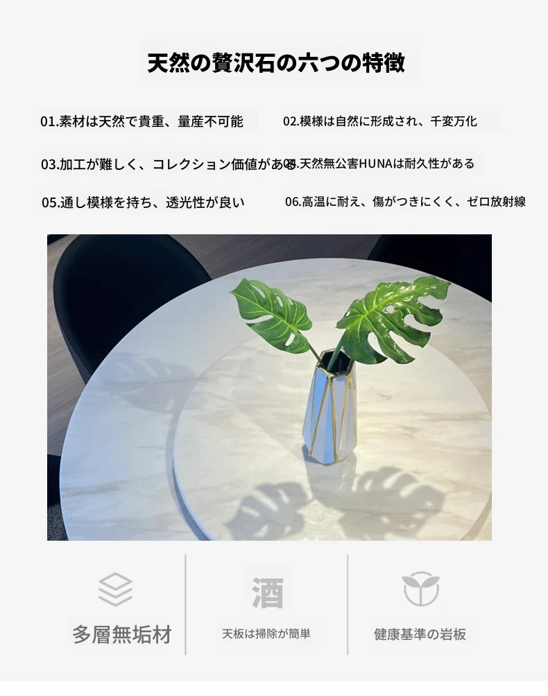 1.5メートル円卓+80CMターンテーブル+6椅子/天然ラグジュアリー石ジャズホワイト 【偽物は10倍返し】