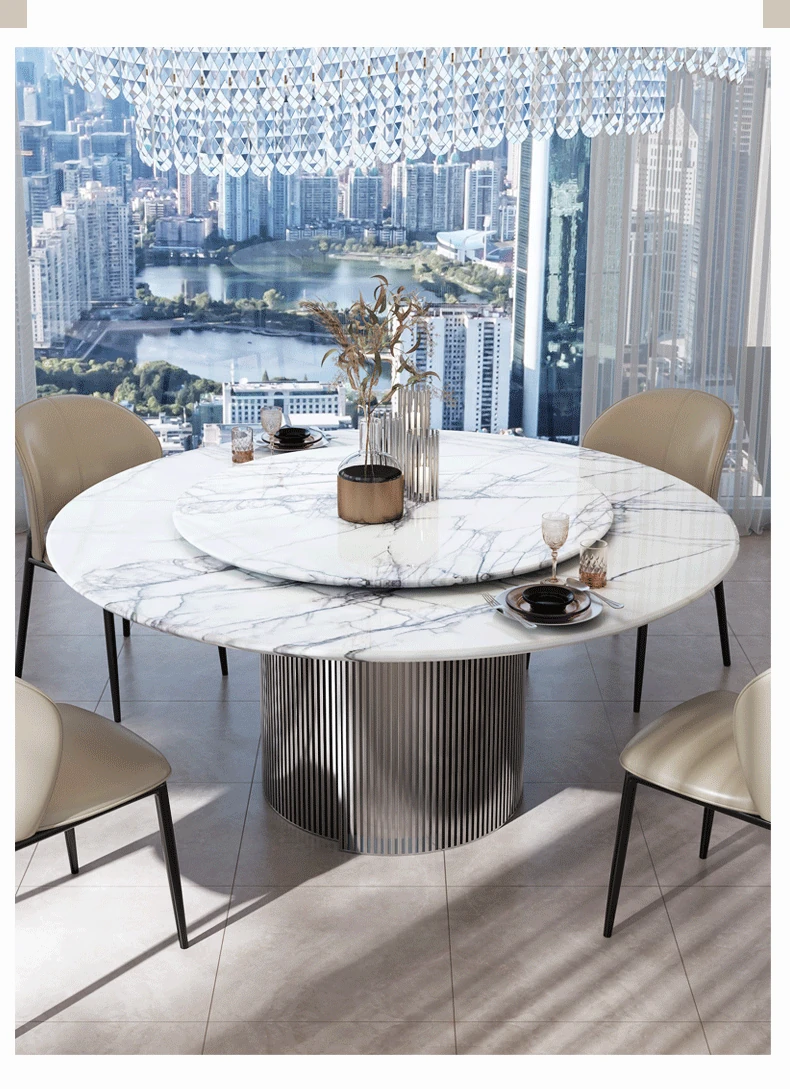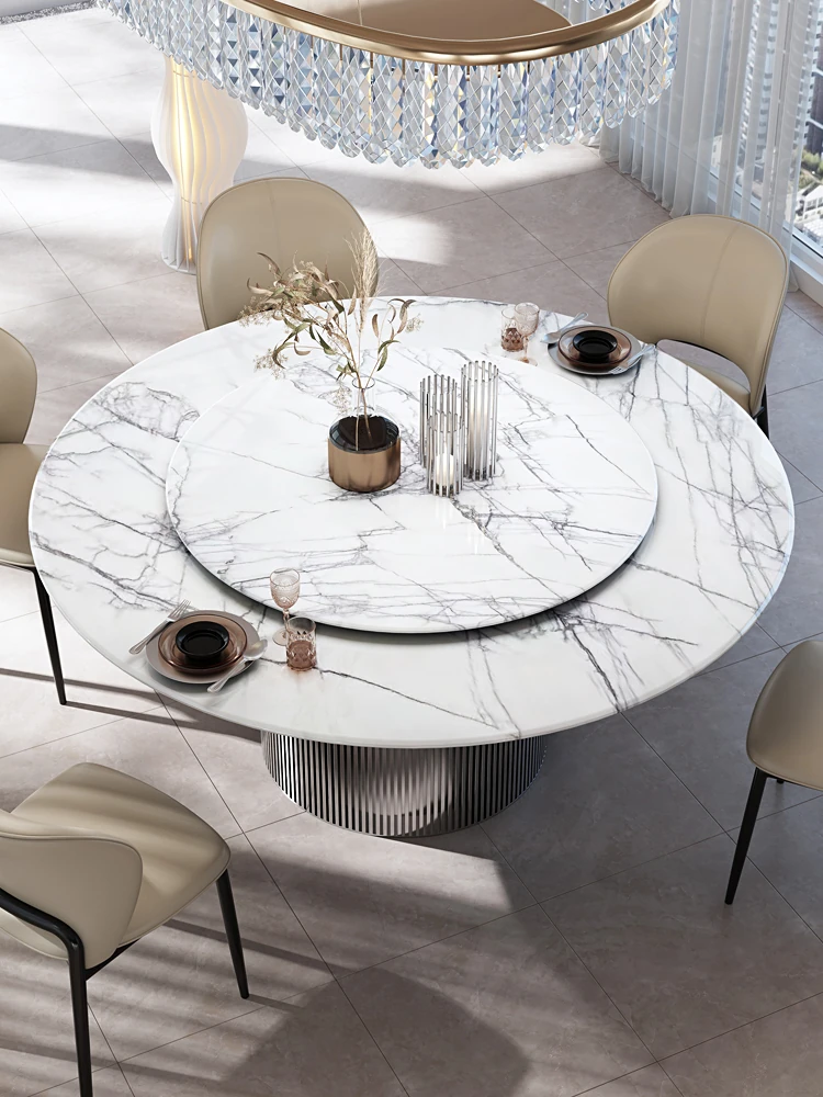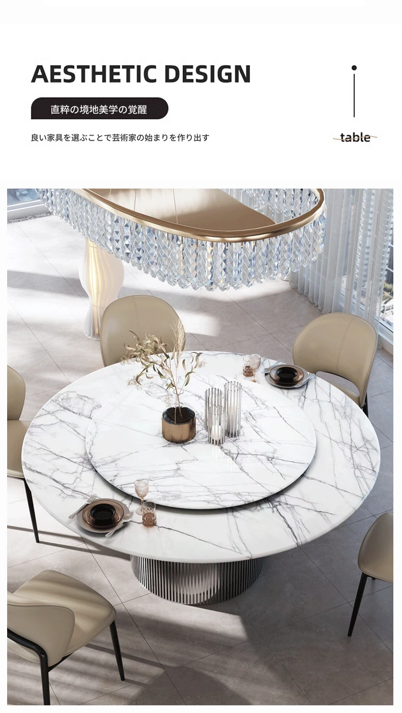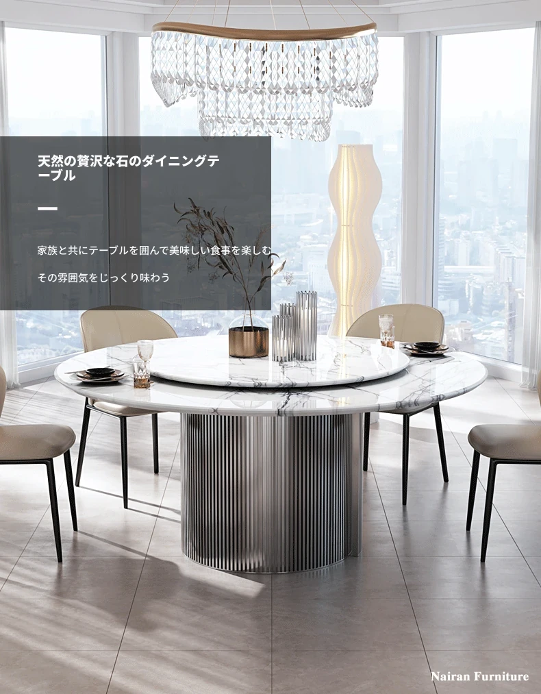 天然イタリアンラグジュアリー香雪梅ダイニングテーブル - 高級感あふれる別荘や豪邸にぴったりの大理石製高級ラウンドテーブル、便利な回転盤付き!
