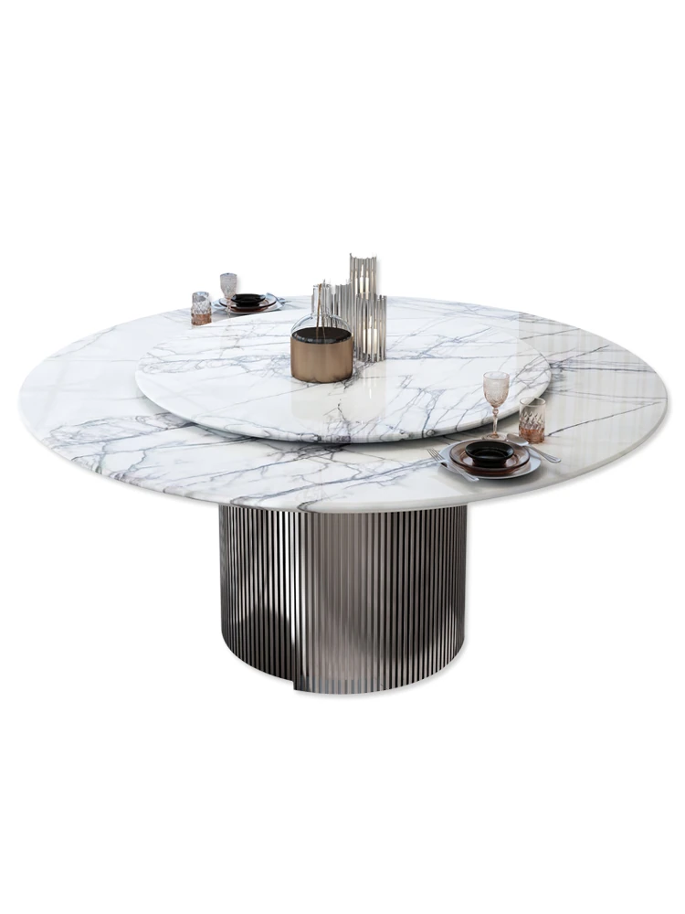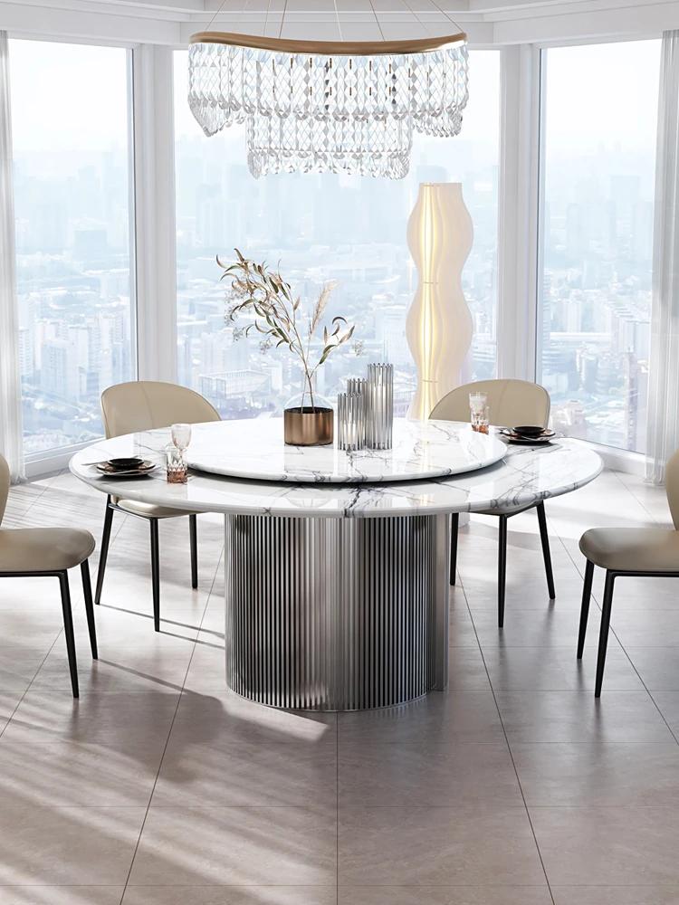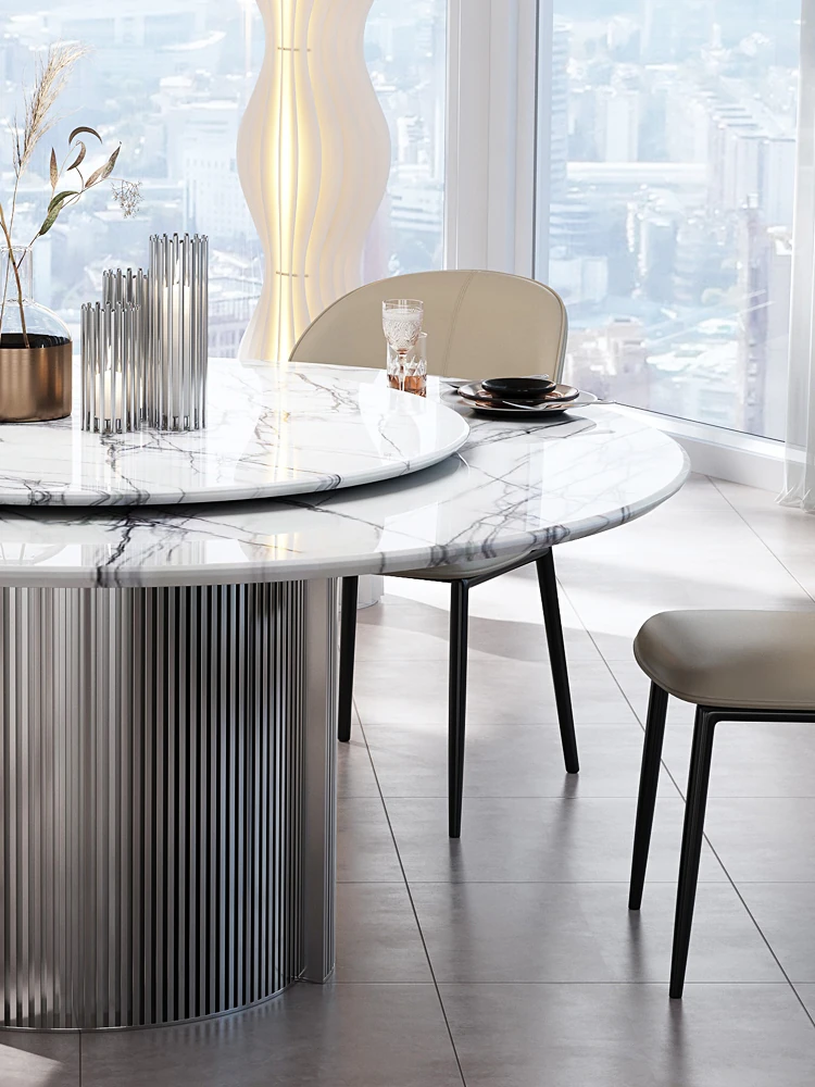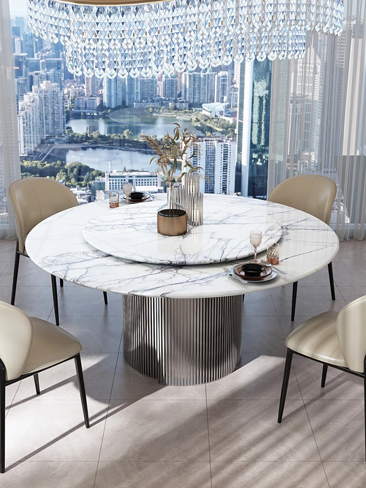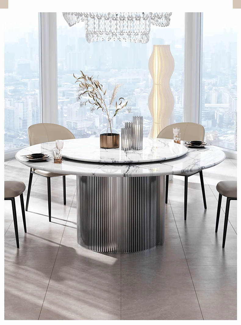 天然イタリアンラグジュアリー香雪梅ダイニングテーブル - 高級感あふれる別荘や豪邸にぴったりの大理石製高級ラウンドテーブル、便利な回転盤付き!