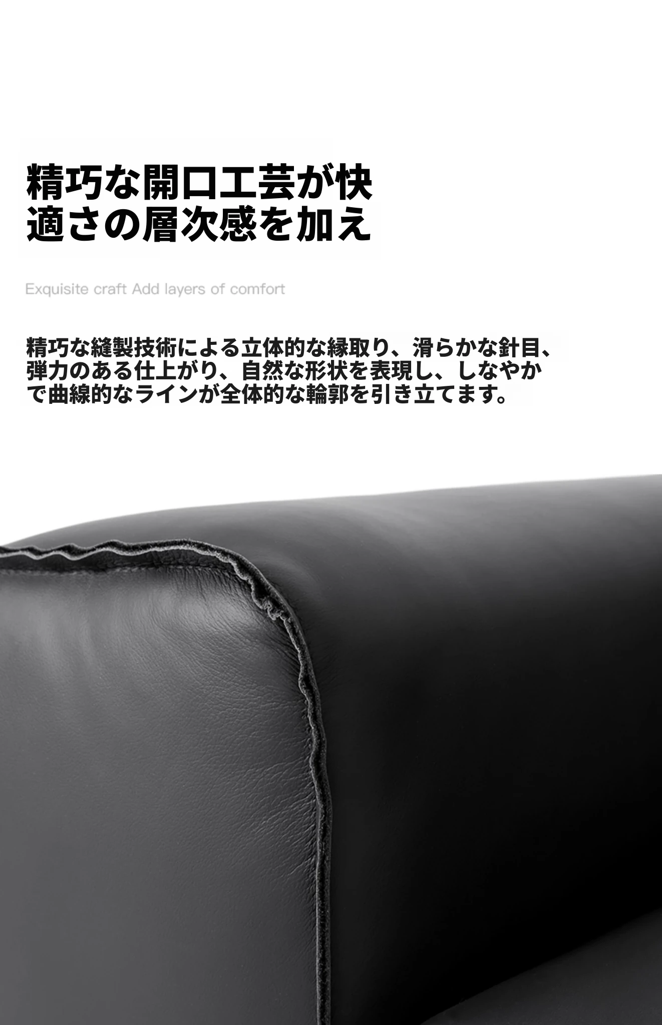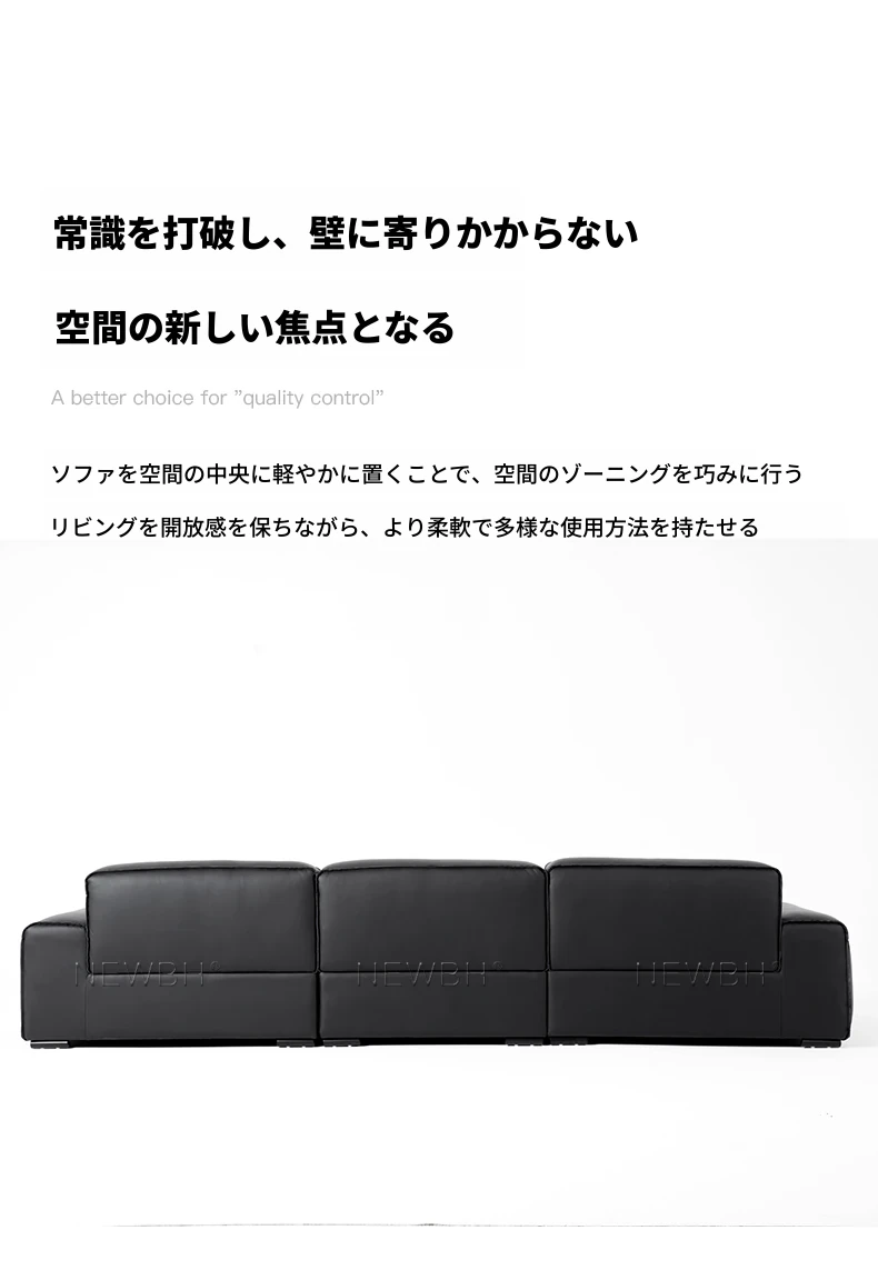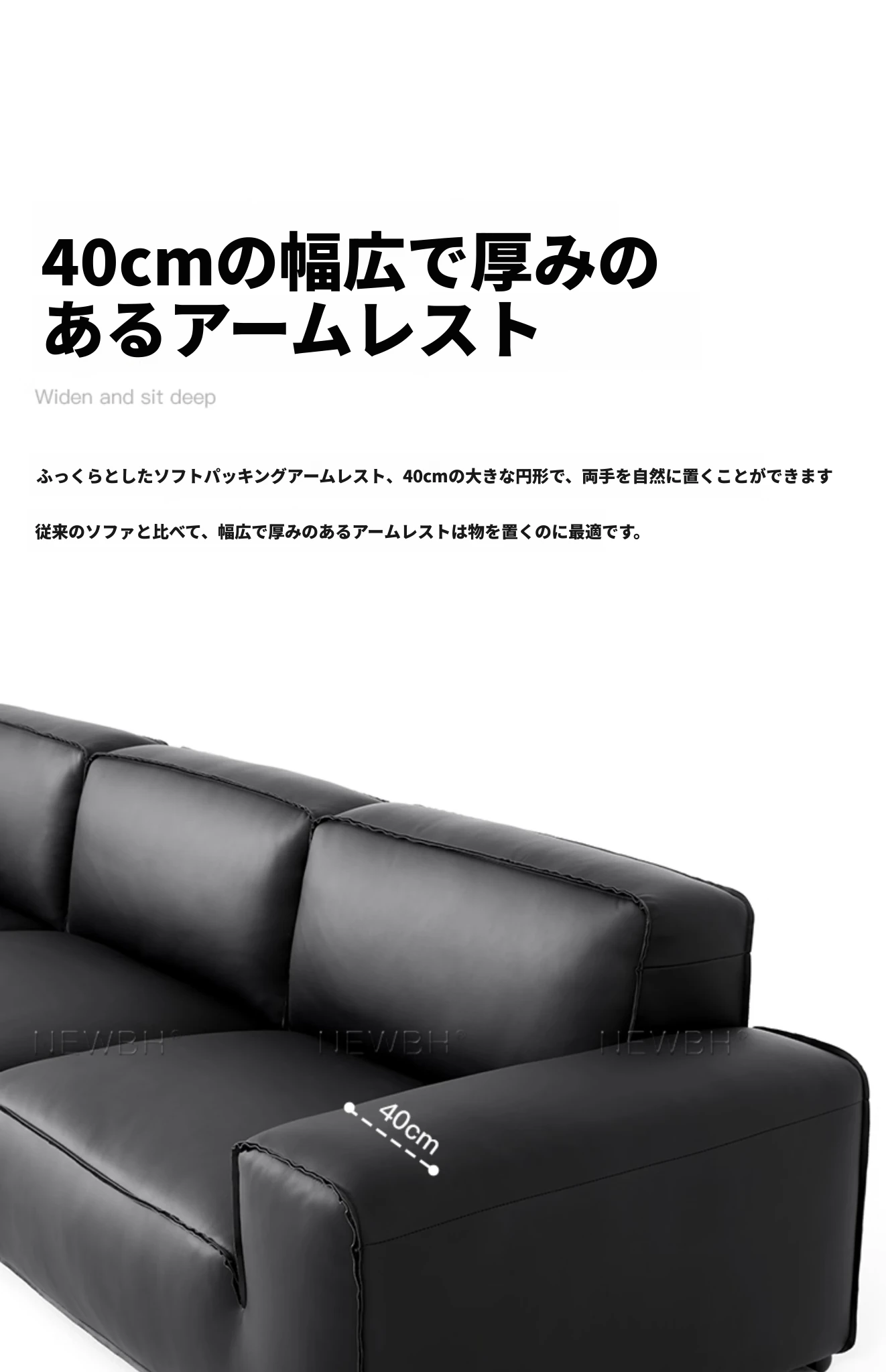 ブラックビッグレザーソファ|高級本革使用のモダンデザイン|ラテックス仕上げで快適さを追求|シンプルでスタイリッシュなリビングに最適な豆腐ブロック型ソファ