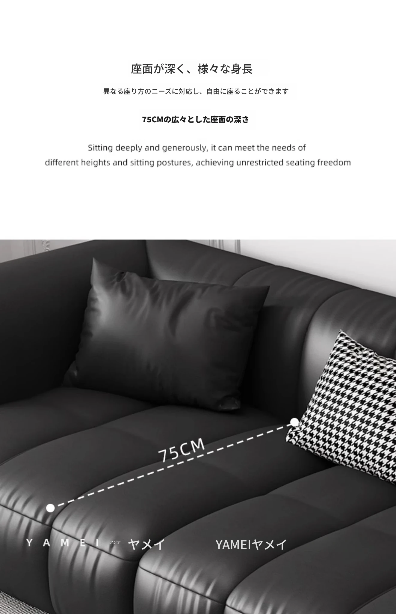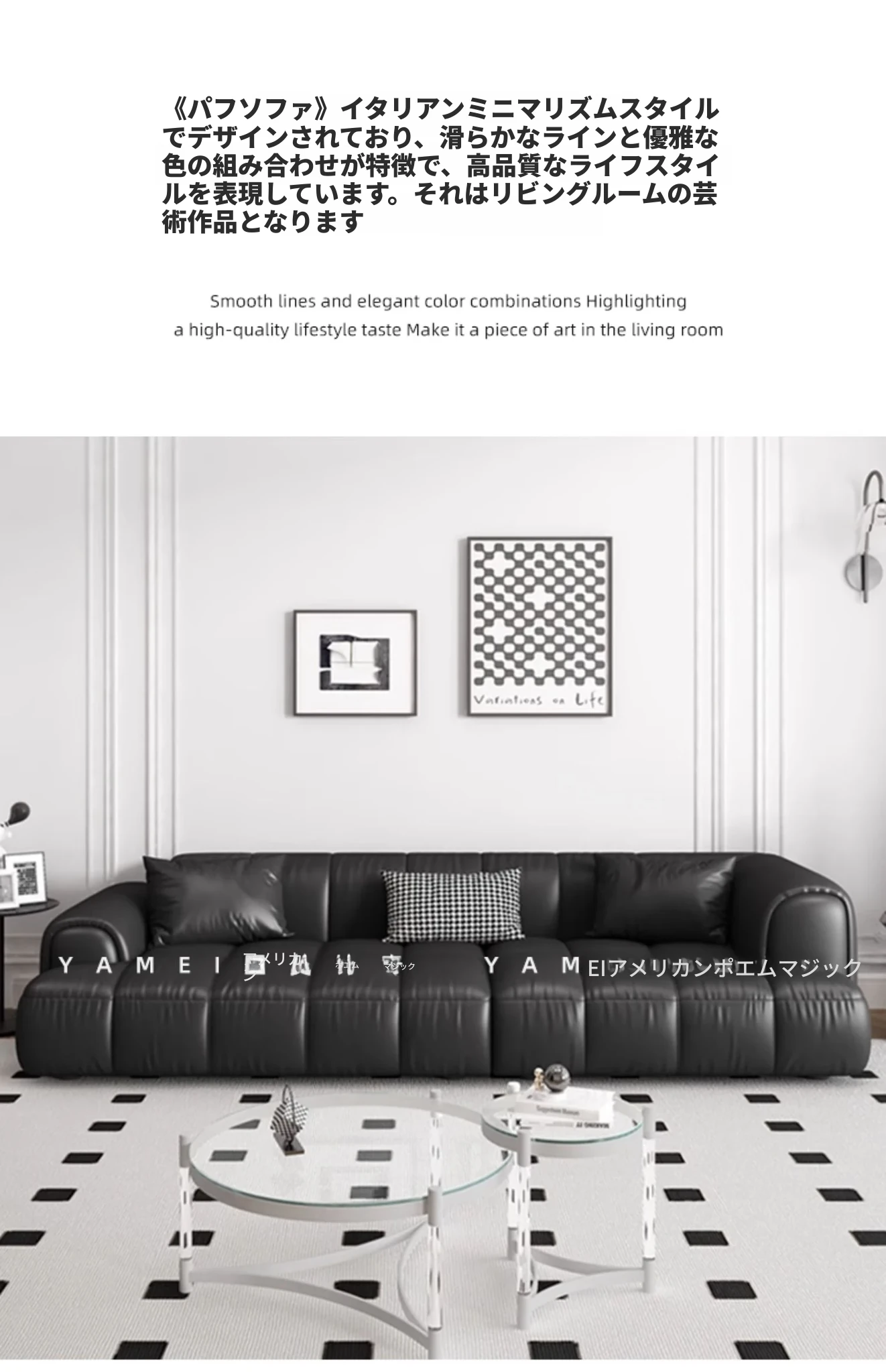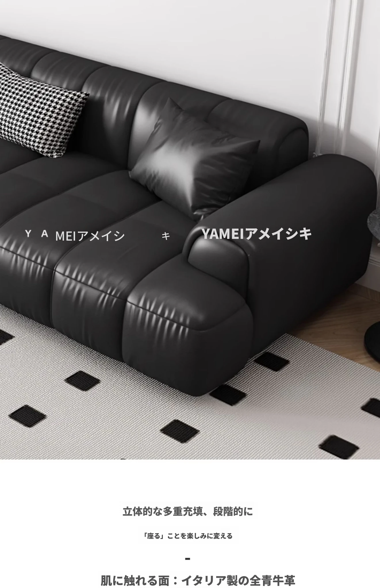 イタリアン本革ソファ 小型リビングに最適!シンプルモダンなデザイン、ポフヘッド付きの高品質牛革ブラックソファで、スタイリッシュな空間を演出。あなたのリビングにぴったりのアイテムです!