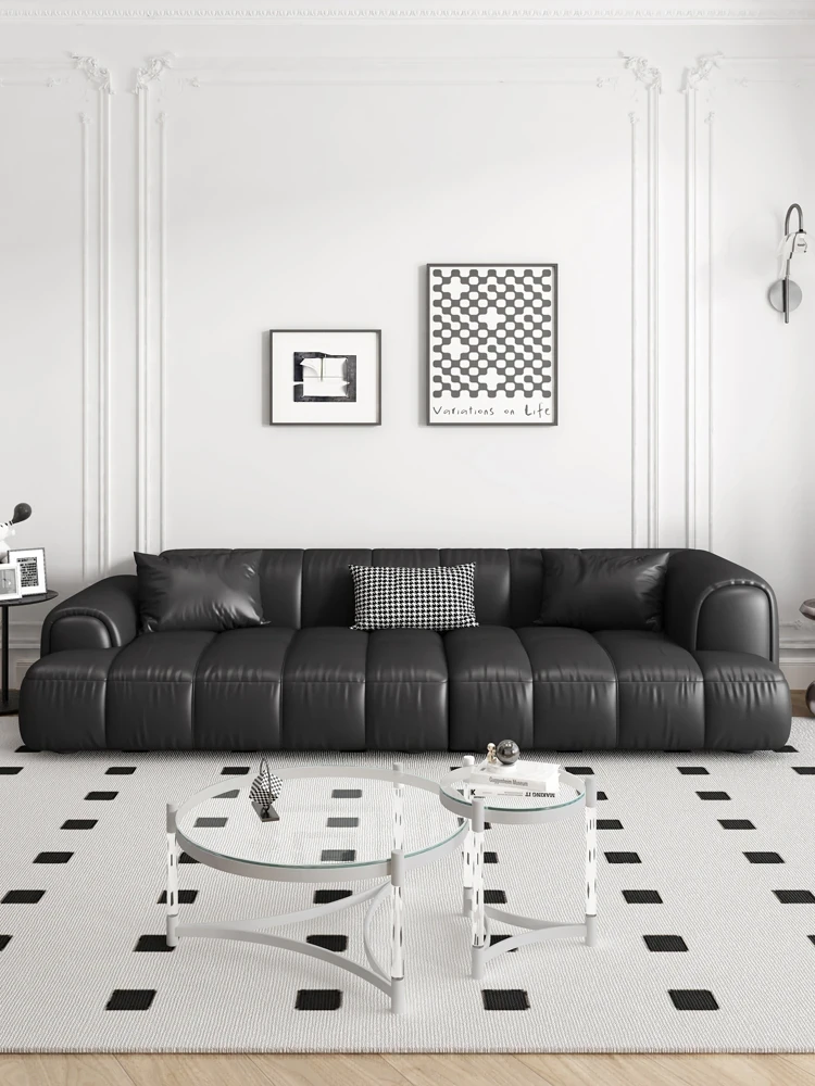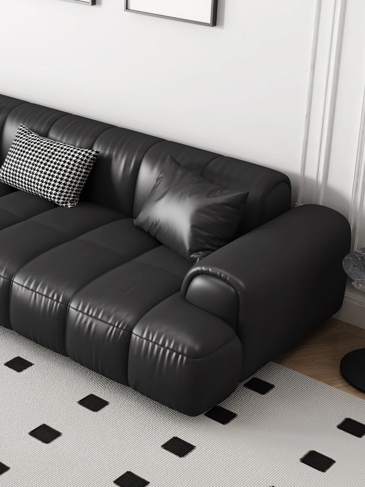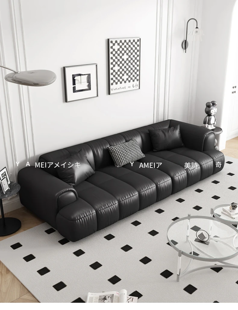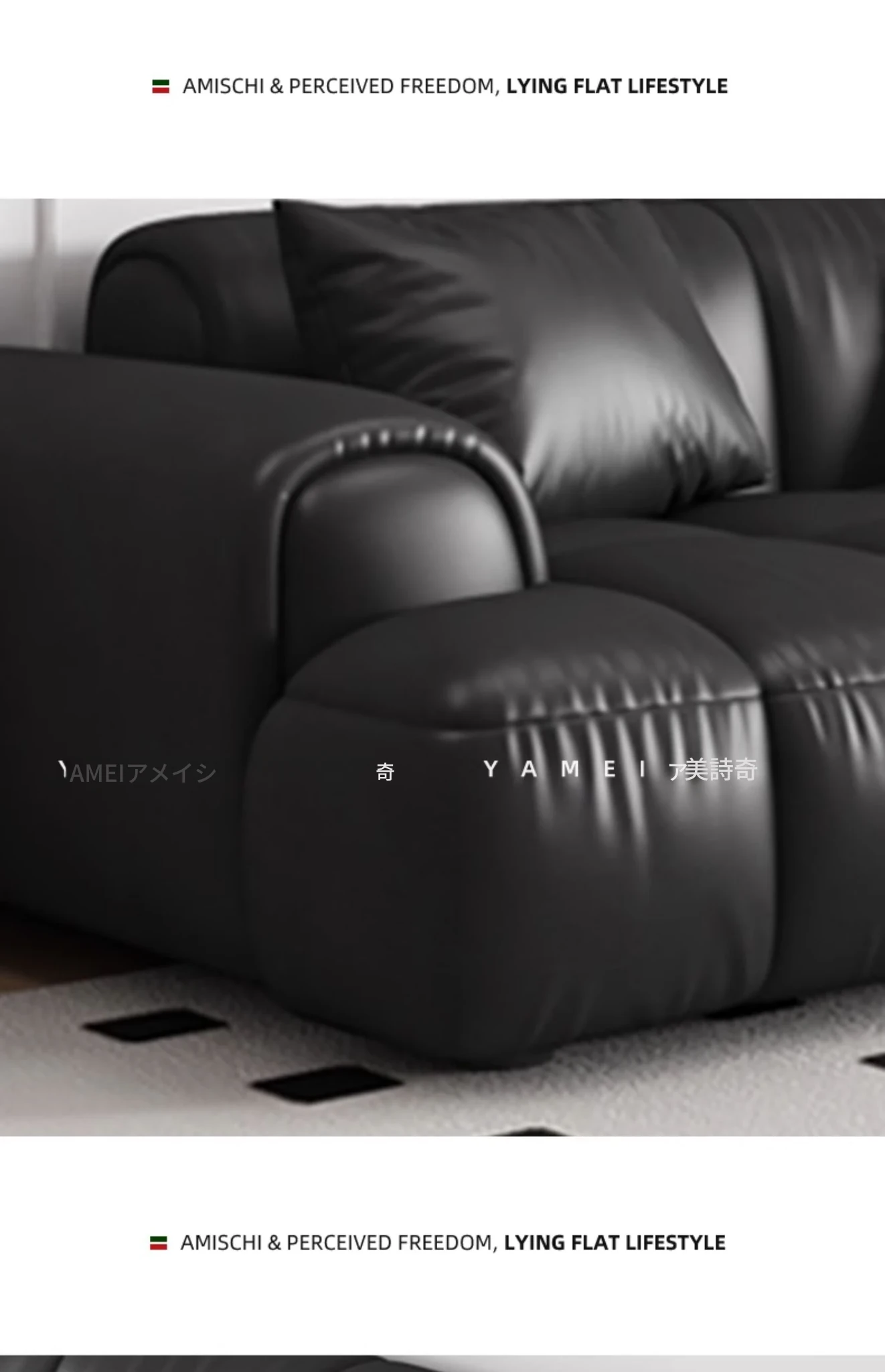 イタリアン本革ソファ 小型リビングに最適!シンプルモダンなデザイン、ポフヘッド付きの高品質牛革ブラックソファで、スタイリッシュな空間を演出。あなたのリビングにぴったりのアイテムです!