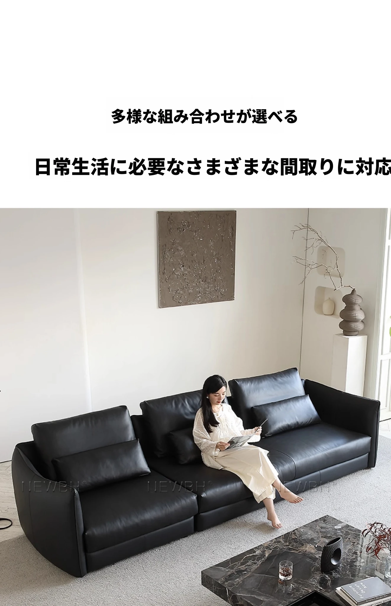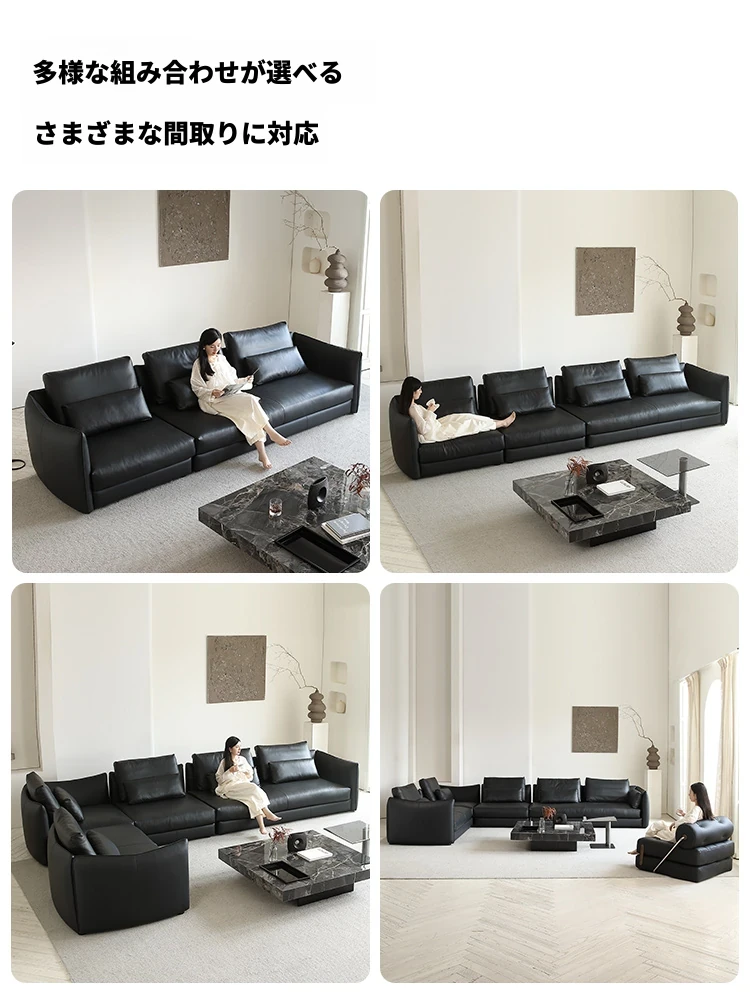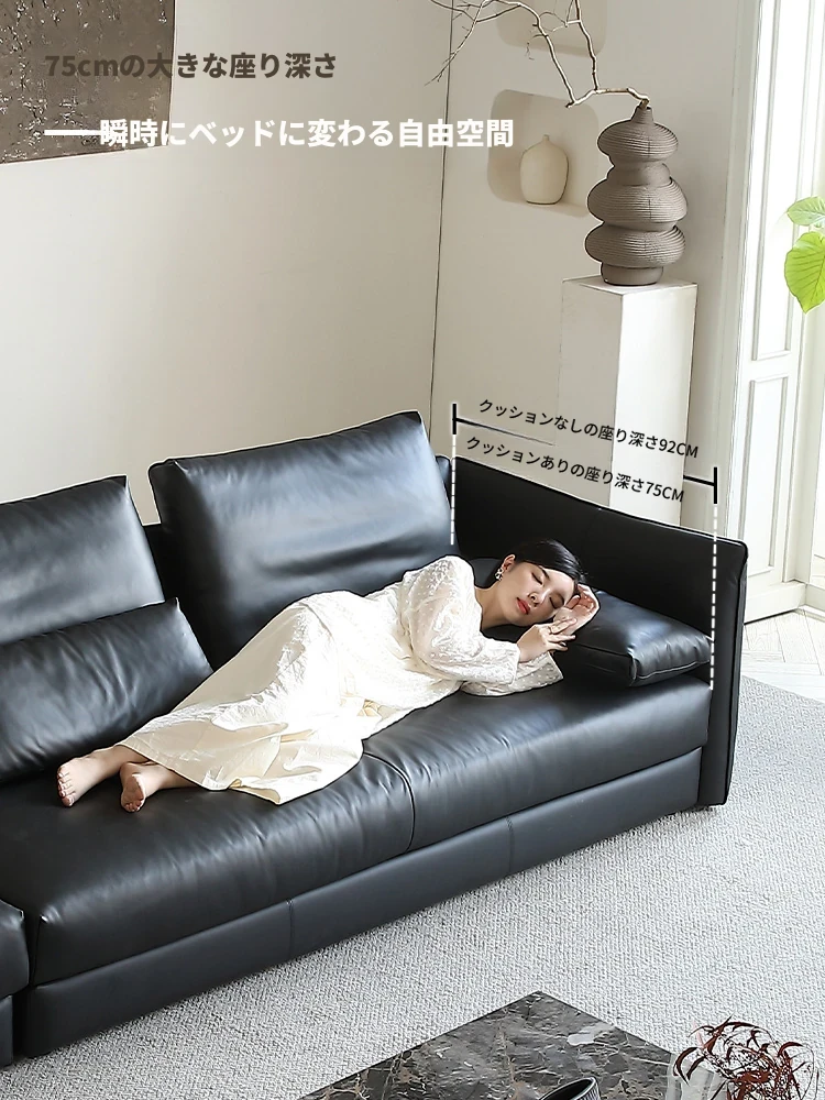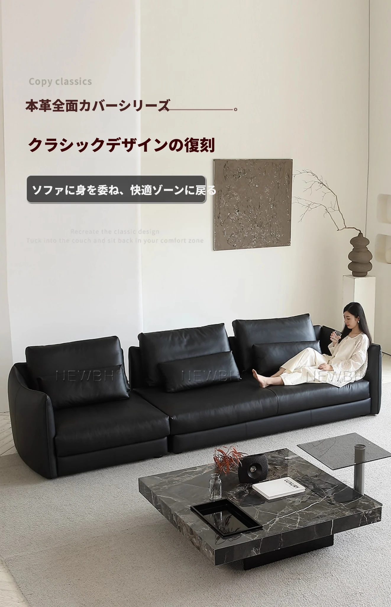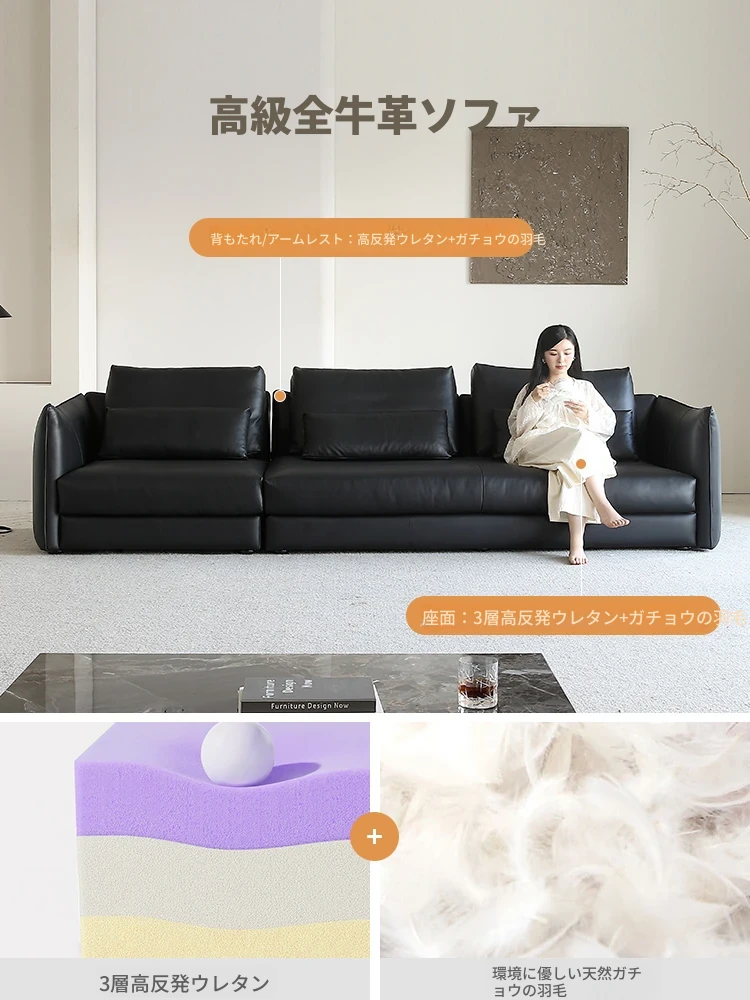 イタリアンミニマルデザイン本革ソファ - ブラック現代的でシンプルなリビングに最適!2025年新作、直線的で高級感あふれる本革ソファ。あなたの空間に洗練されたスタイルを加えます!