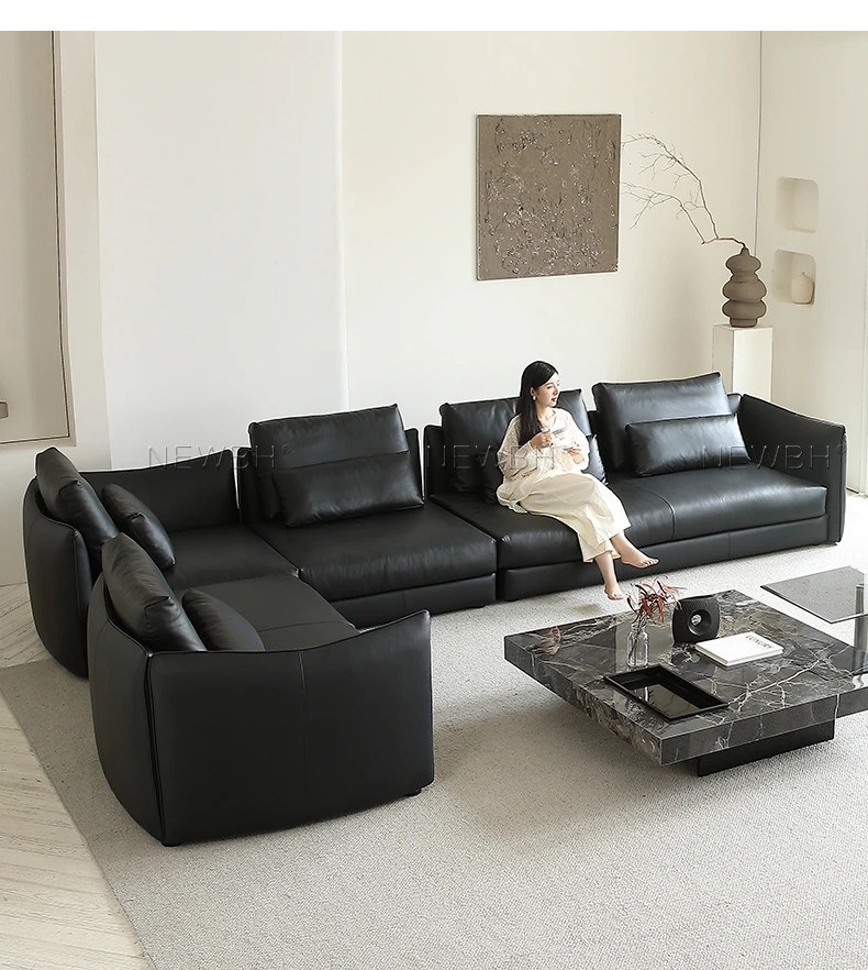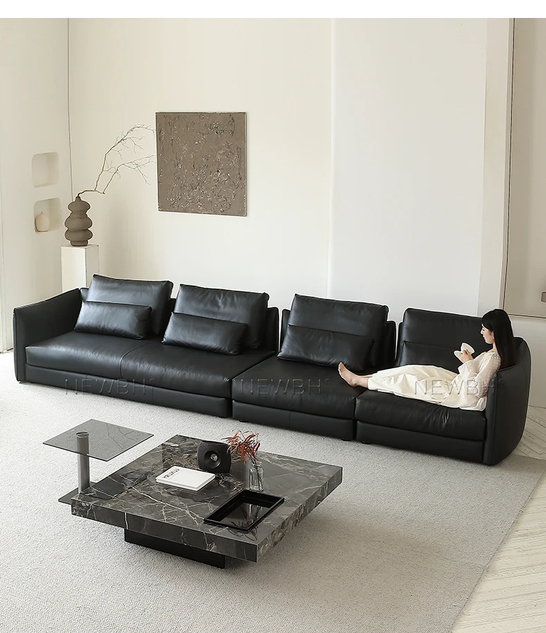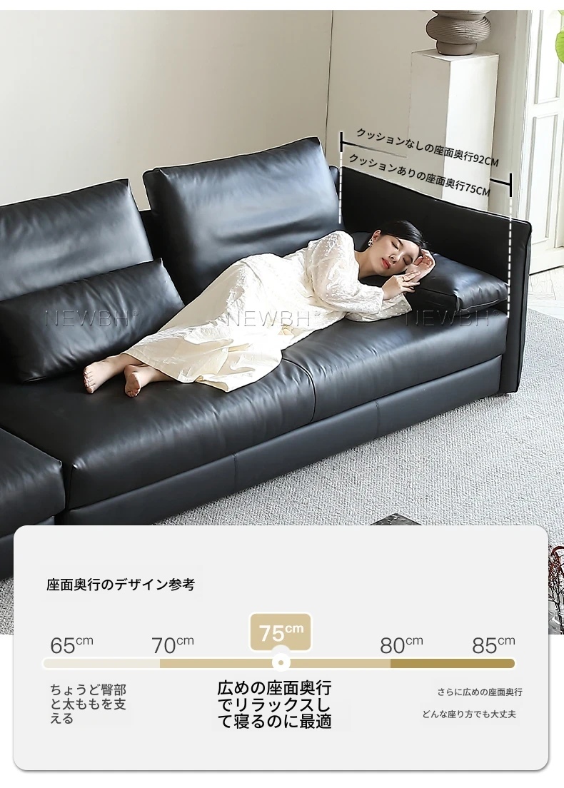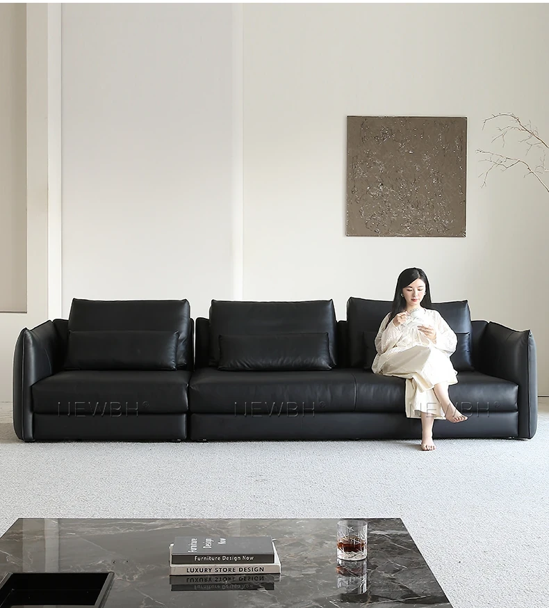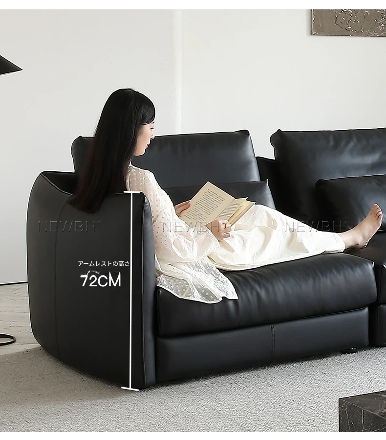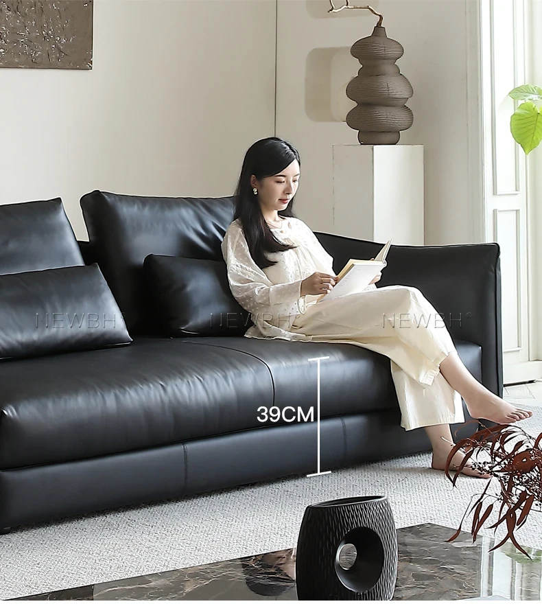 イタリアンミニマルデザイン本革ソファ - ブラック現代的でシンプルなリビングに最適!2025年新作、直線的で高級感あふれる本革ソファ。あなたの空間に洗練されたスタイルを加えます!