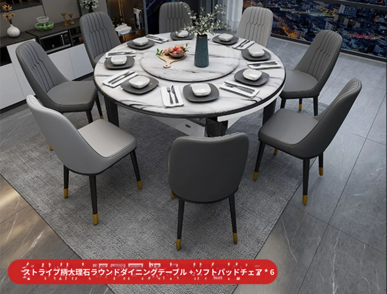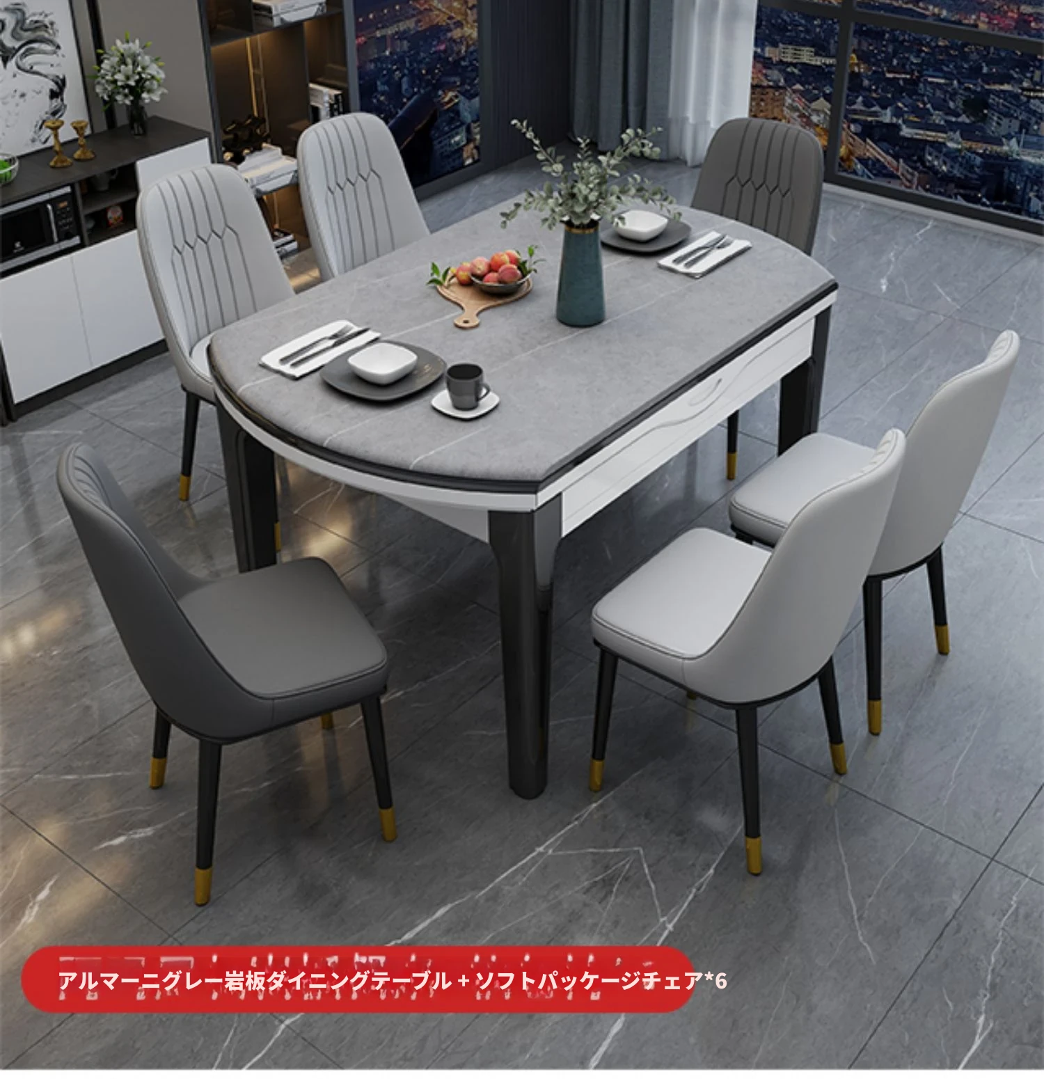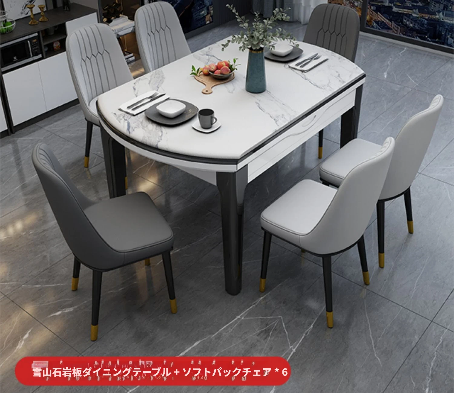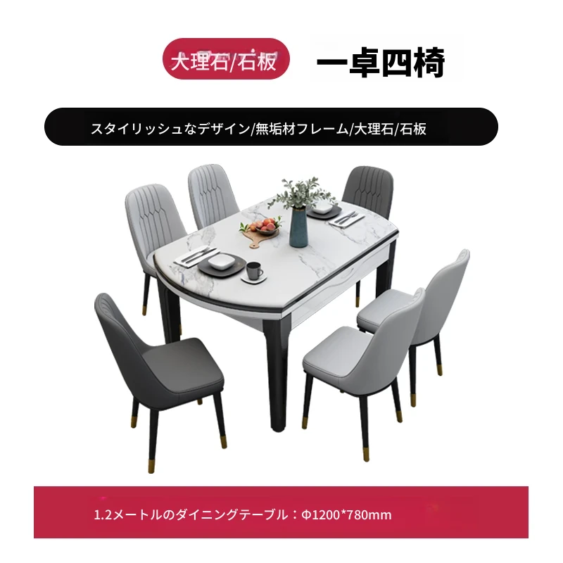 1.2メートル一卓六椅子【大理石/岩板】