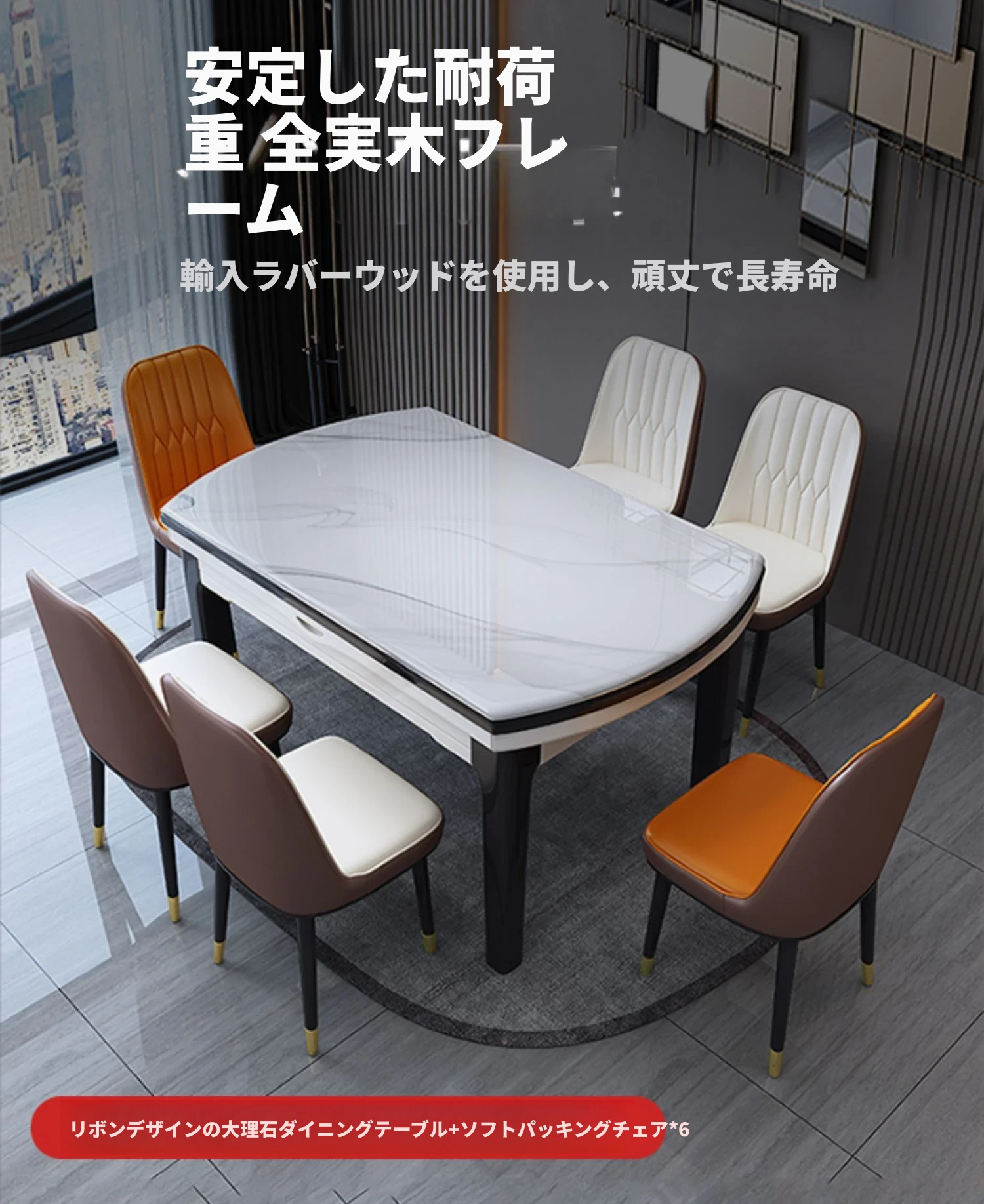 1.5メートル一卓六椅子【大理石/岩板】