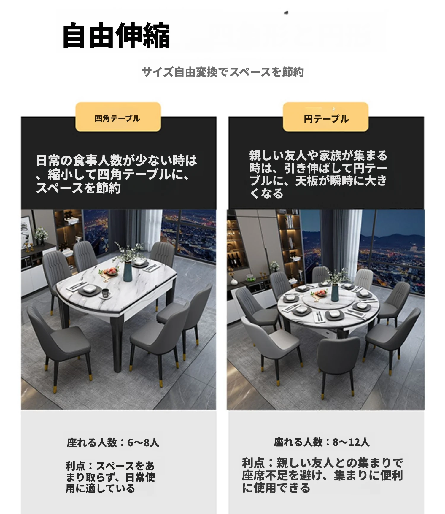 大理石デザインのダイニングテーブル&チェアセット - 天然木製、ホワイトストーン、モダンでシンプルな伸縮式テーブル。小さなスペースにもぴったりな折りたたみ式、家族や友人との楽しい食事時間を演出します!