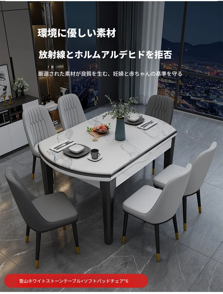 1.35メートル一卓六椅子【大理石/岩板】