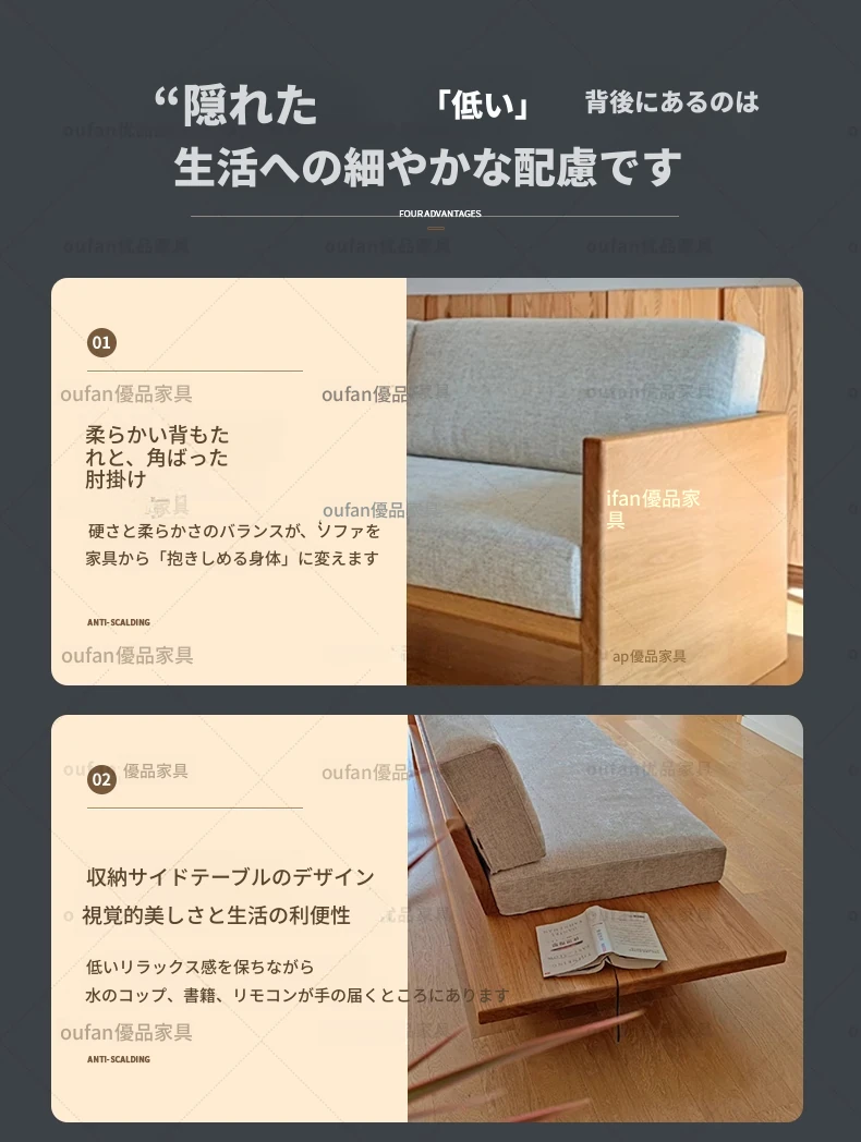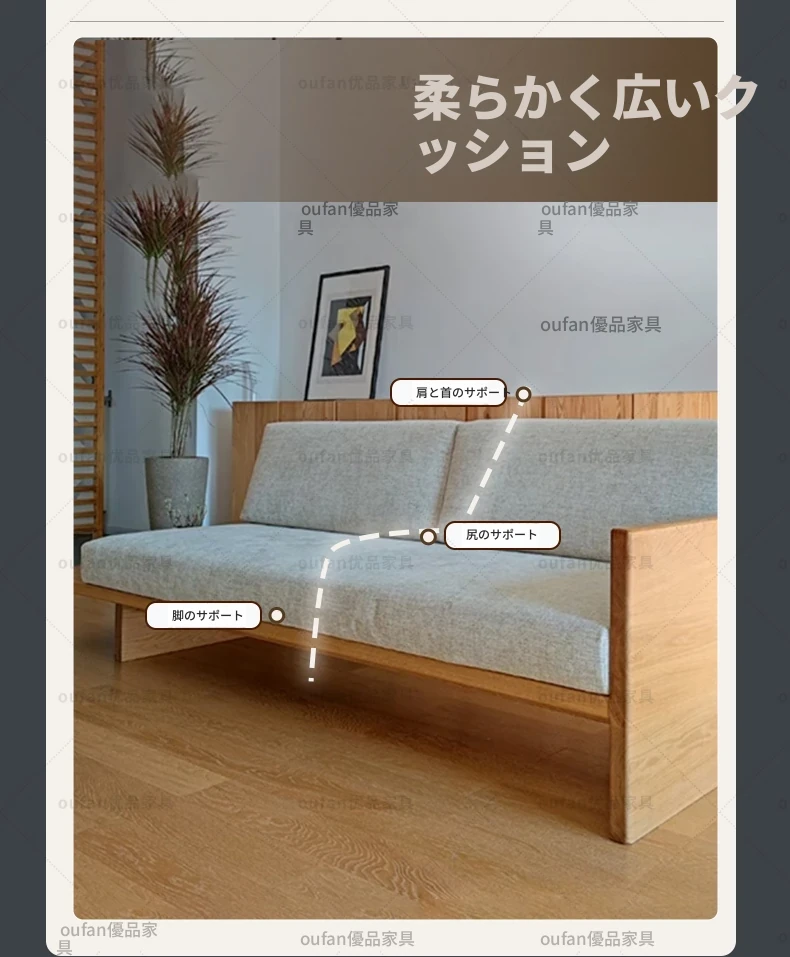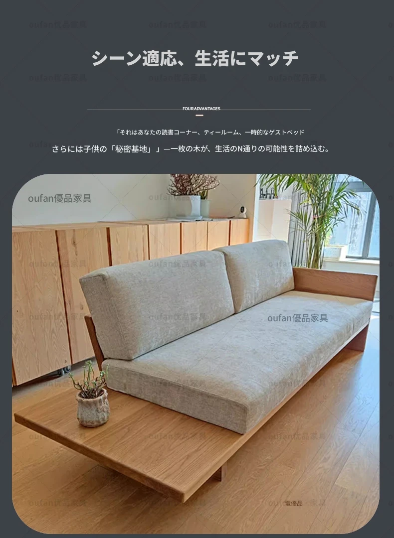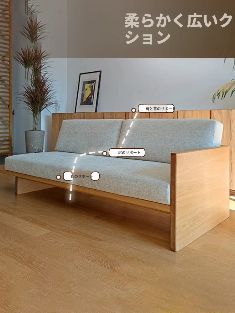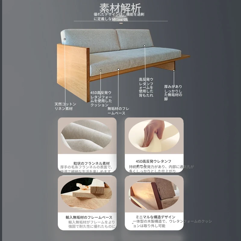 北欧風和モダンデザインの無垢材ソファ - サステナブルな侘寂スタイル!小型リビングや民宿、ホテルの休憩スペースに最適。簡単に洗えるカバー付きで、清潔感もバッチリ!