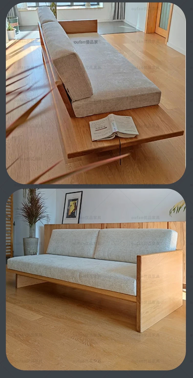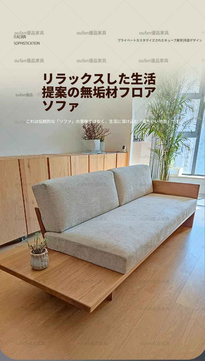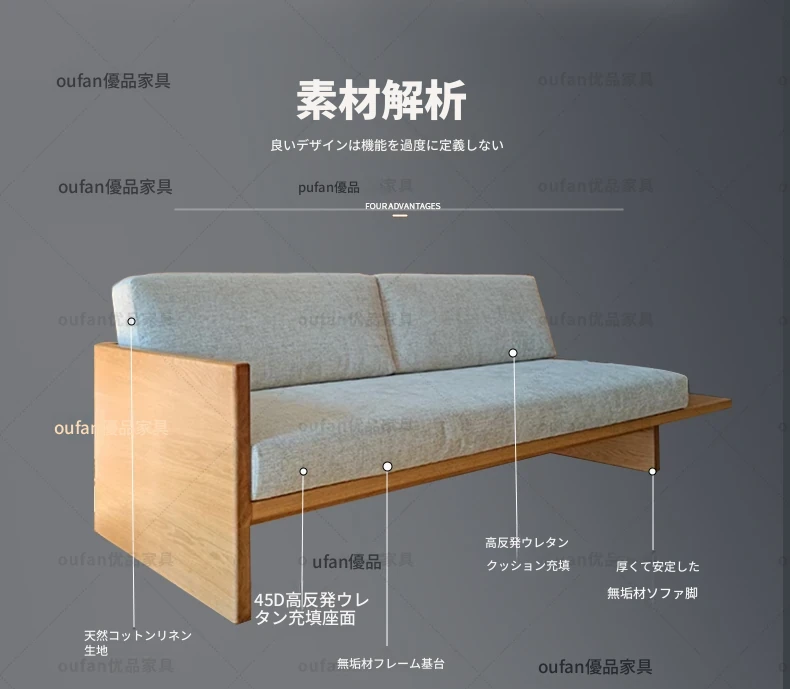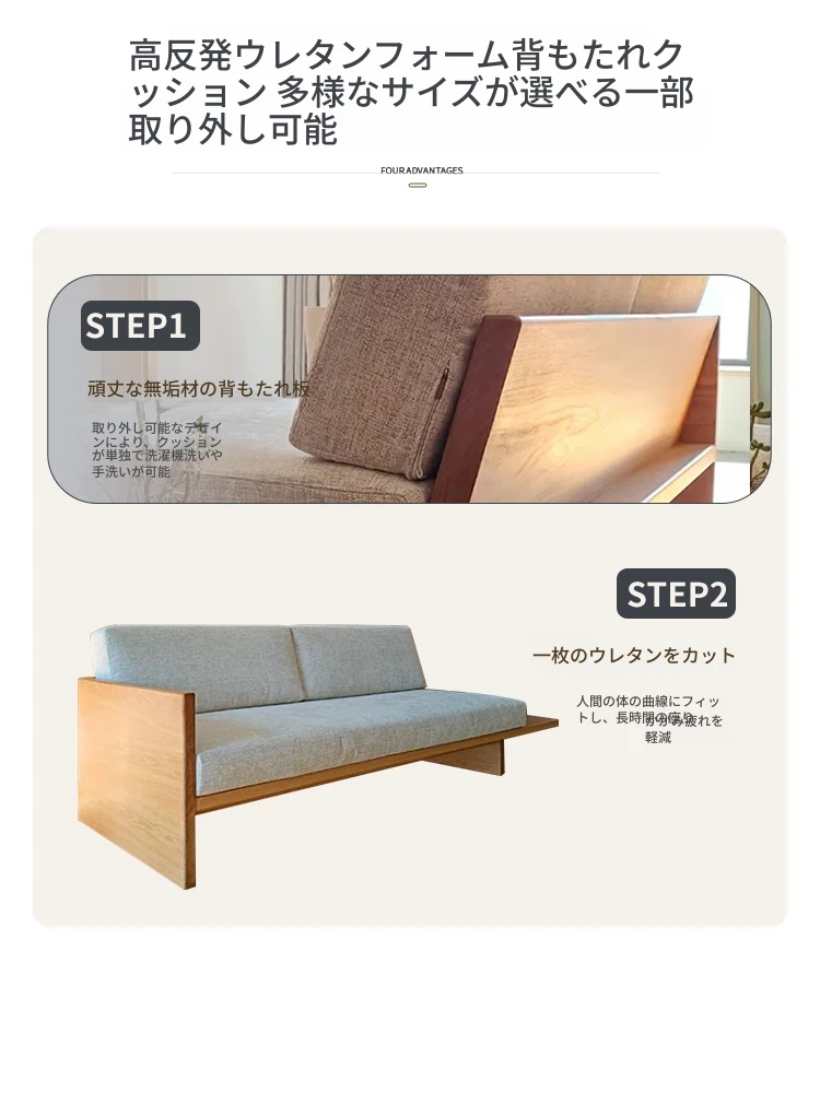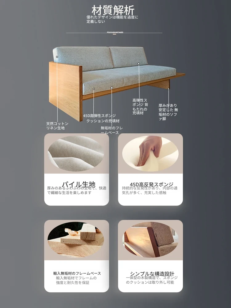 北欧風和モダンデザインの無垢材ソファ - サステナブルな侘寂スタイル!小型リビングや民宿、ホテルの休憩スペースに最適。簡単に洗えるカバー付きで、清潔感もバッチリ!