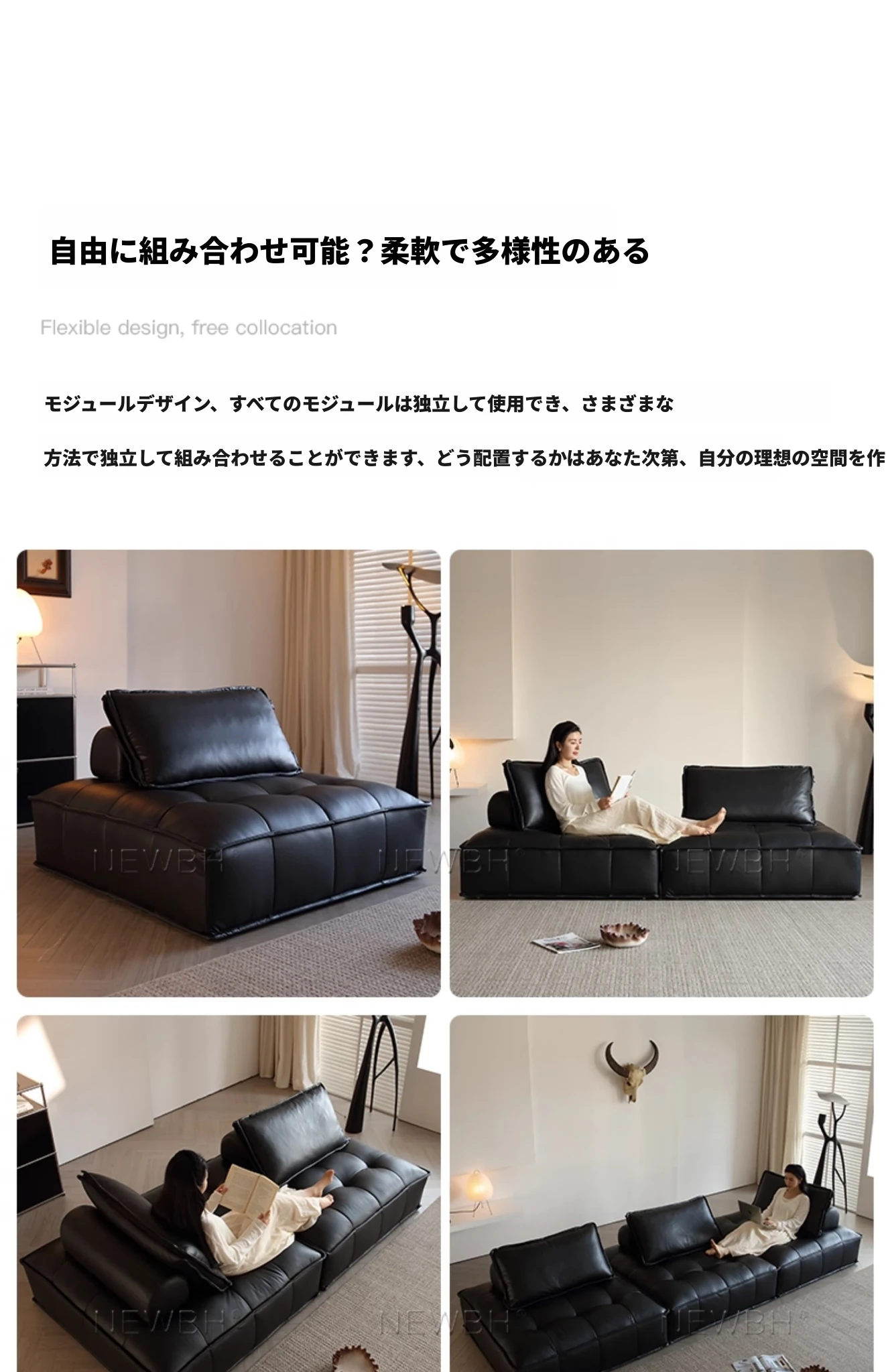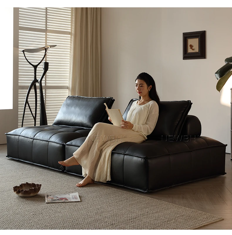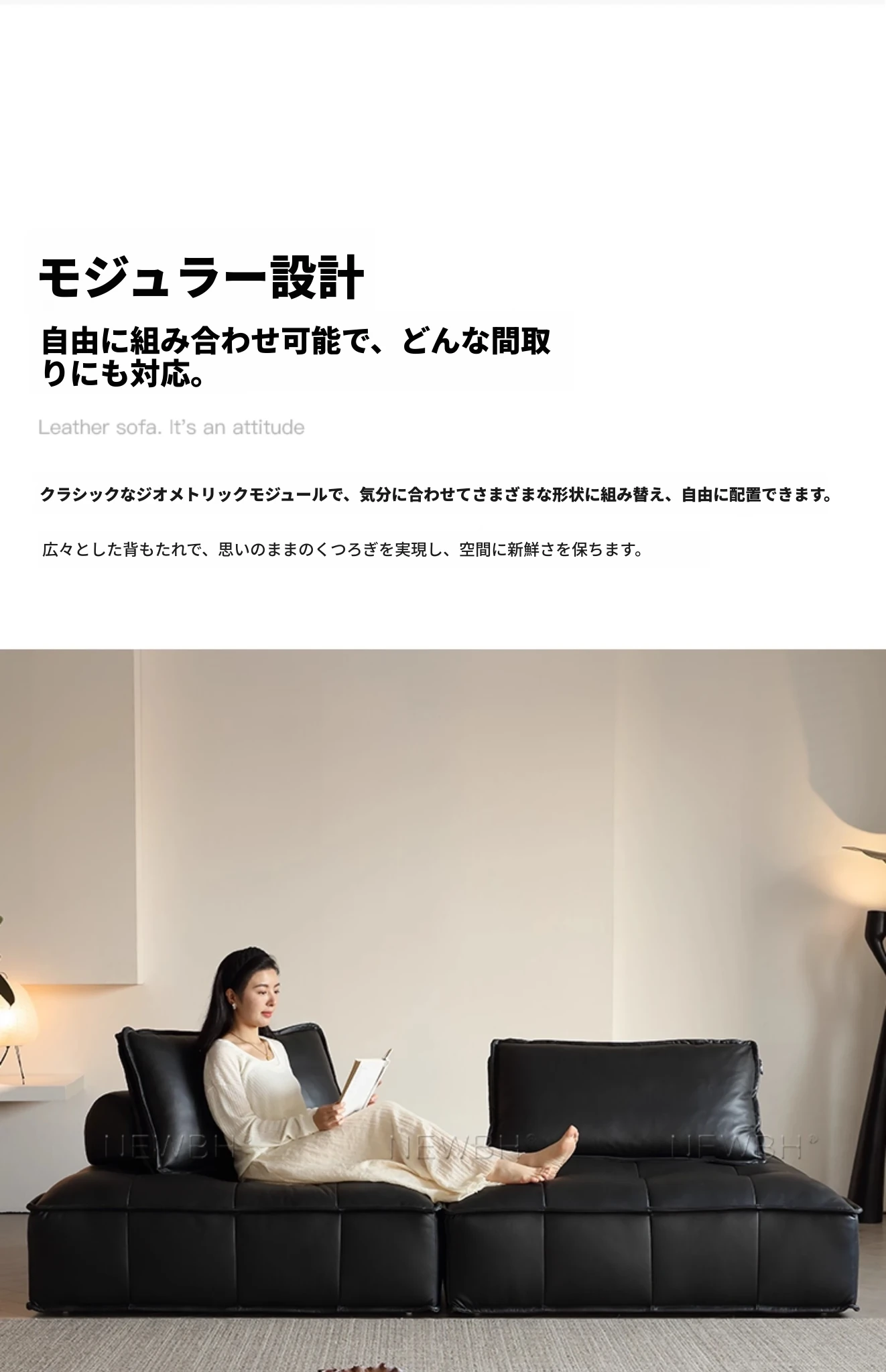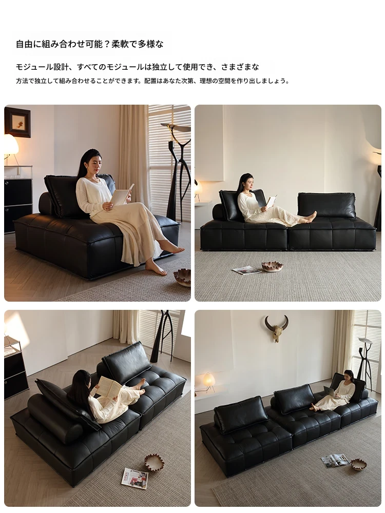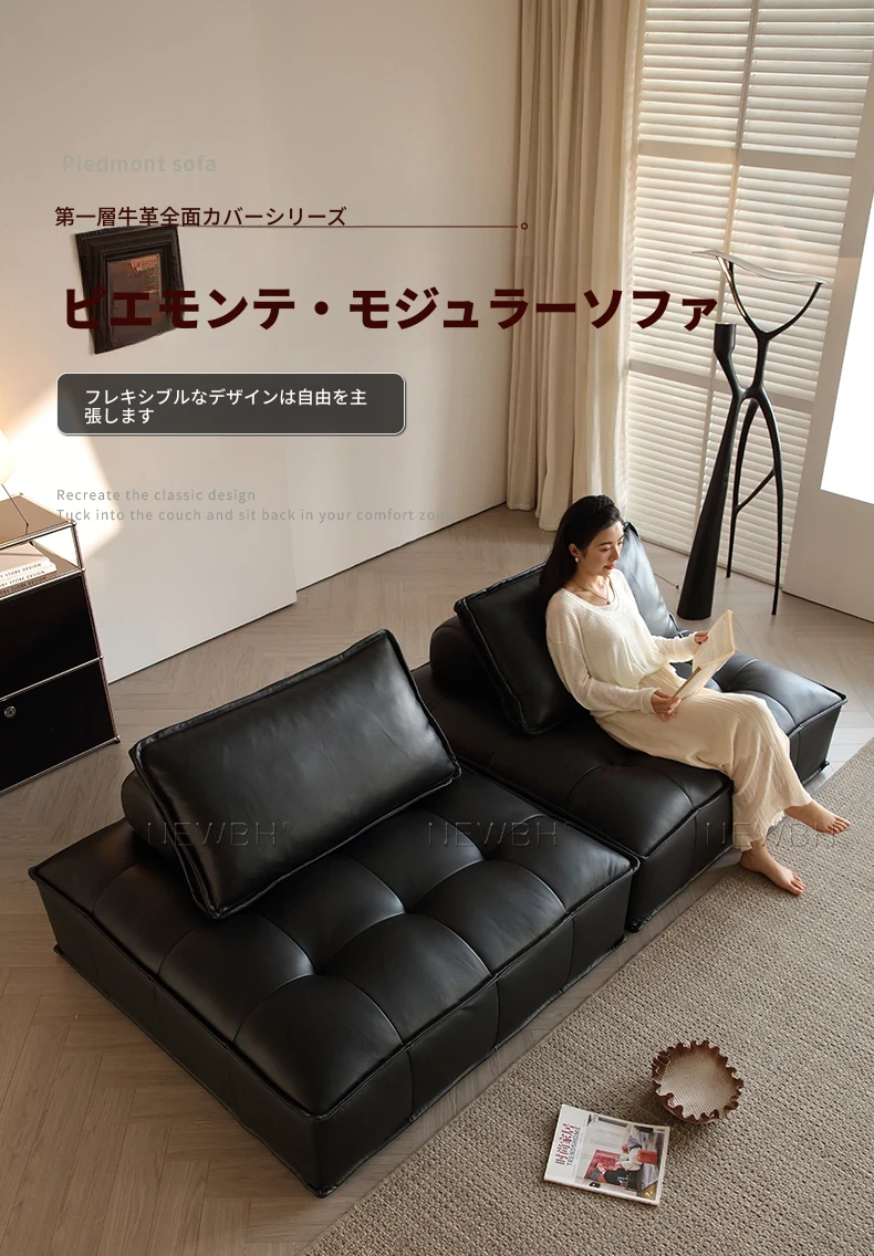 ピエモンテソファ ブラック イタリアンミニマル 全頭層牛革 デザイナークリエイティブ 豆腐ブロック モジュラーソファ - 上質な素材と洗練されたデザインで、あなたのリビングをスタイリッシュに演出します。