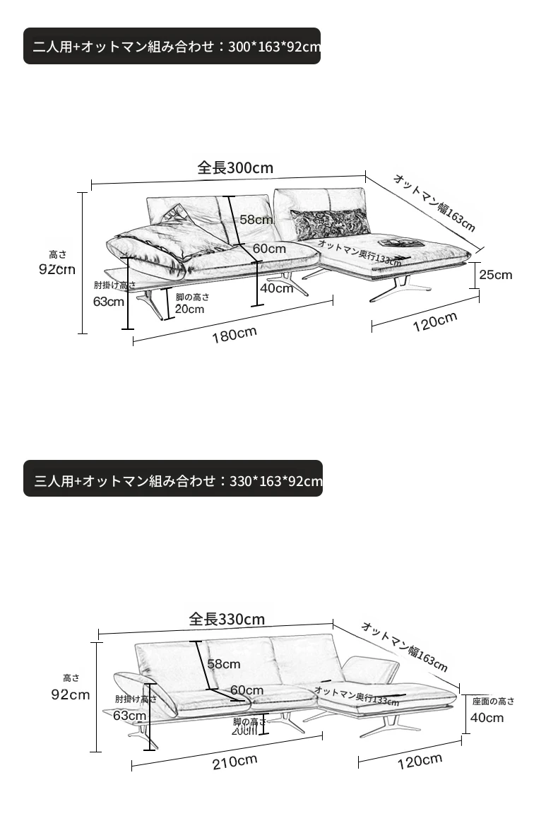 三人用+左カウチ3.3メートル【ステンレススチールとホワイトウッド内枠】