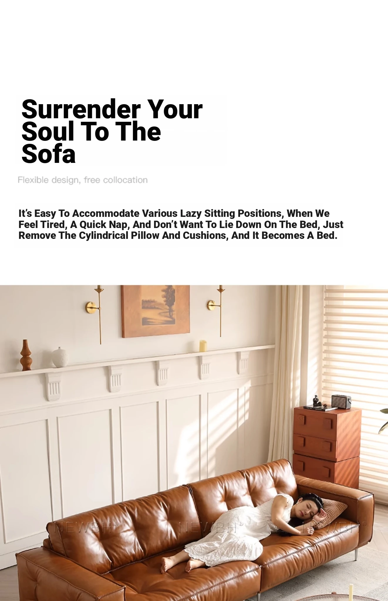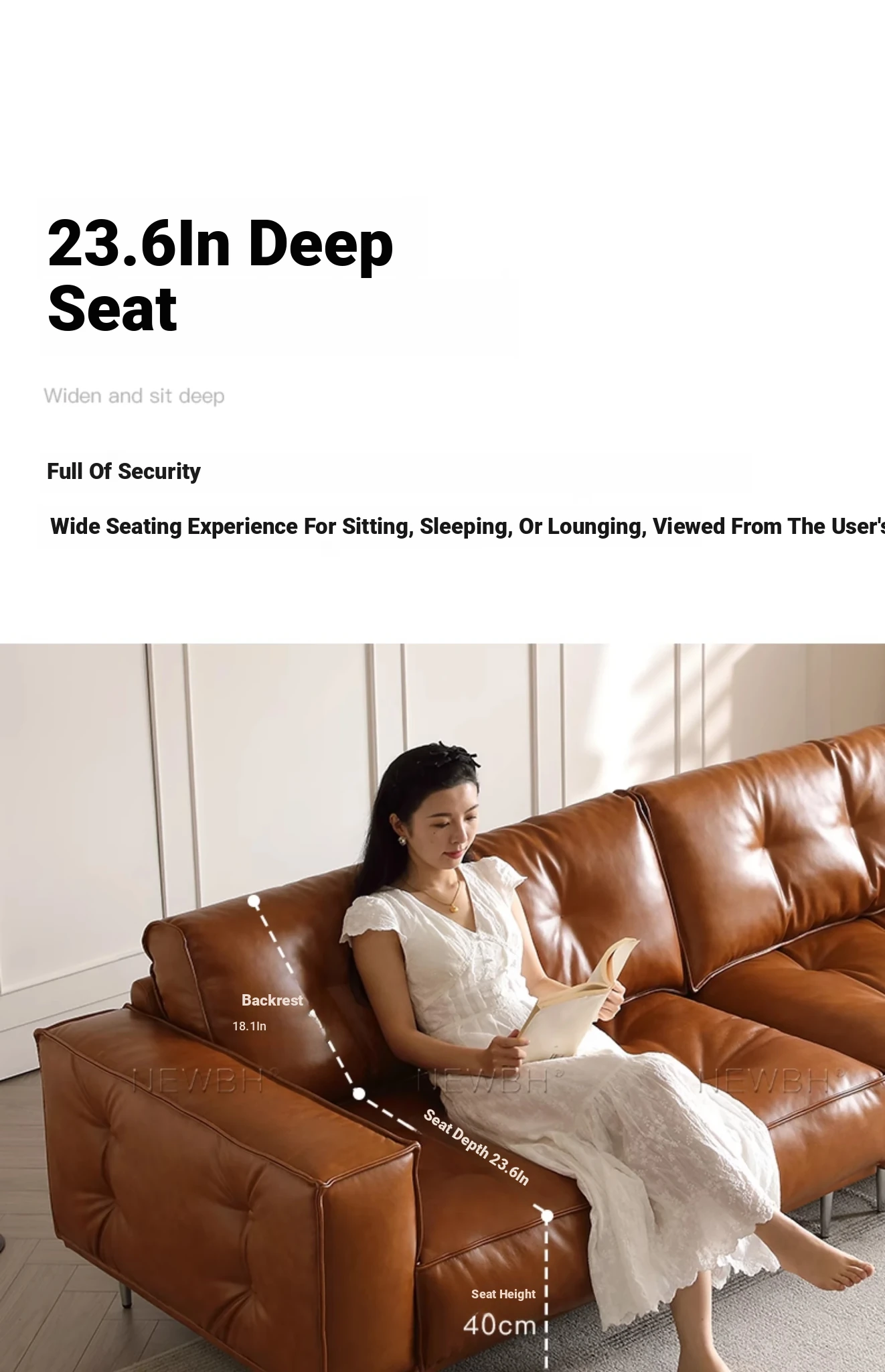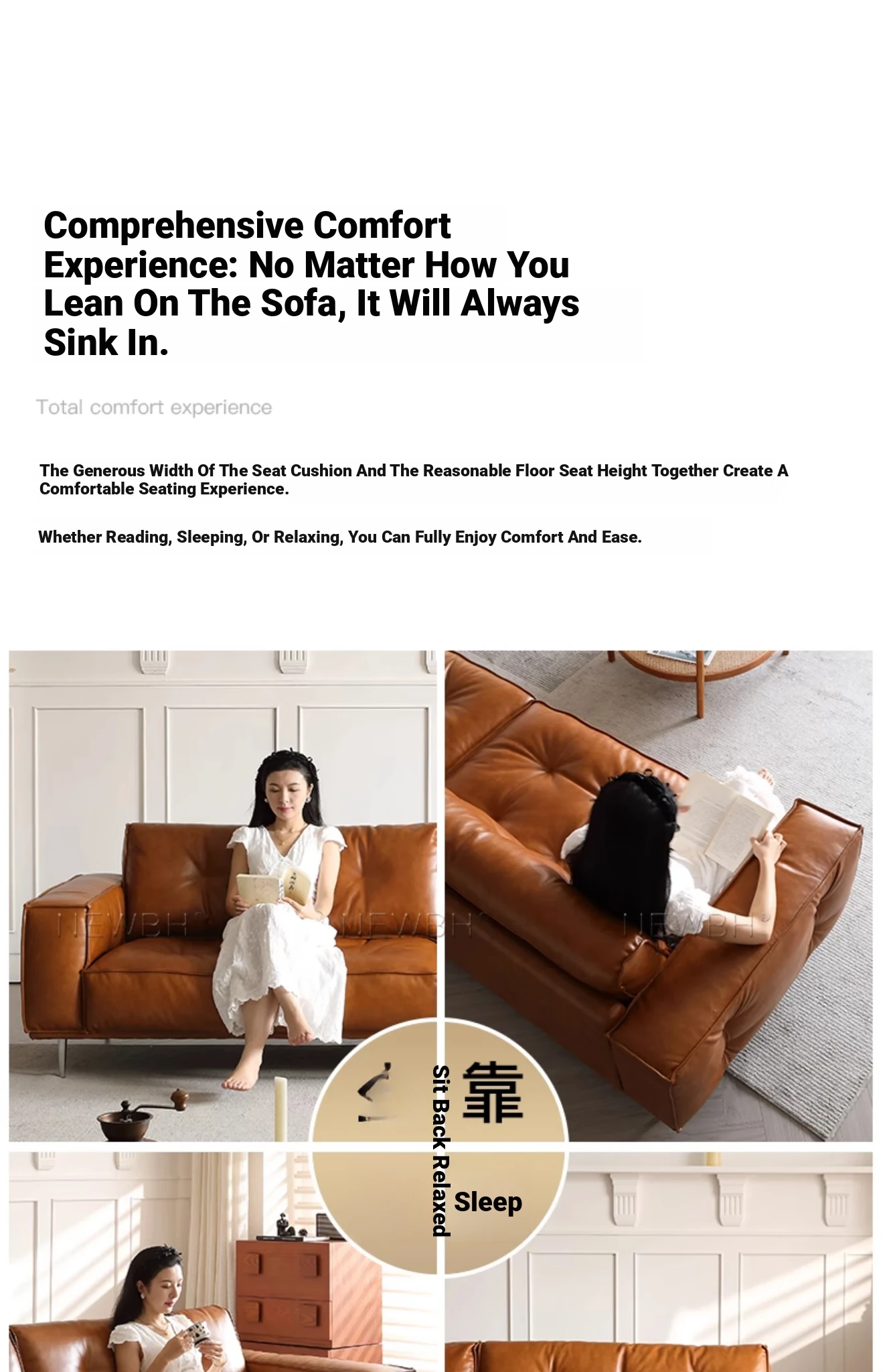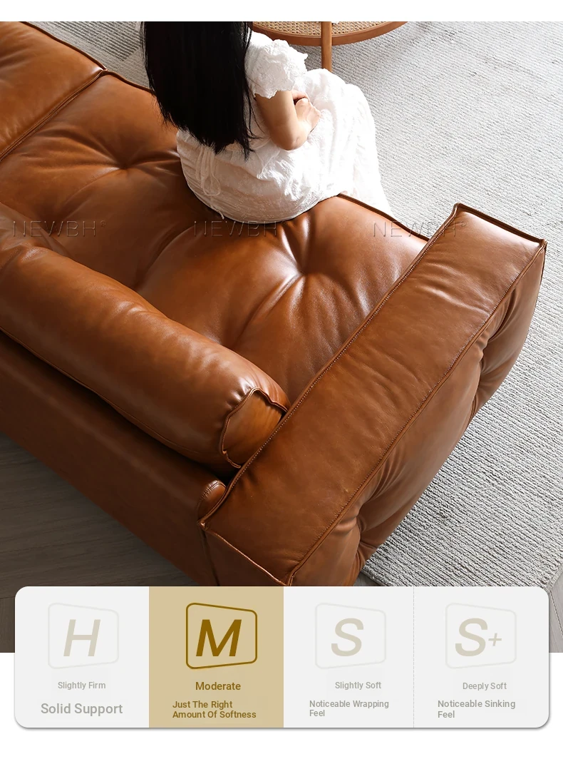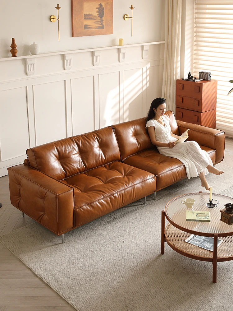 Vintage Designer Leather Sofa for Toasted Bread Style Living Room - Full Grain Waxed Leather, Perfect for Small and Large Spaces, Straight Design