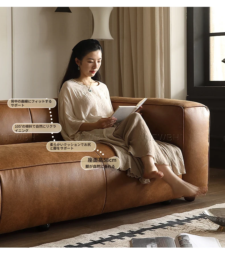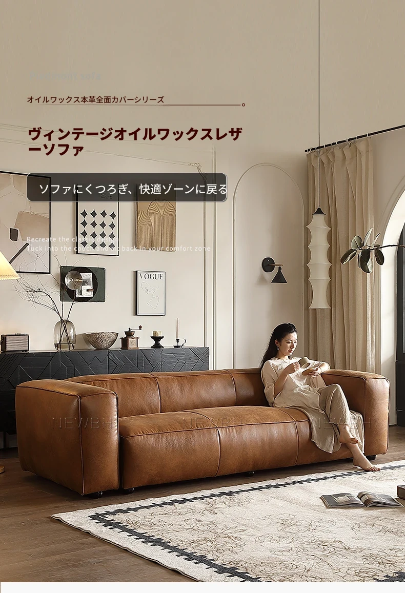 アンティーク風オイルワックス本革テナーソファー|3人掛け|コンパクトサイズ|レトロな雰囲気のリビングに最適|全頭層牛革使用|お洒落で高級感溢れる一品!