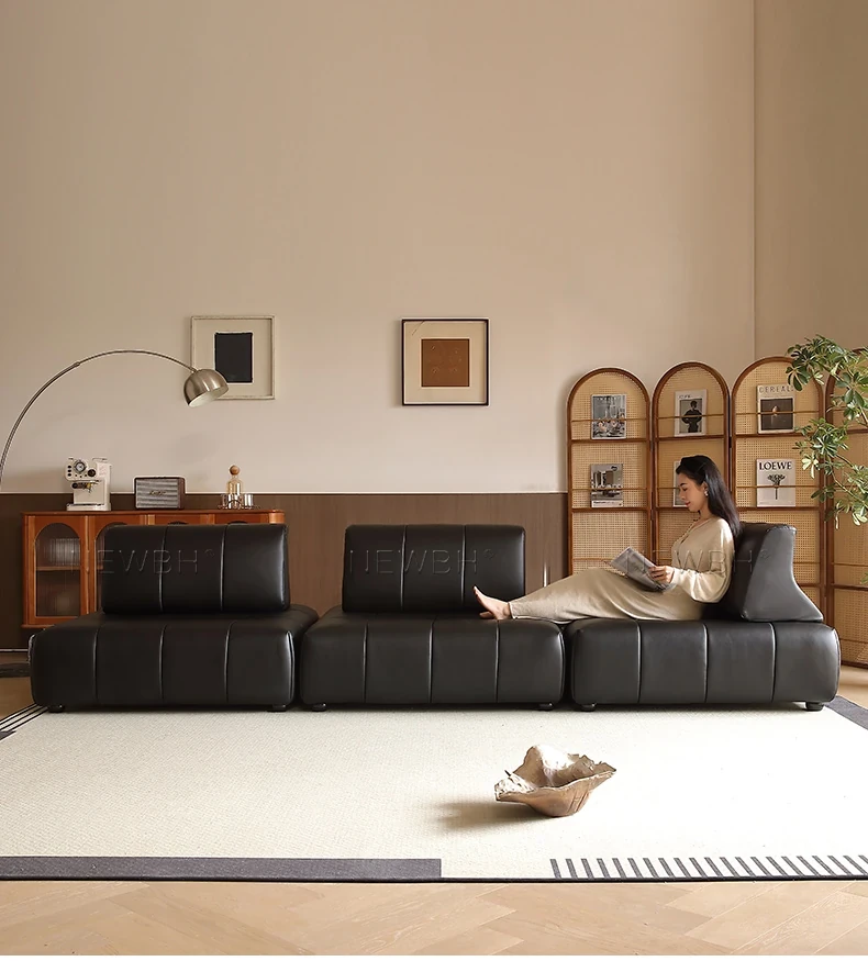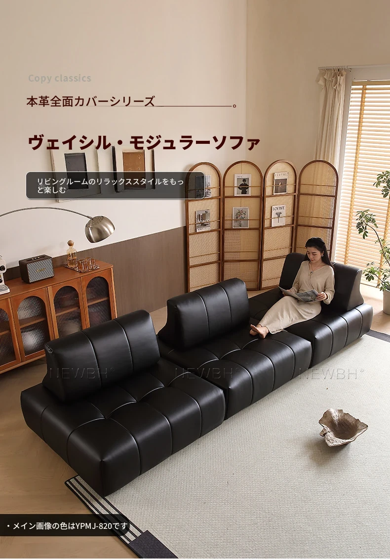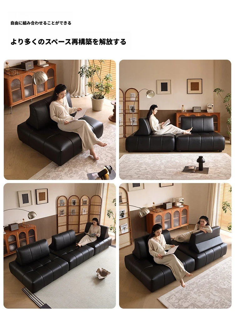 ウィスラーソファ 全頭層牛革 レトロデザイン モジュール式新作 豆腐ブロック 自由に組み合わせ可能なリラックスソファ