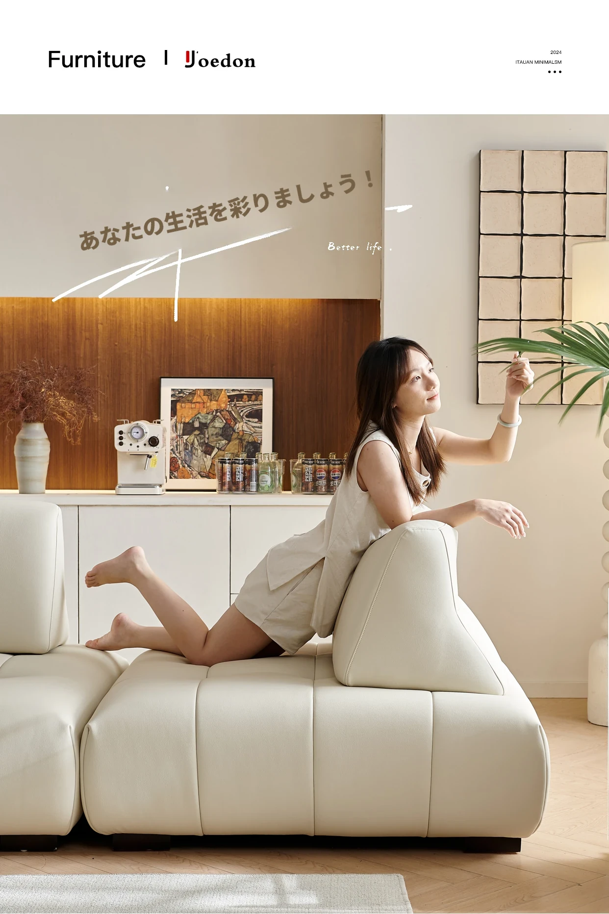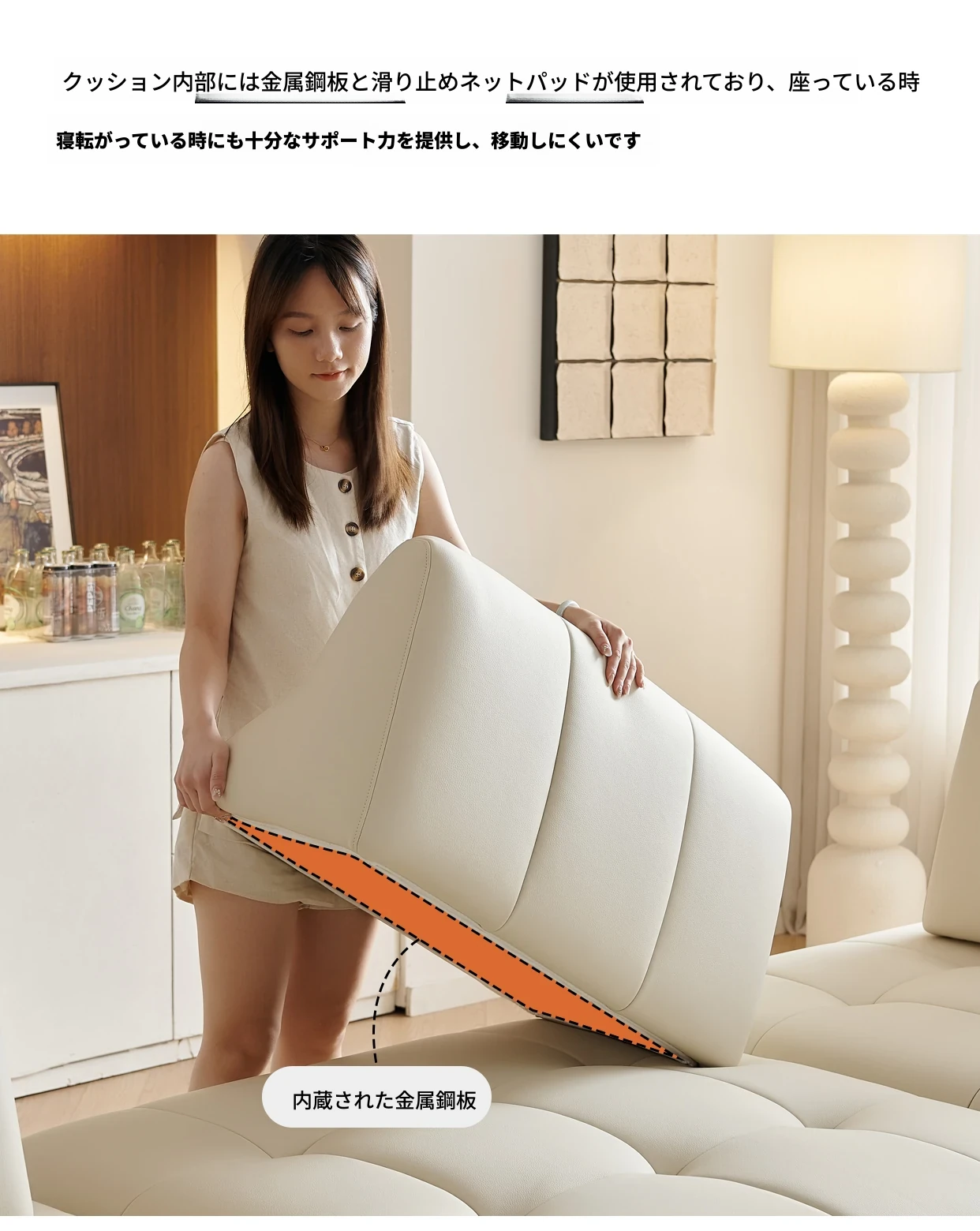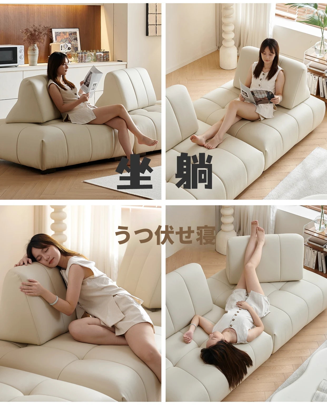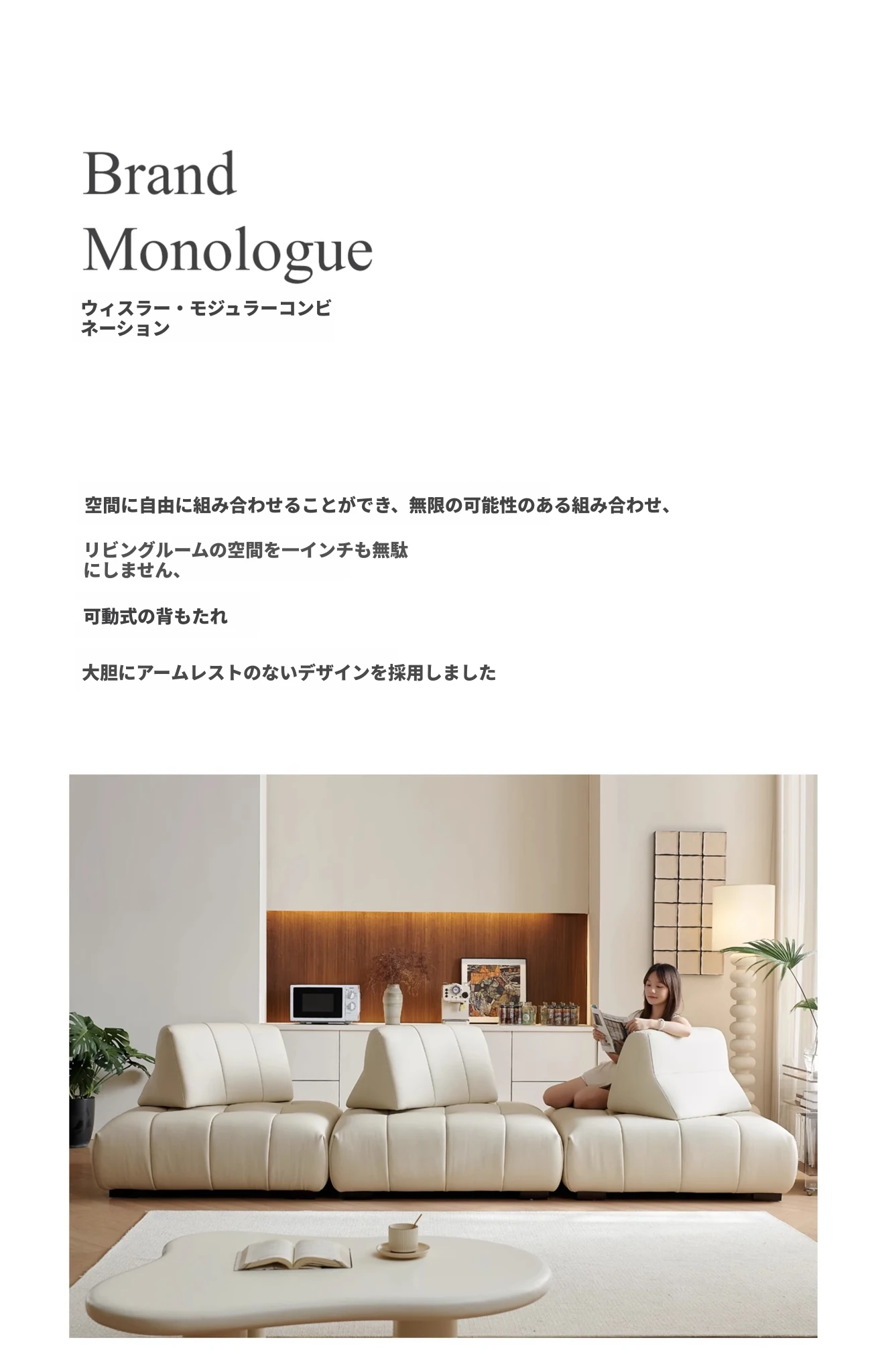 ヴィスラール全皮レザーソファ 2024年新作 ヴィラ向け ダブルサイドシートクリーム風モジュラーソファセットで、快適さとスタイルを兼ね備えたリビングを演出!