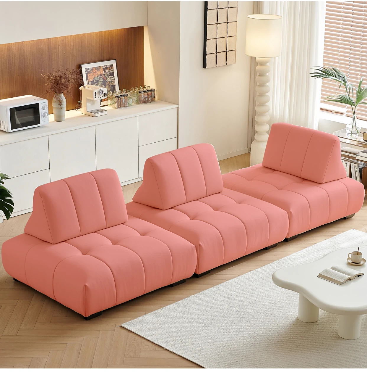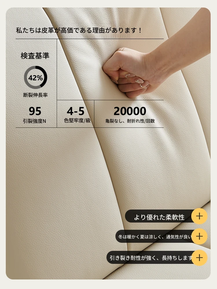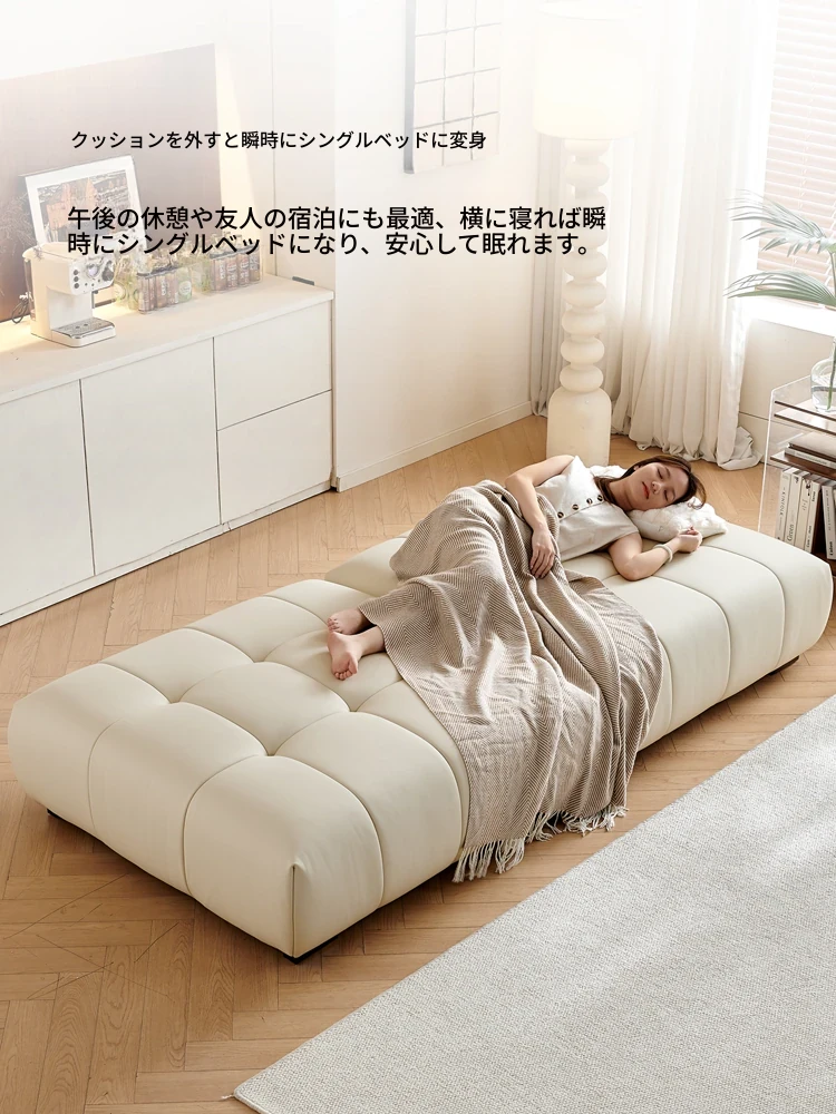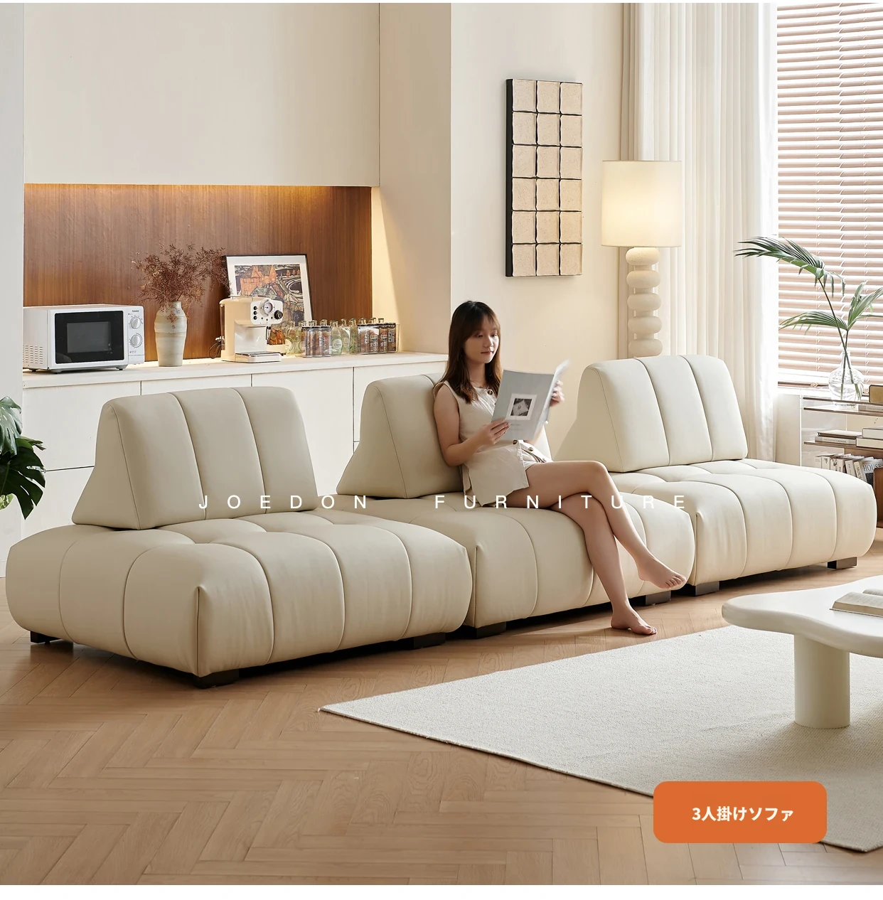 ヴィスラール全皮レザーソファ 2024年新作 ヴィラ向け ダブルサイドシートクリーム風モジュラーソファセットで、快適さとスタイルを兼ね備えたリビングを演出!
